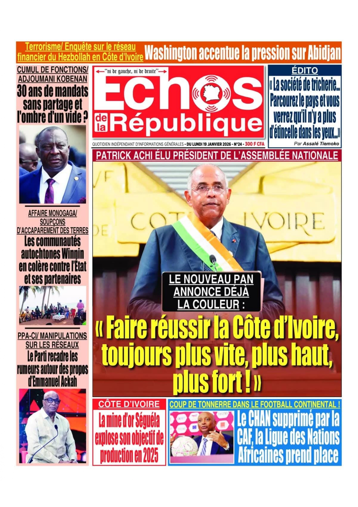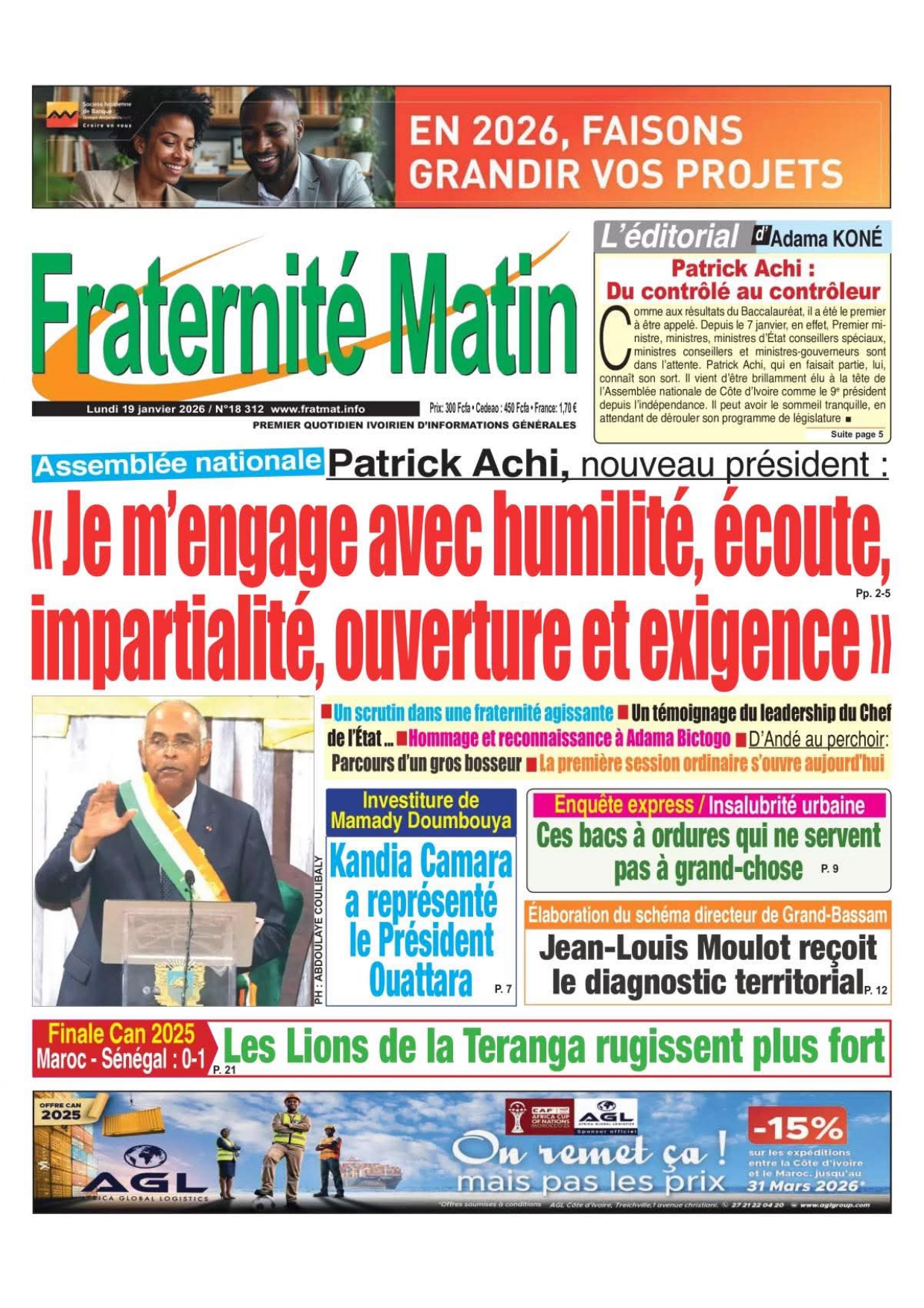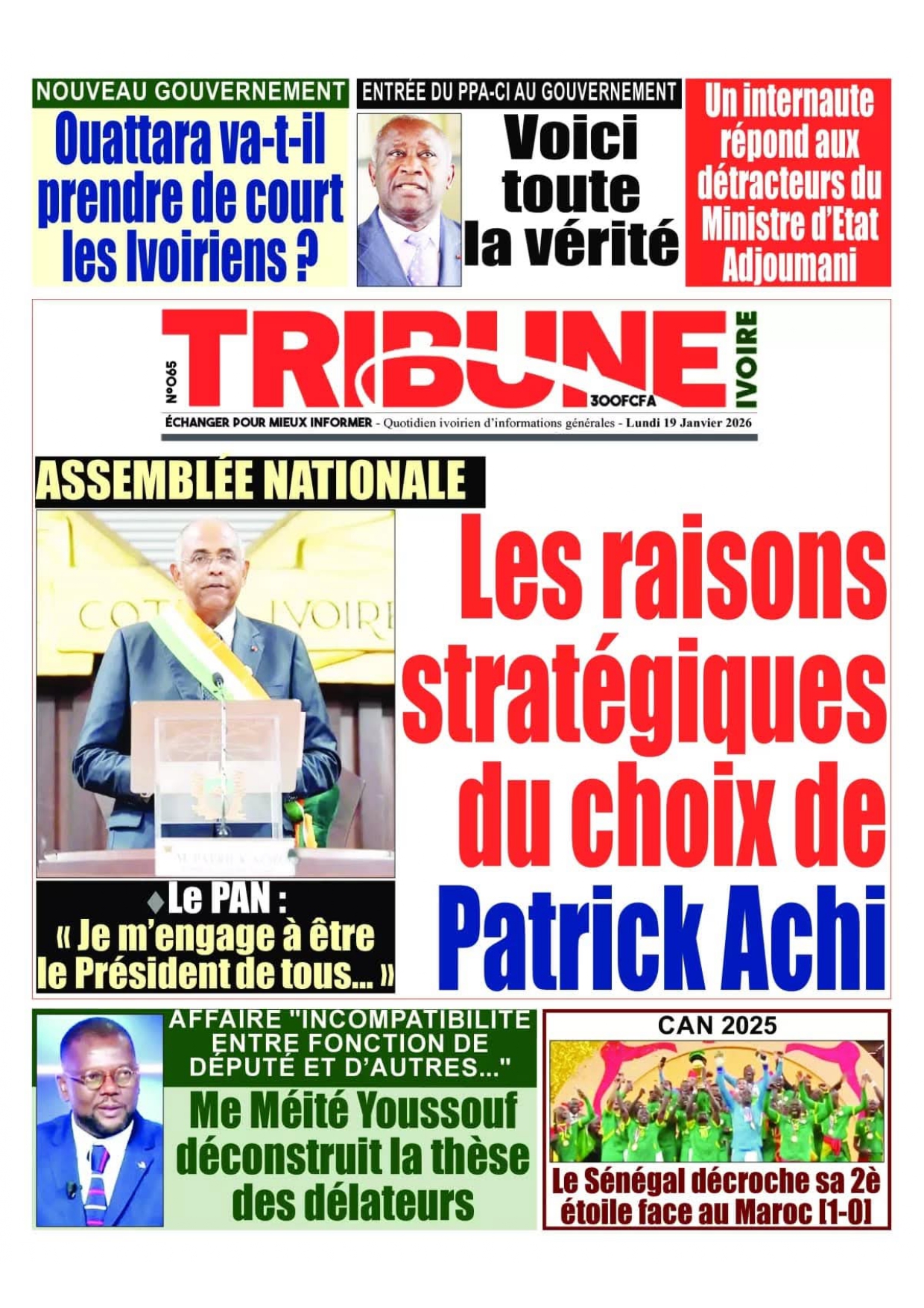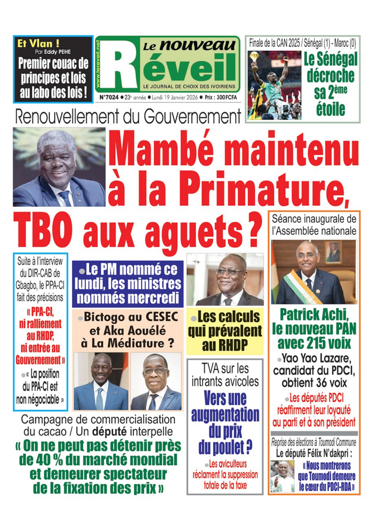 Photos. Les journaux de Côte d’Ivoire du lundi 19 janvier 2026
