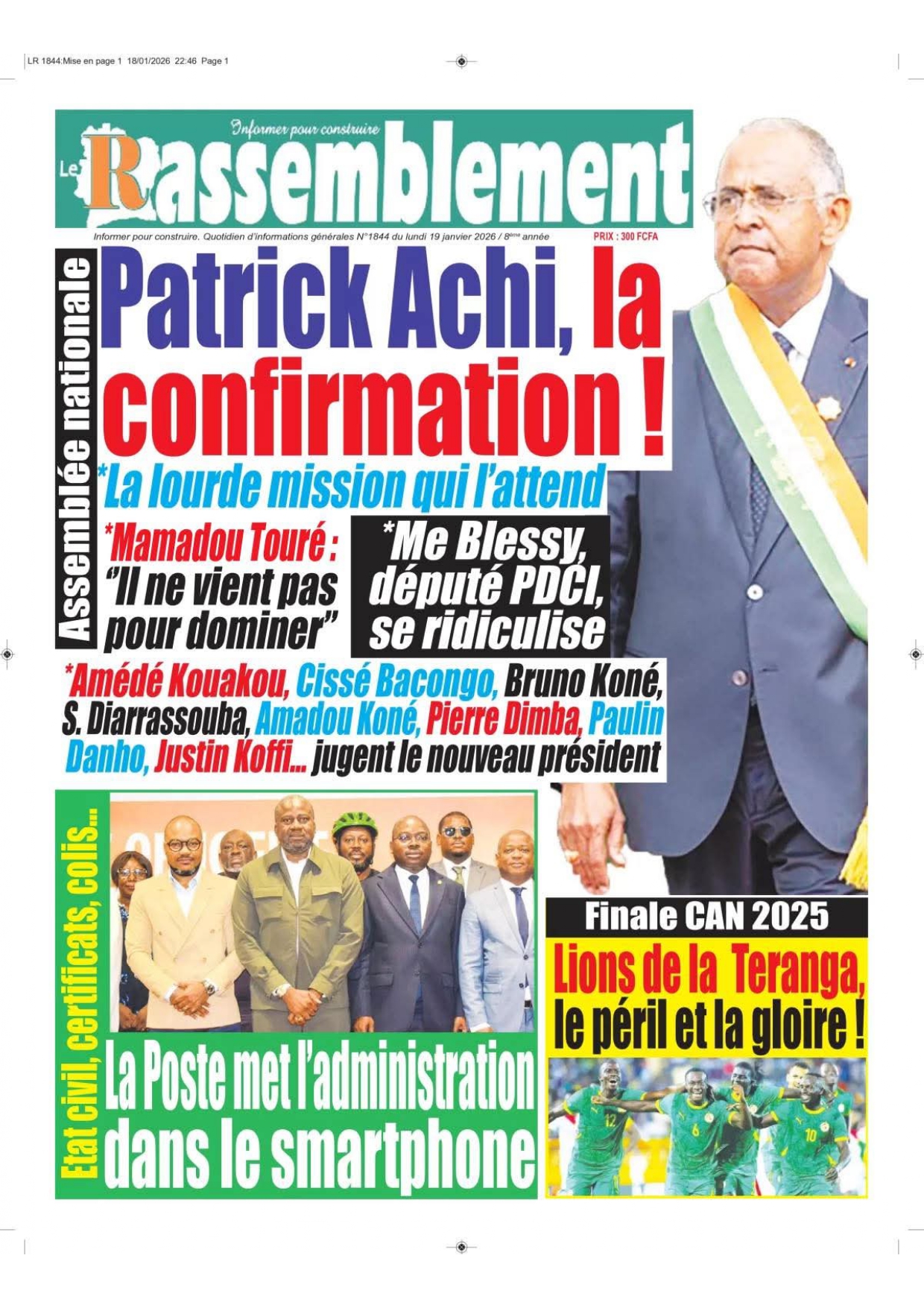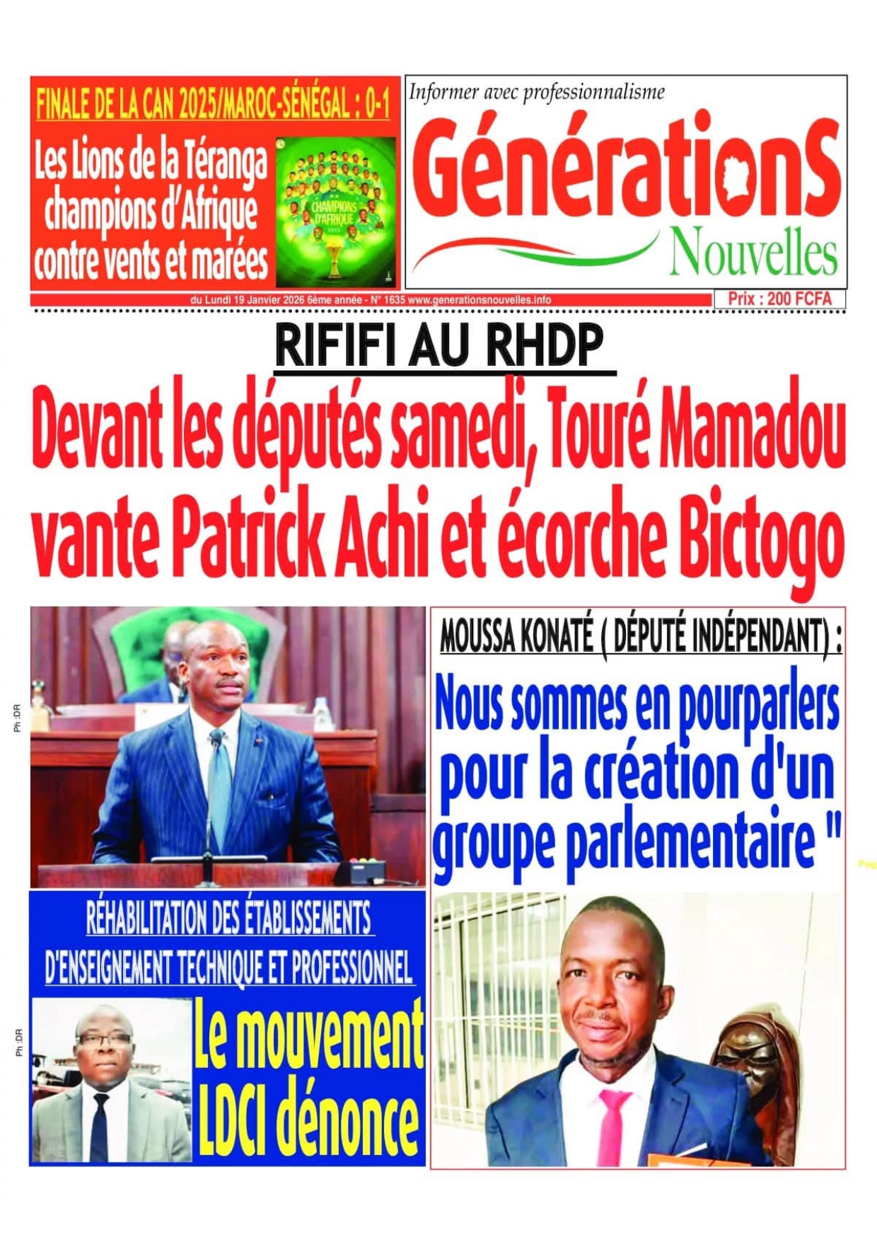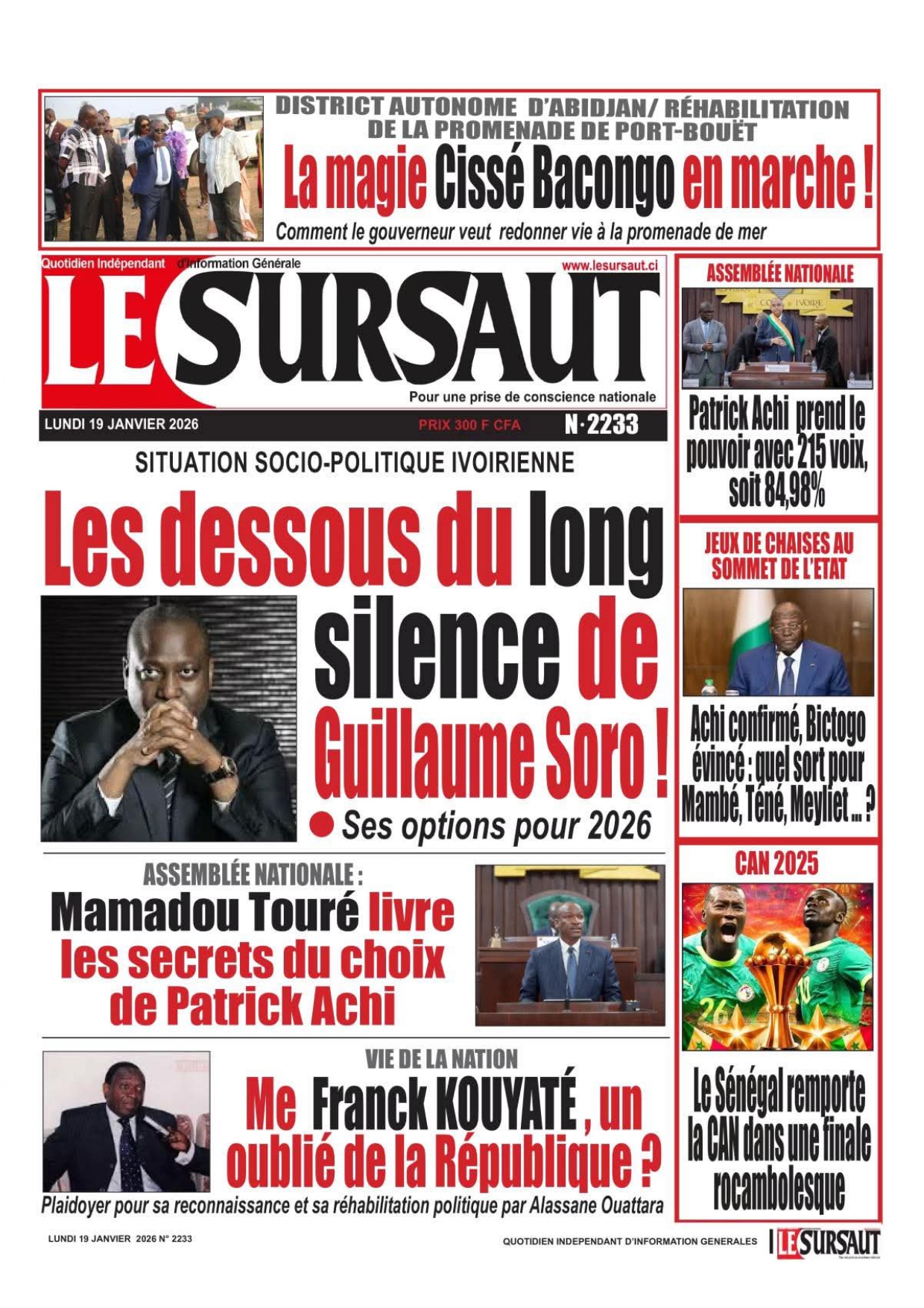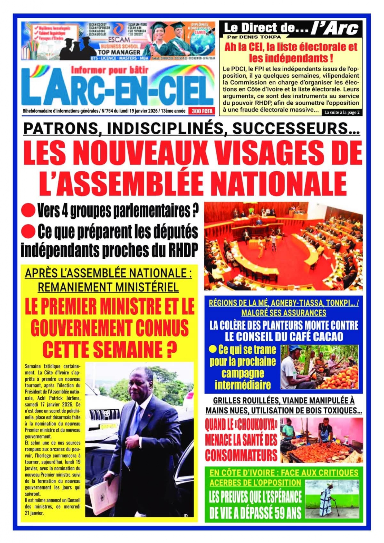 Photos. Les journaux de Côte d’Ivoire du lundi 19 janvier 2026