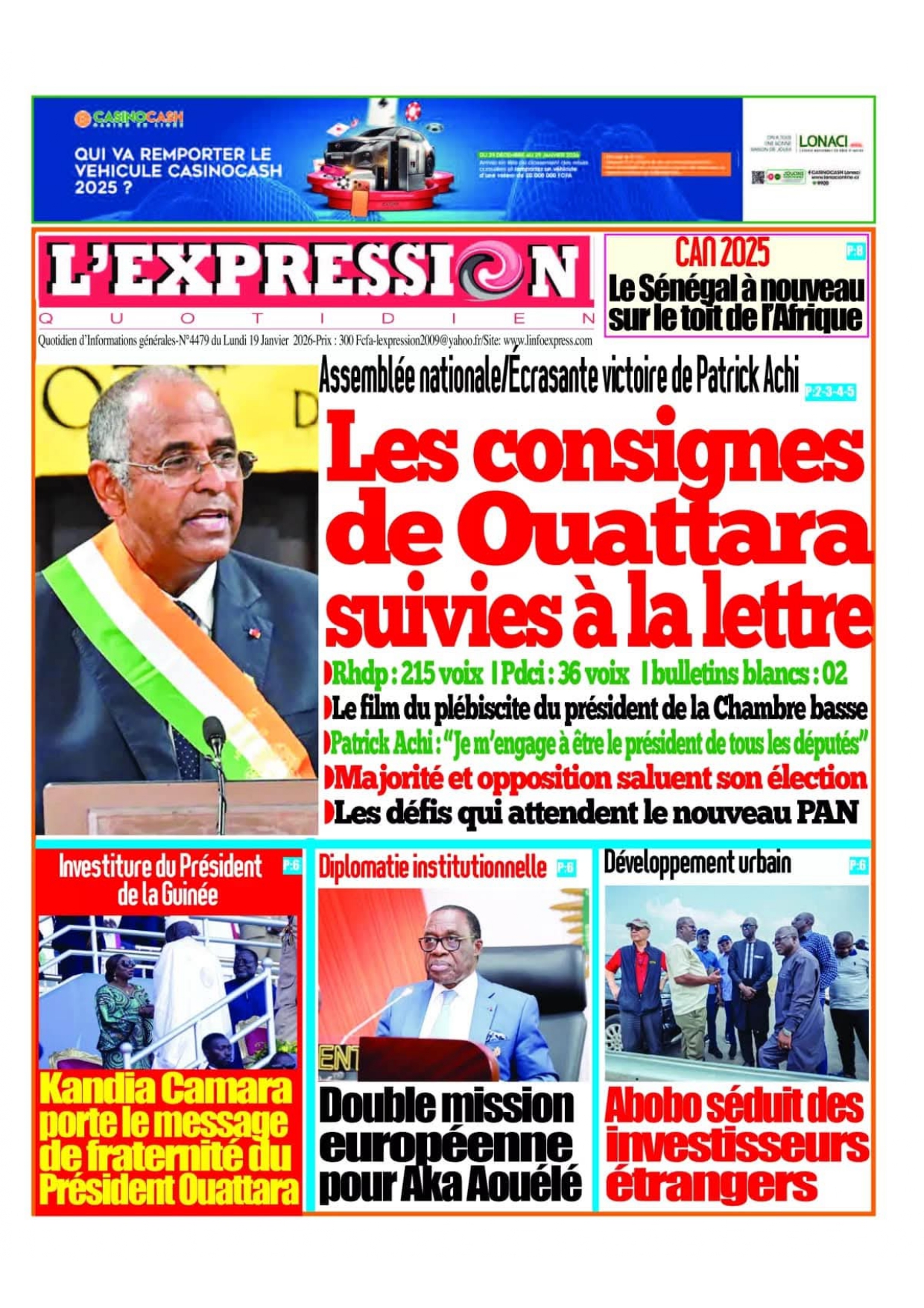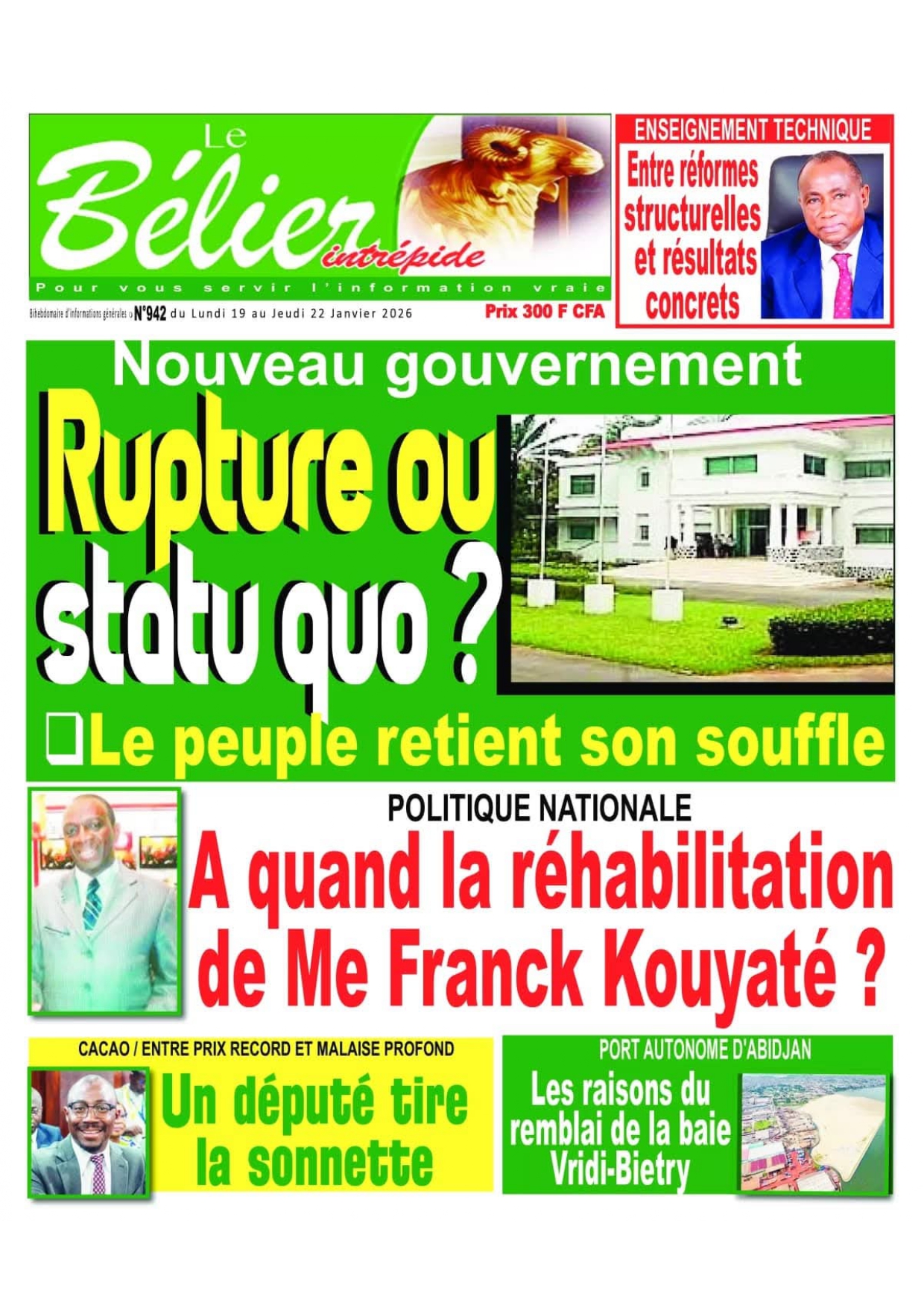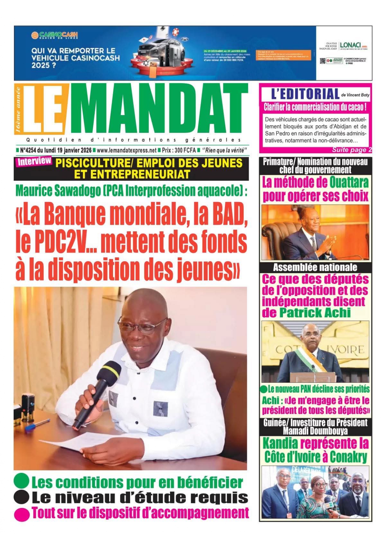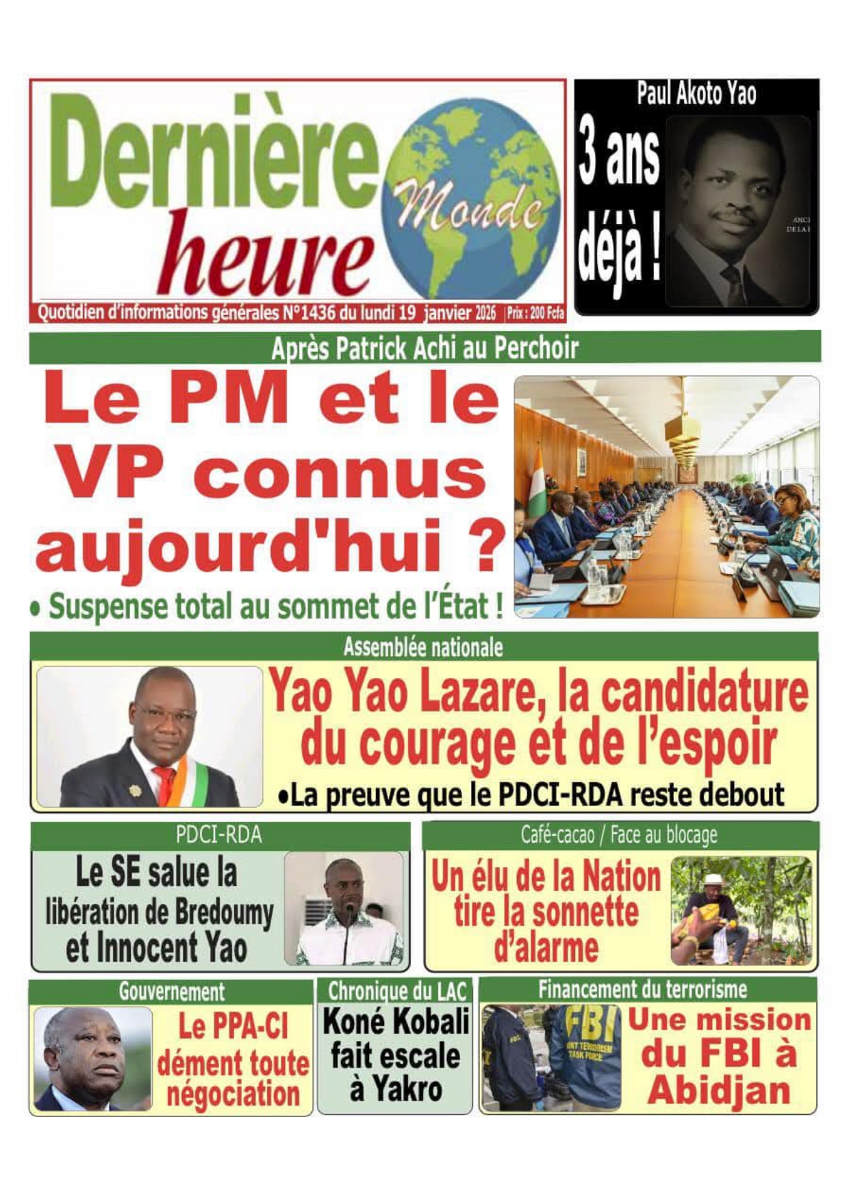 Photos. Les journaux de Côte d’Ivoire du lundi 19 janvier 2026