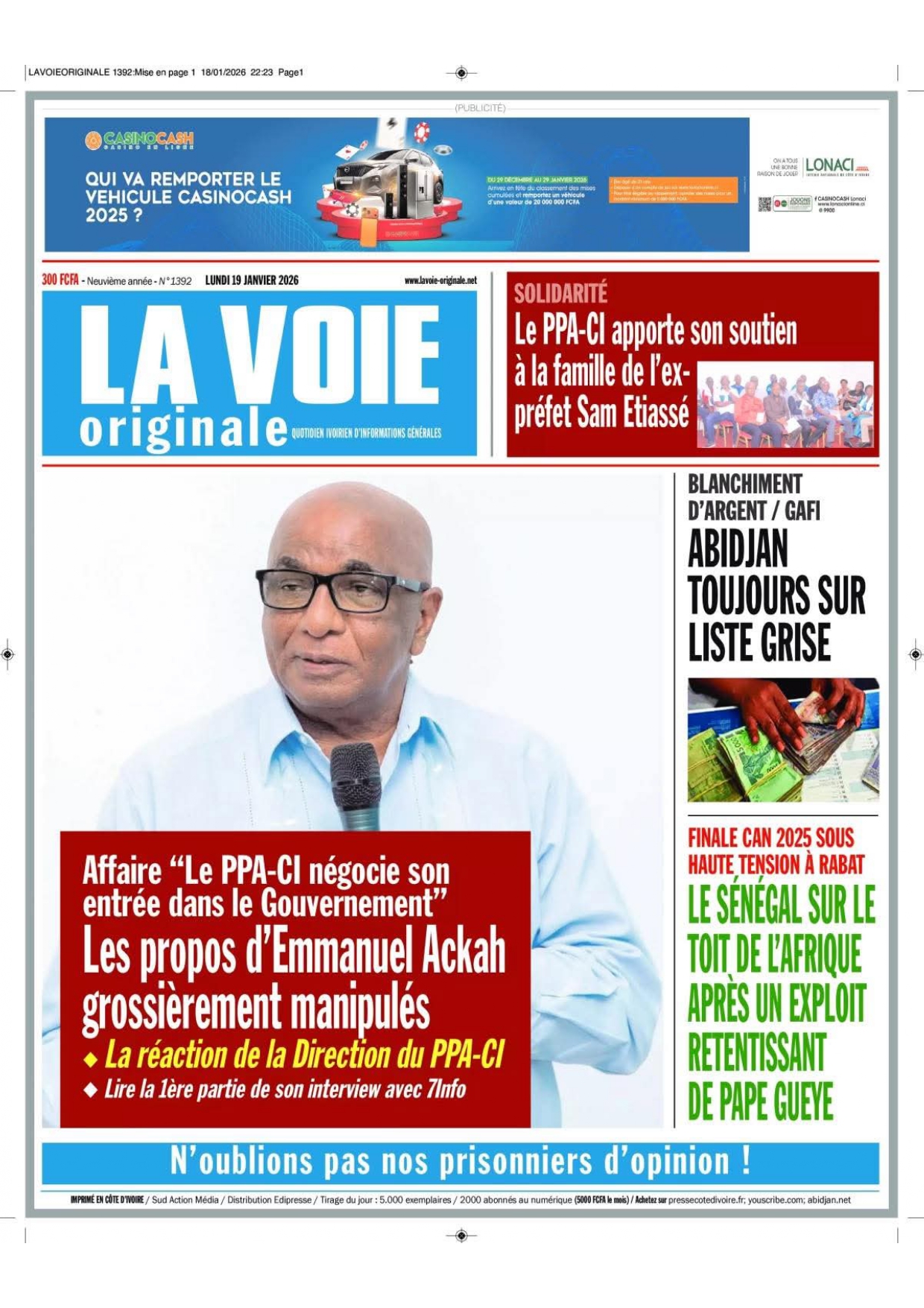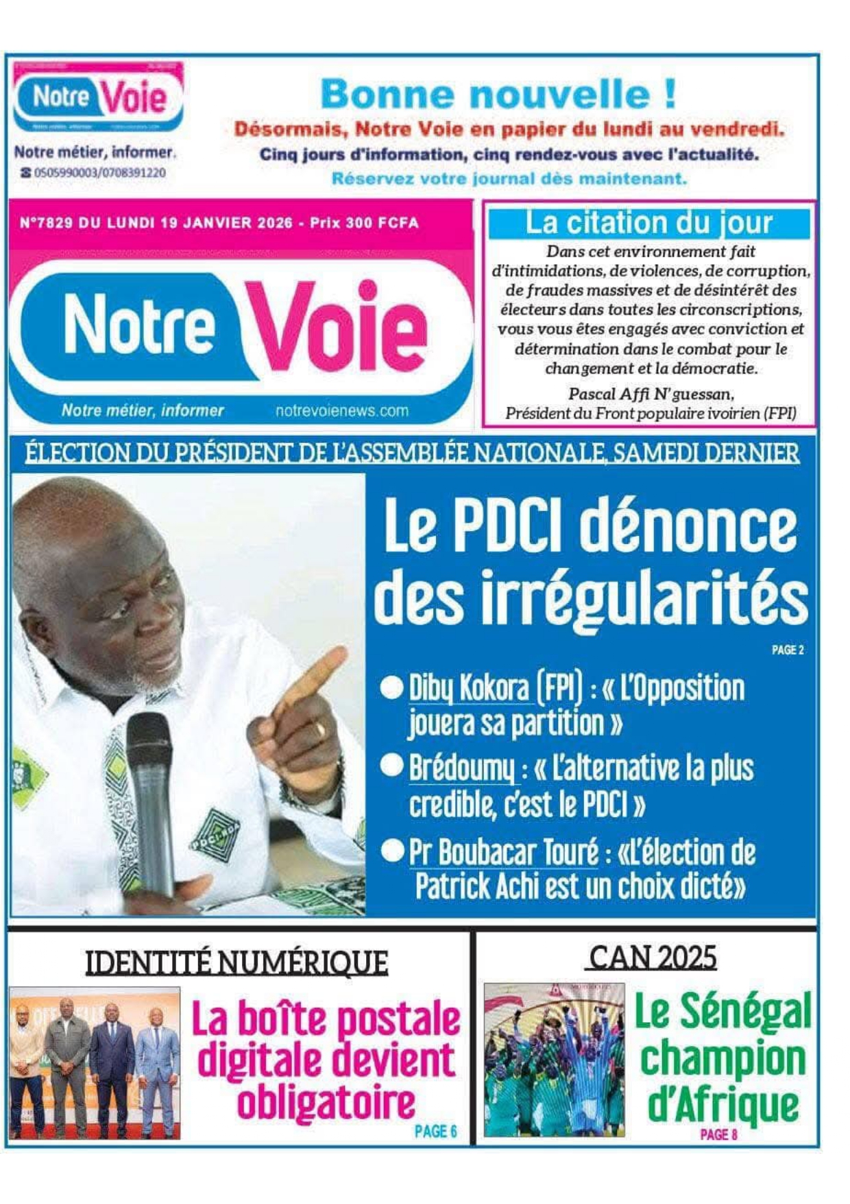 Côte d'Ivoire : les journaux du lundi 18 janvier 2026