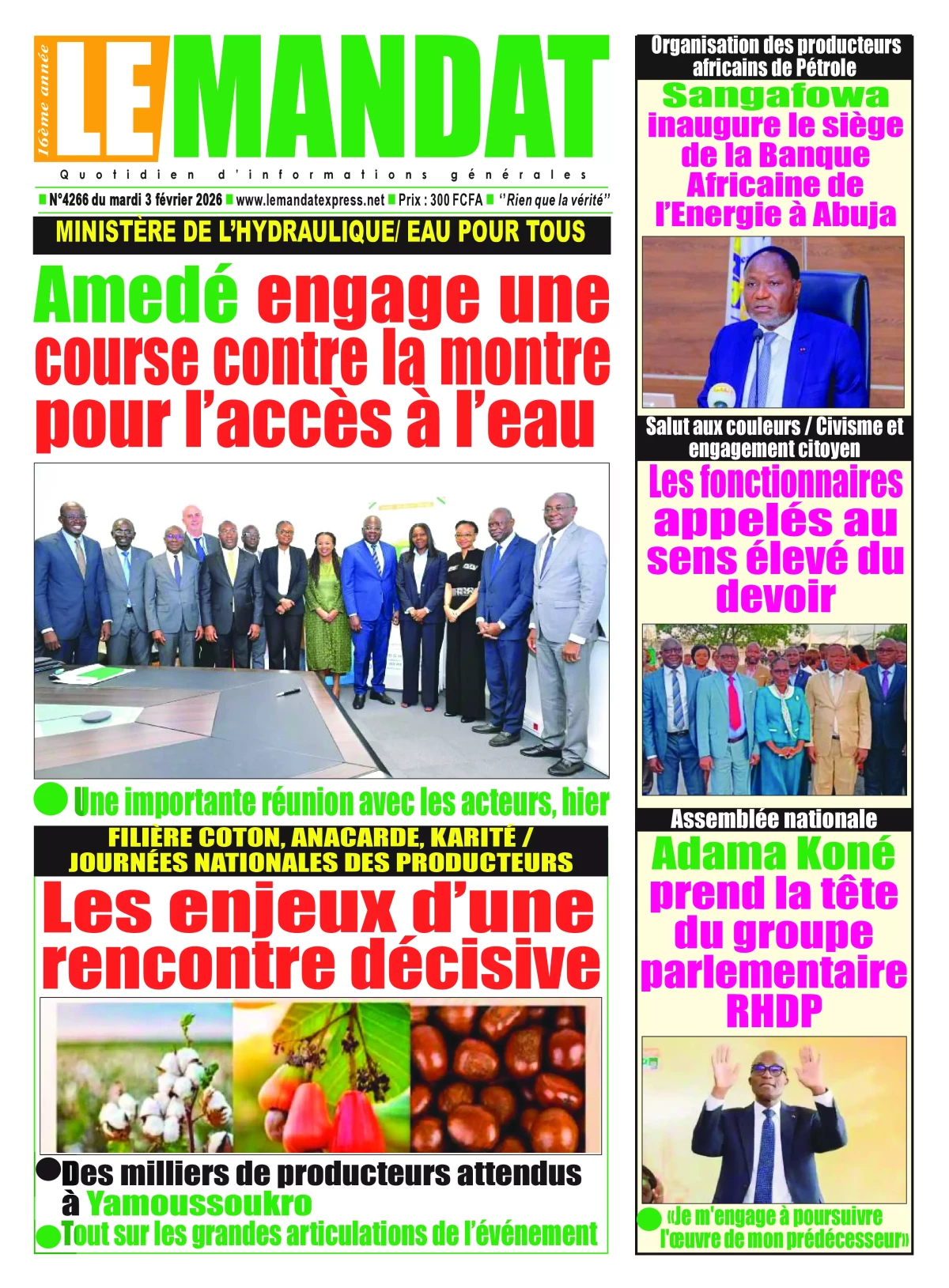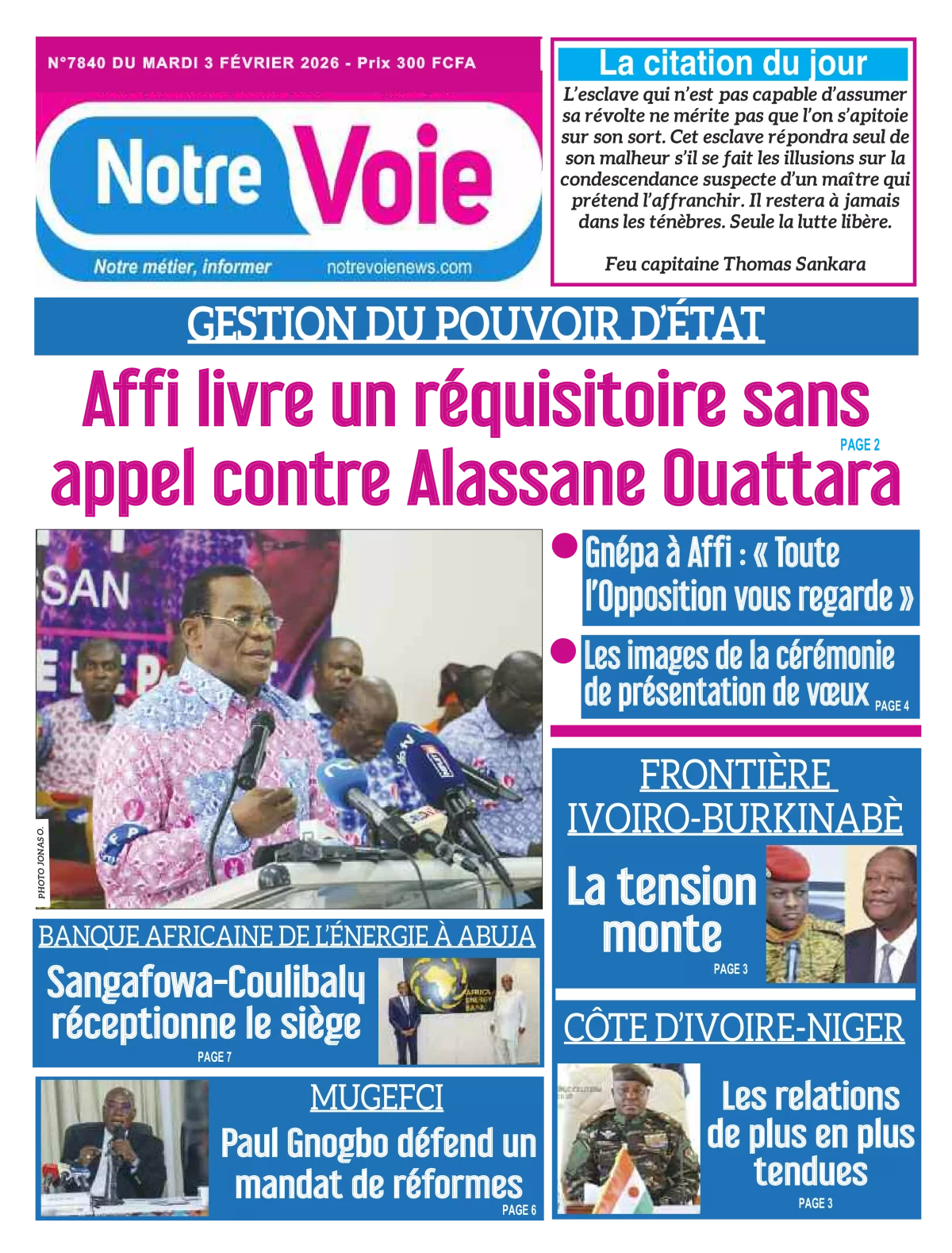 Photos. Les journaux de Côte d’Ivoire du mardi 03 février 2026