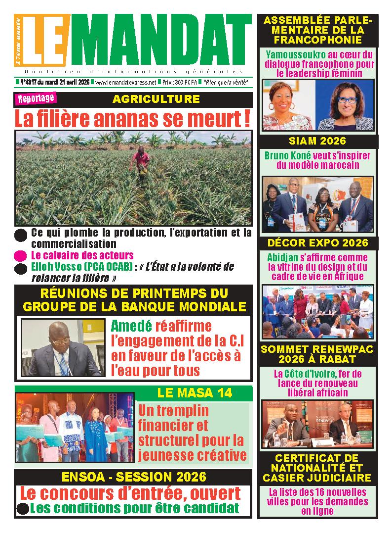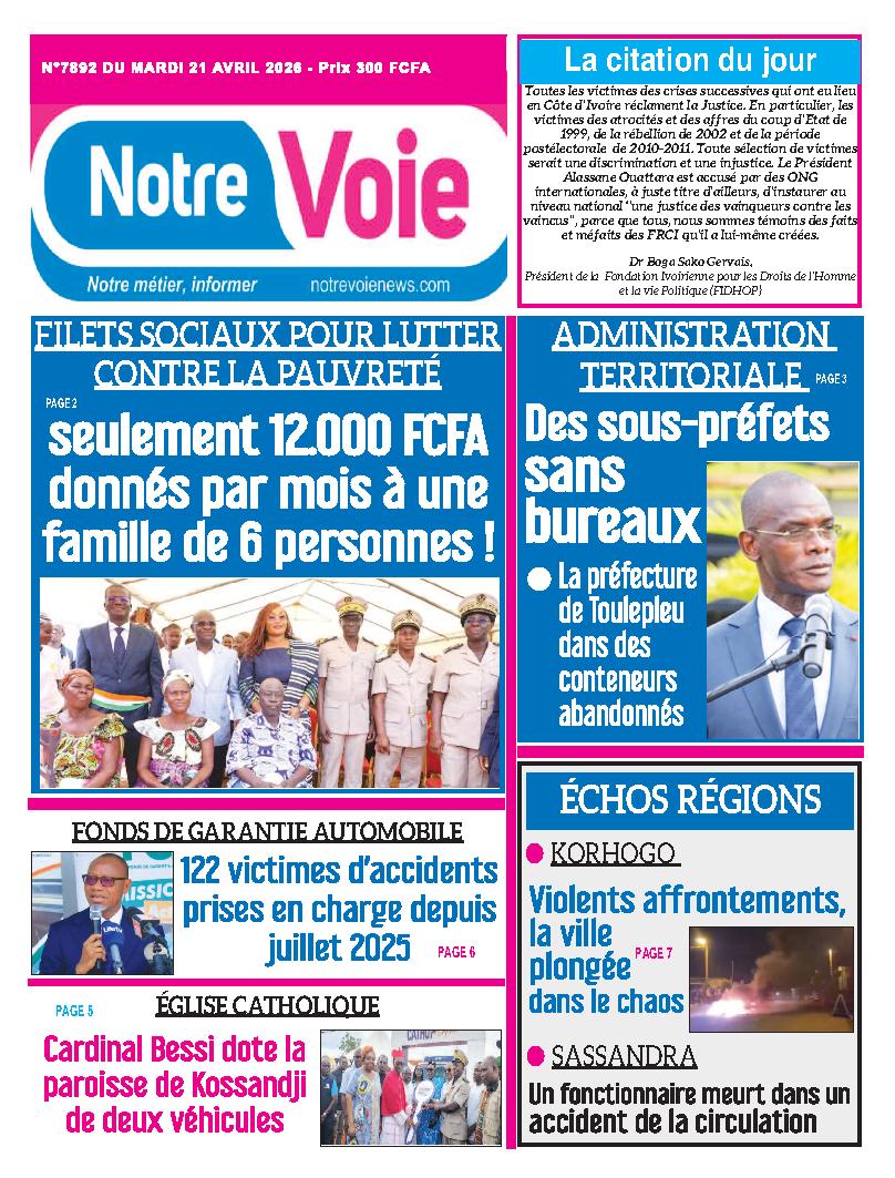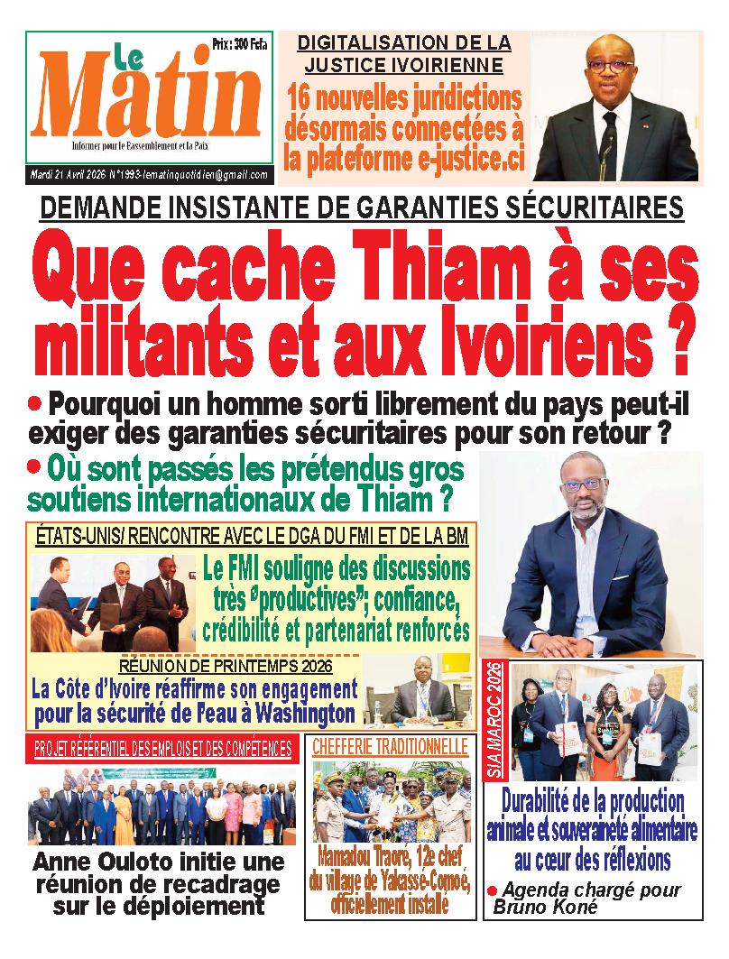 Côte d'Ivoire : les journaux du mardi 21 avril 2026 Lire les UNES ivoiriennes