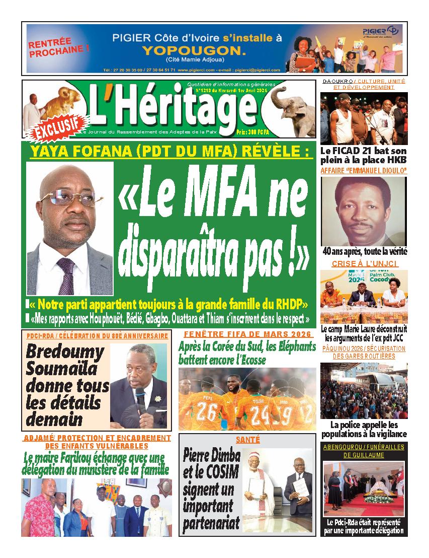 Côte d'Ivoire : les journaux du mercredi 01 avril 2026 Lire les UNES ivoiriennes