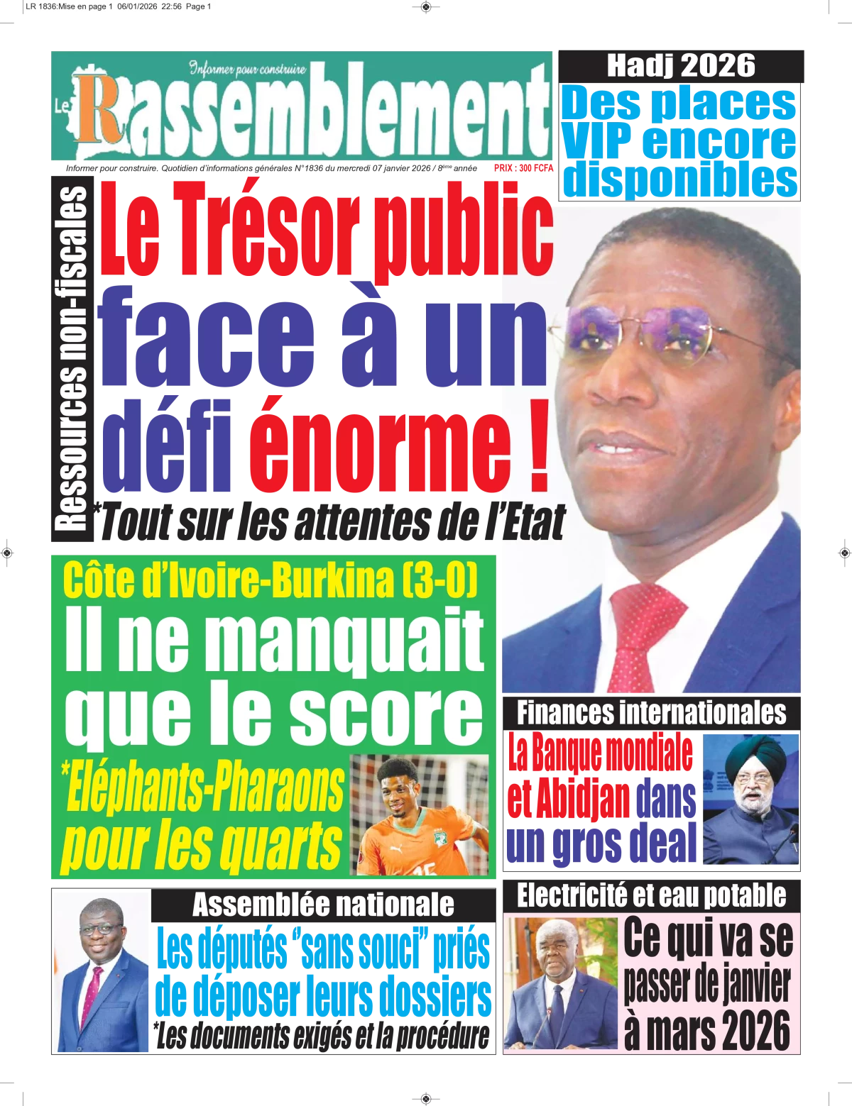 Côte d'Ivoire : les journaux du mercredi 07 janvier 2026 Lire les journaux de Côte d'Ivoire