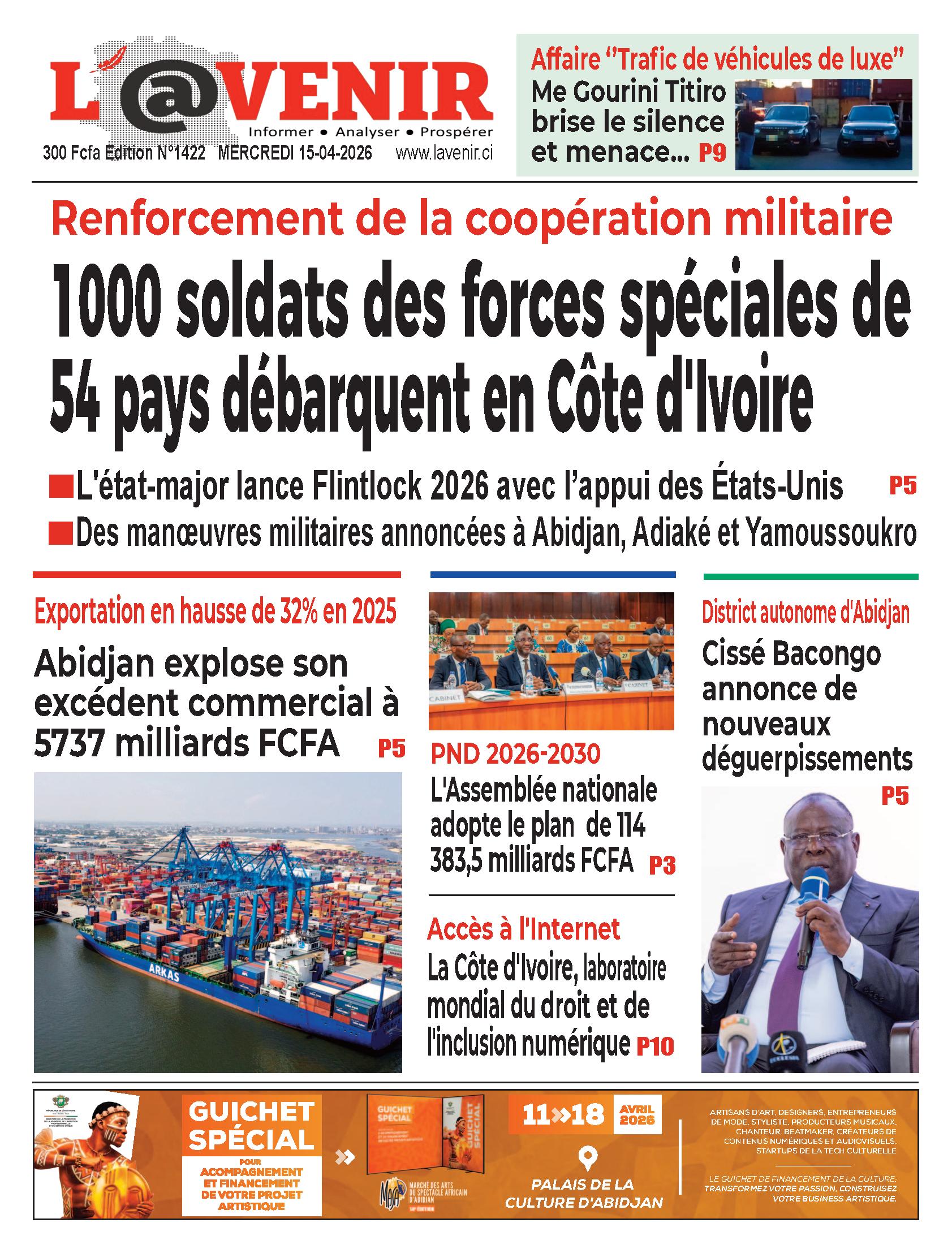 Côte d'Ivoire : les journaux du mercredi 15 avril 2026 Lire les UNES ivoiriennes