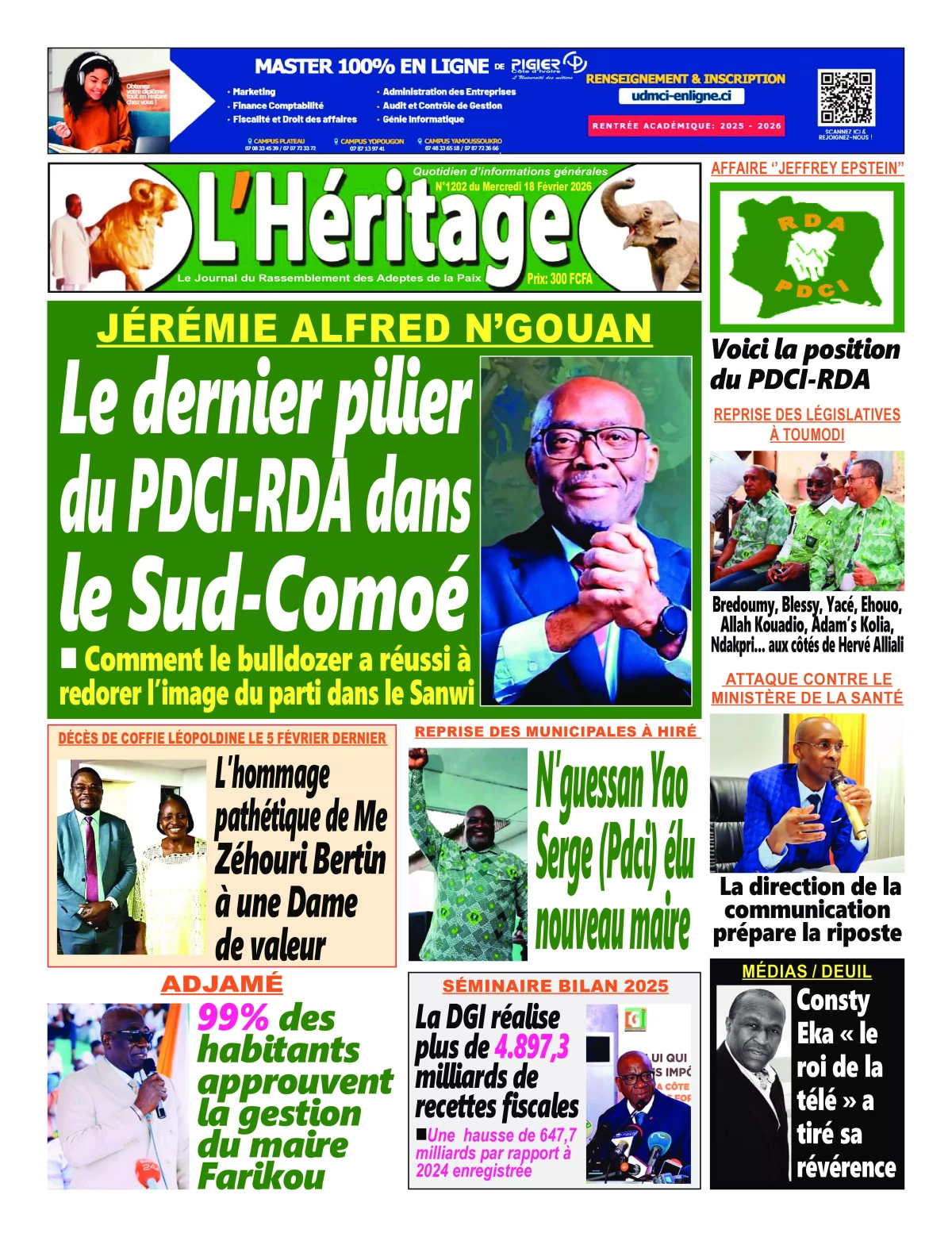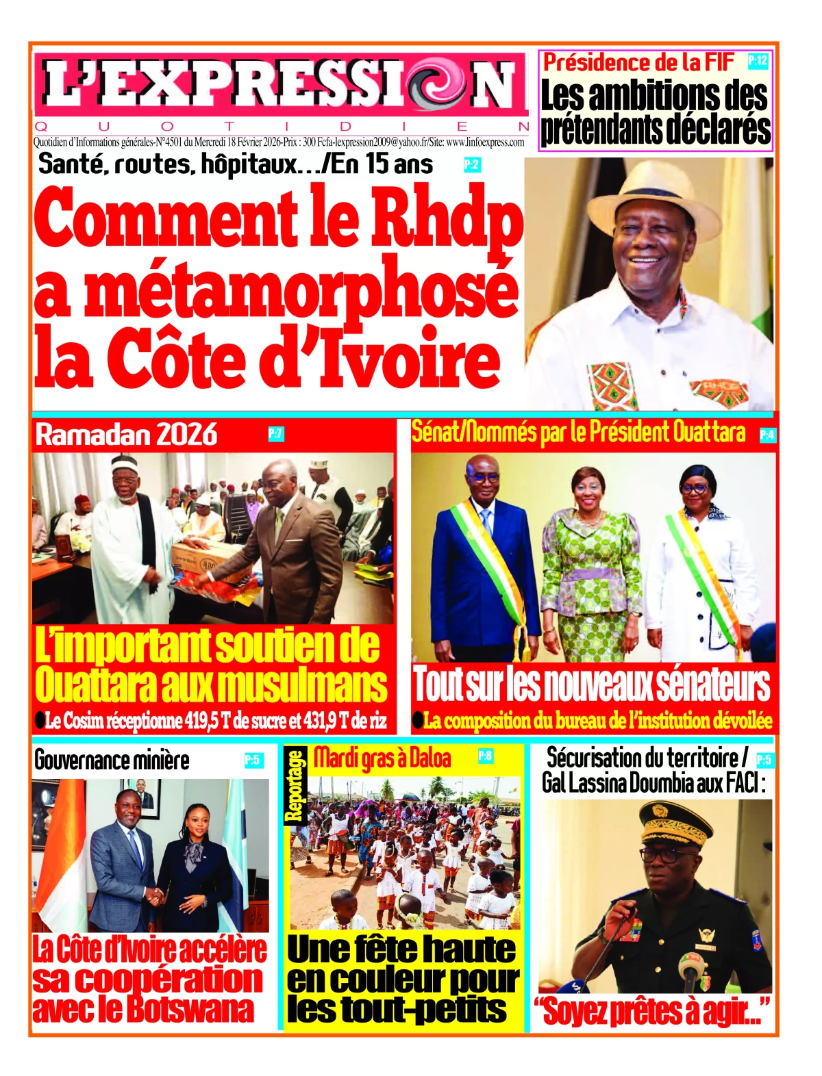 Photos. Les journaux de Côte d’Ivoire du mercredi 18 février 2026