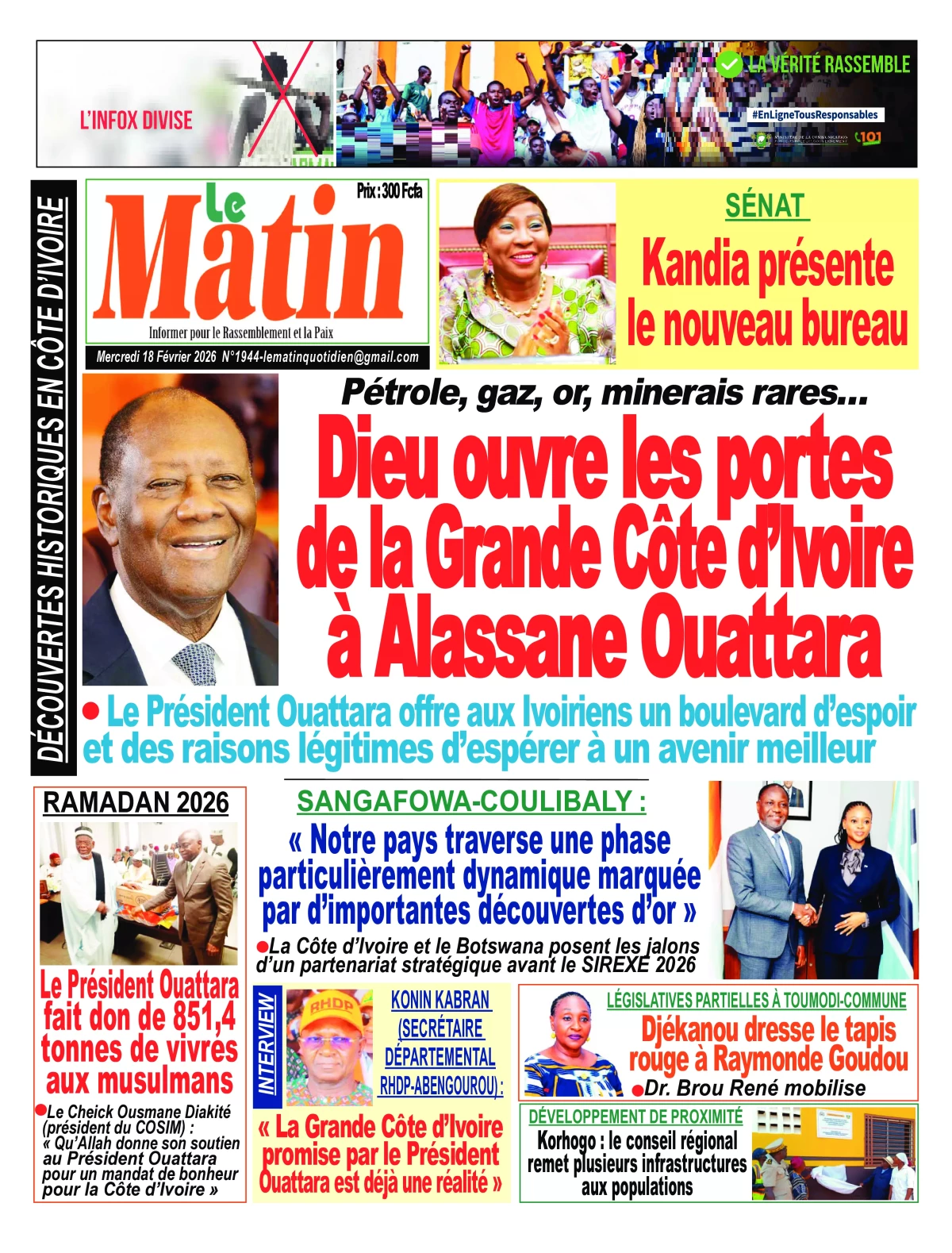 Côte d'Ivoire : les journaux du mercredi 18 février 2026