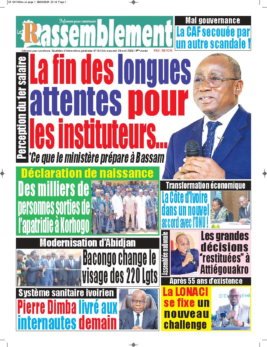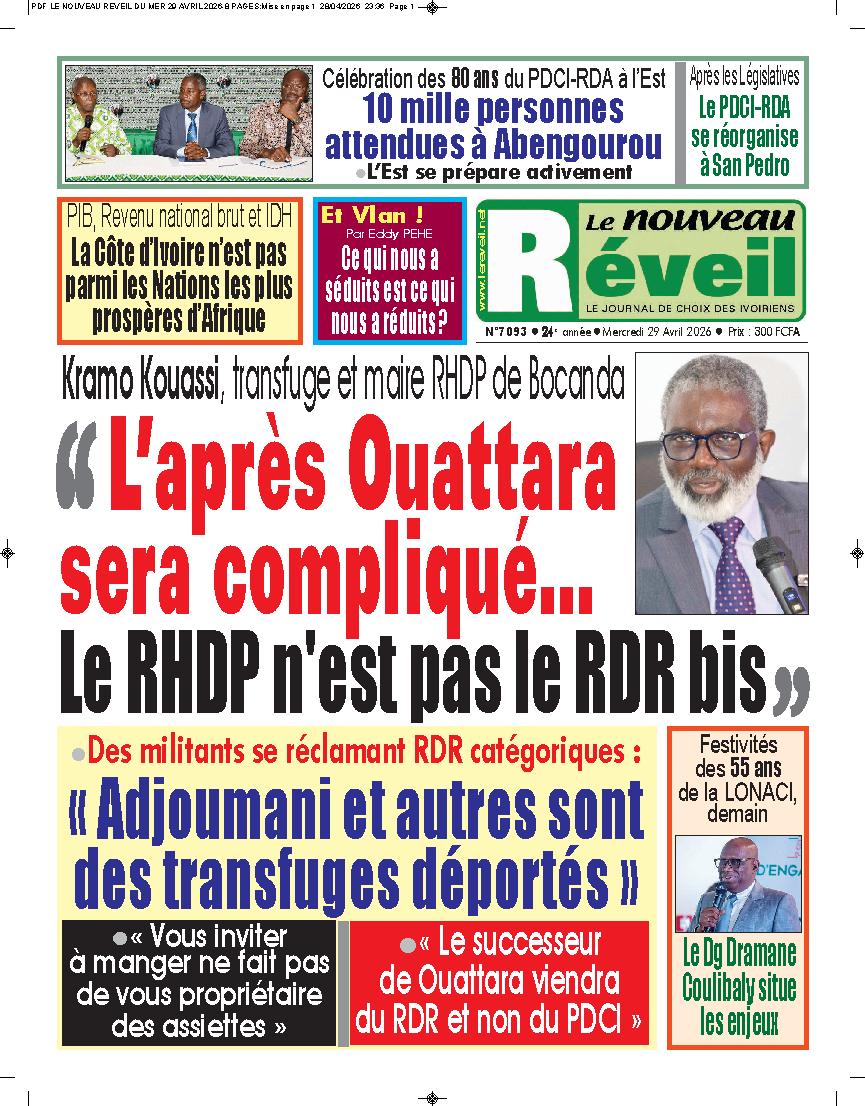 Côte d'Ivoire : les journaux du mercredi 29 avril 2026 Lire les UNES ivoiriennes