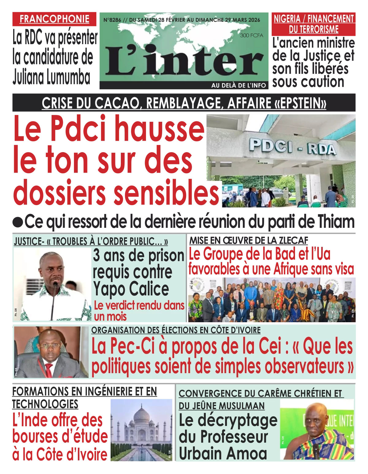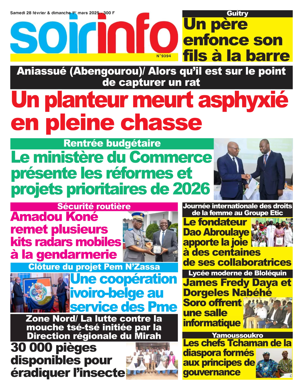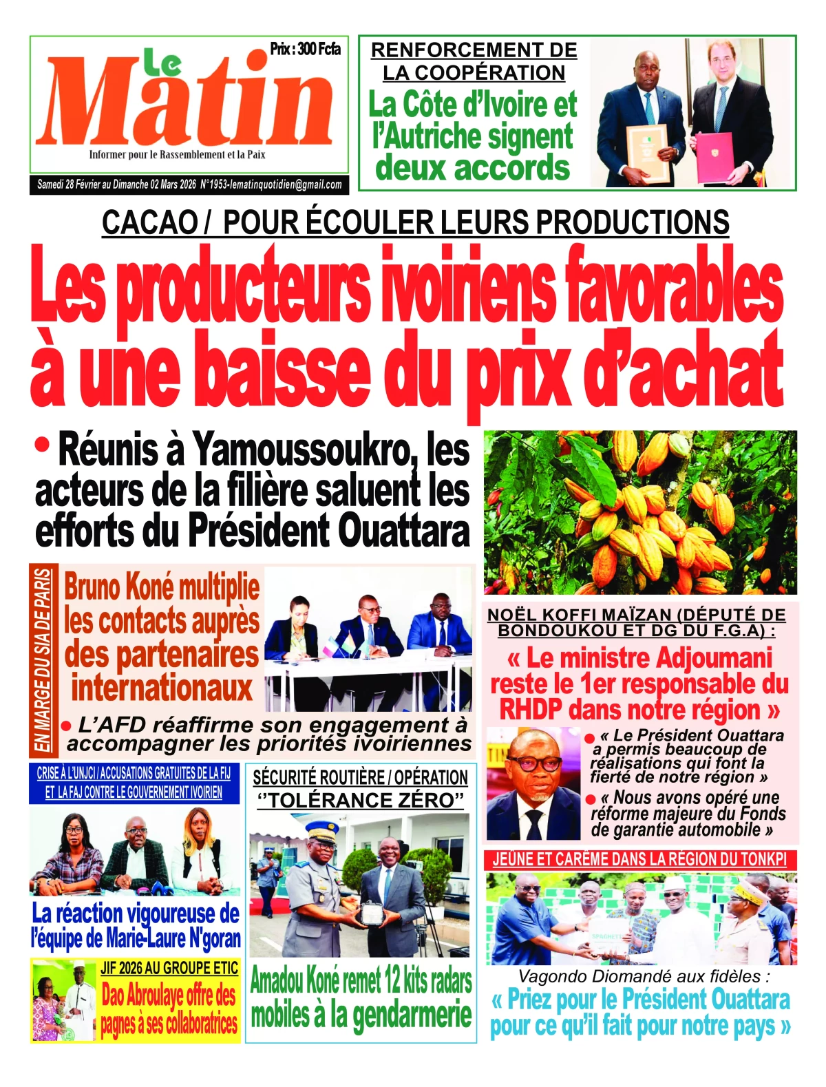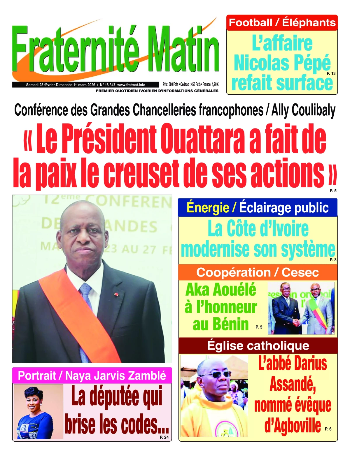Côte d'Ivoire : les journaux du samedi 28 février 2026 Lire les UNES de Côte d'Ivoire