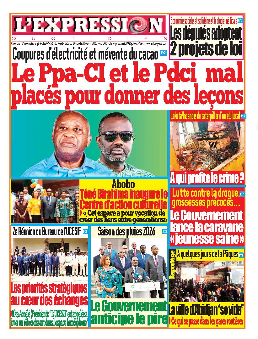 Côte d'Ivoire : les journaux du vendredi 03 avril 2026 Lire les UNES ivoiriennes