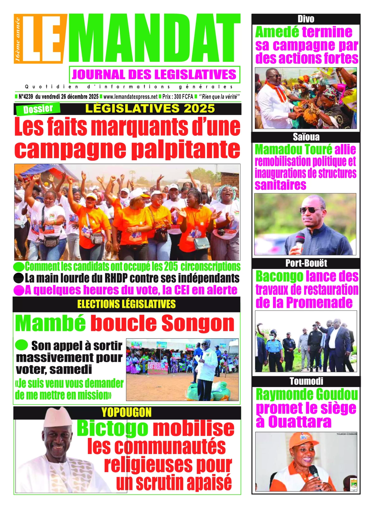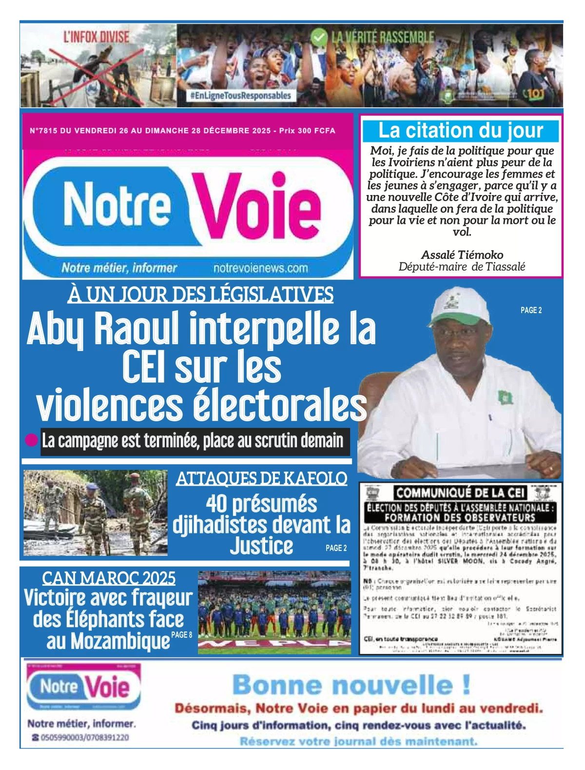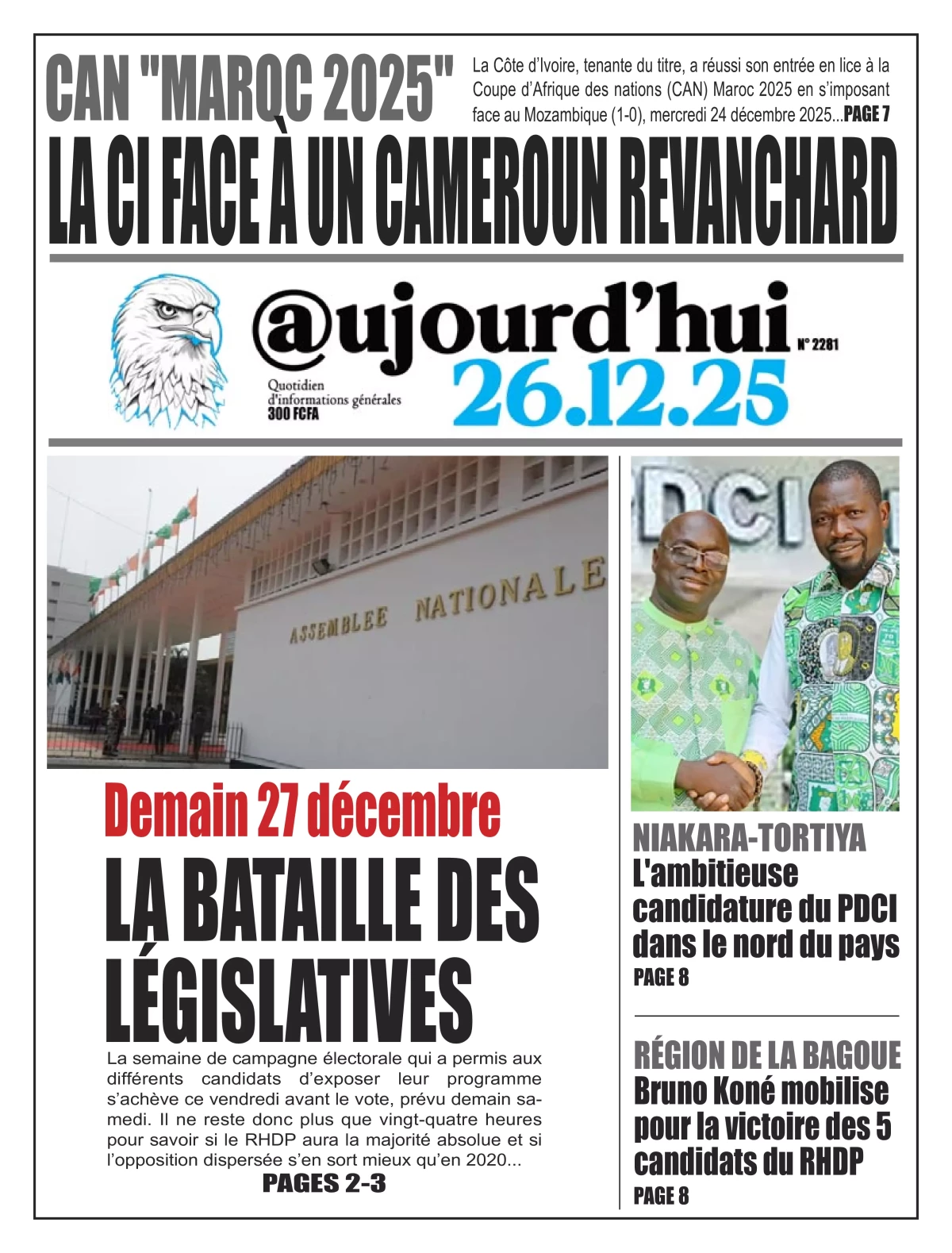 Côte d'Ivoire : les journaux du vendredi 26 décembre 2025 Lire les journaux de Côte d'Ivoire