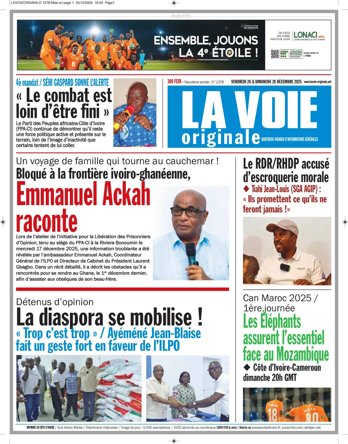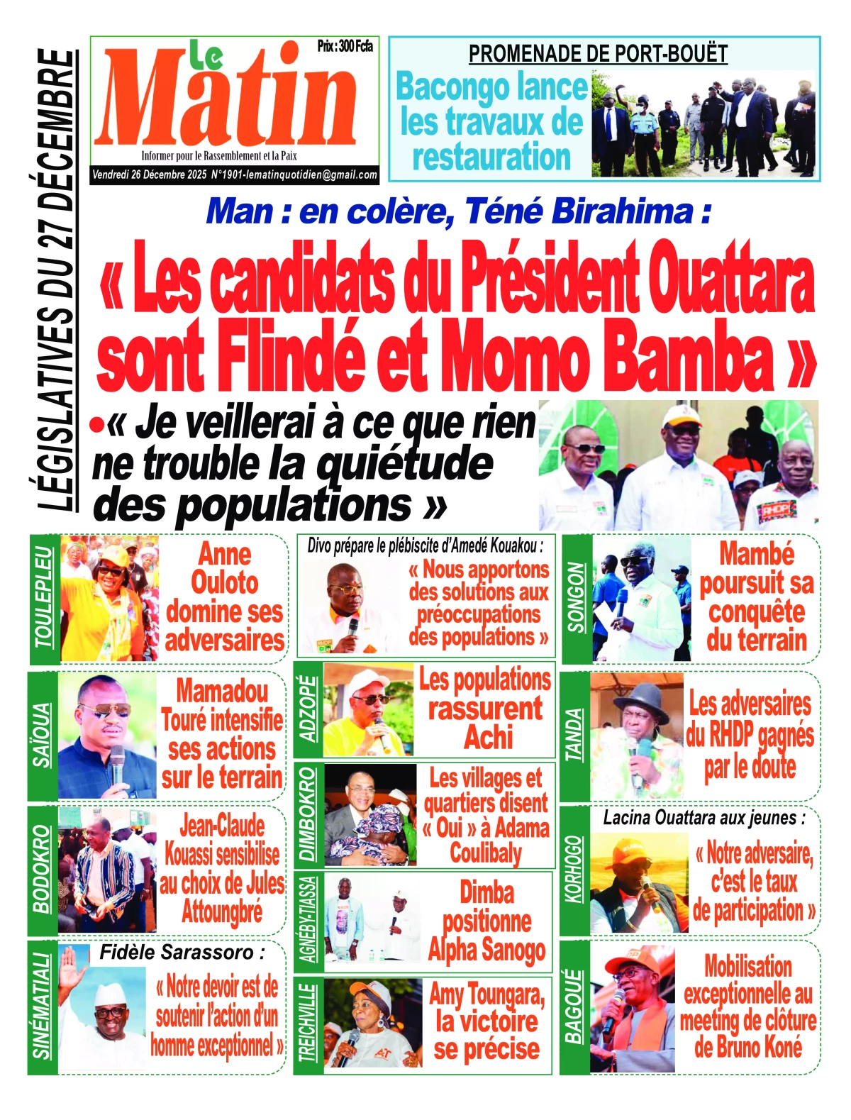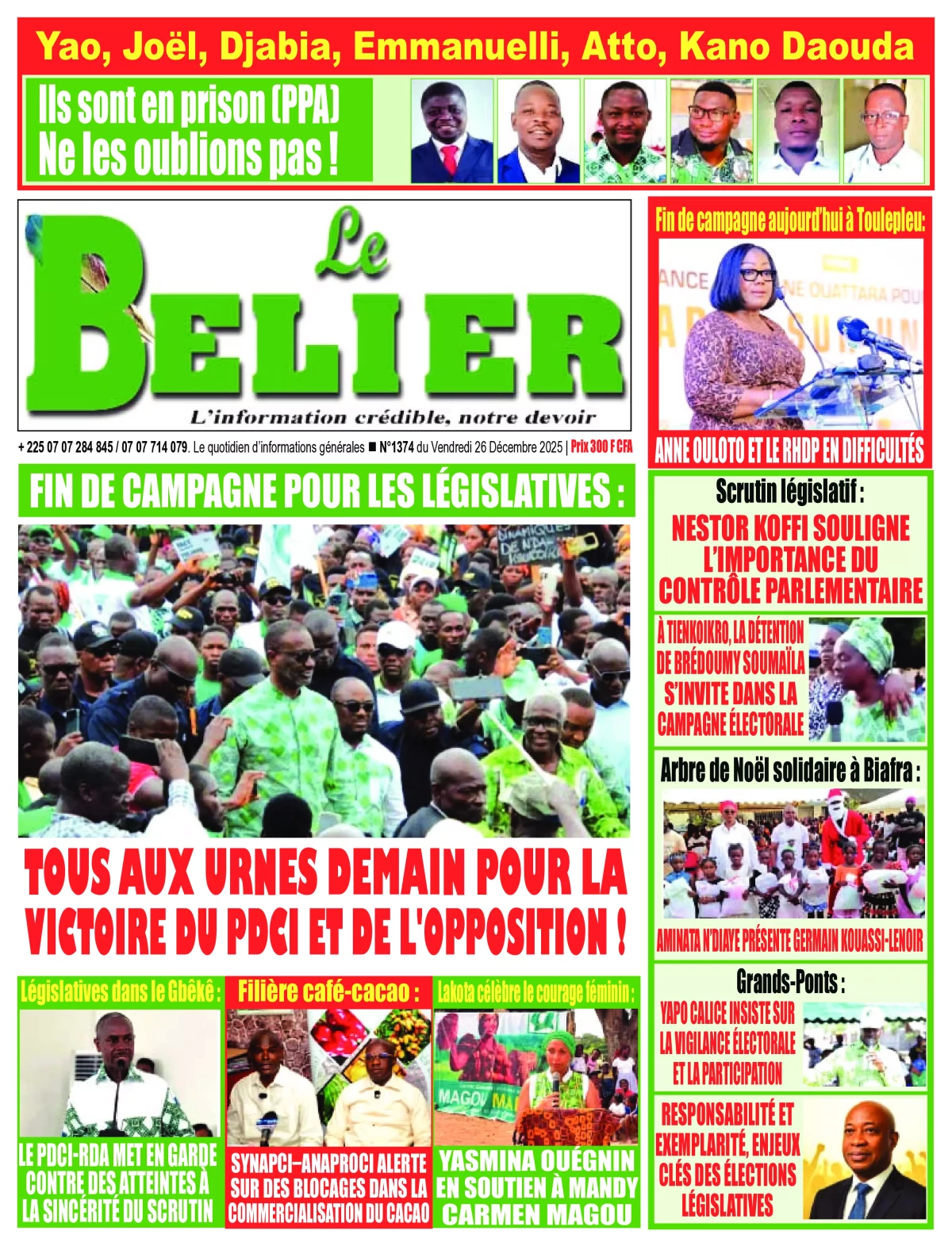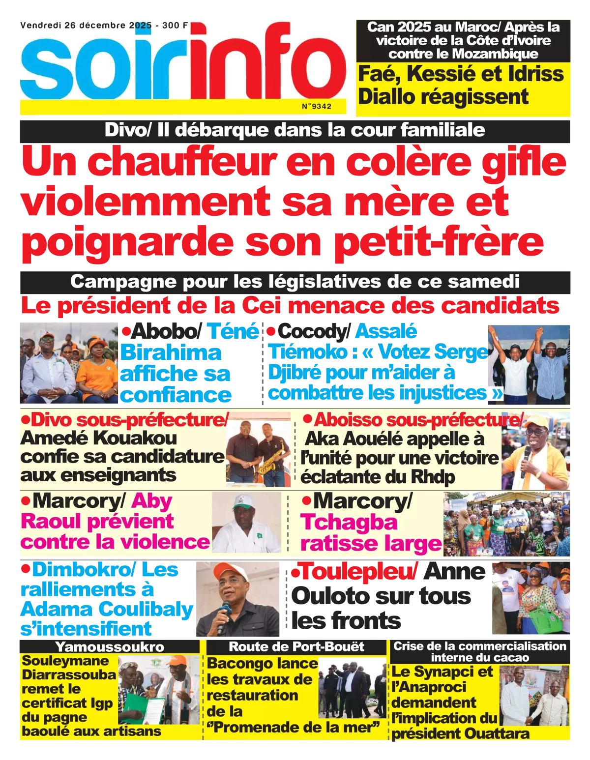 Côte d'Ivoire : les journaux du vendredi 26 décembre 2025 Lire les journaux de Côte d'Ivoire