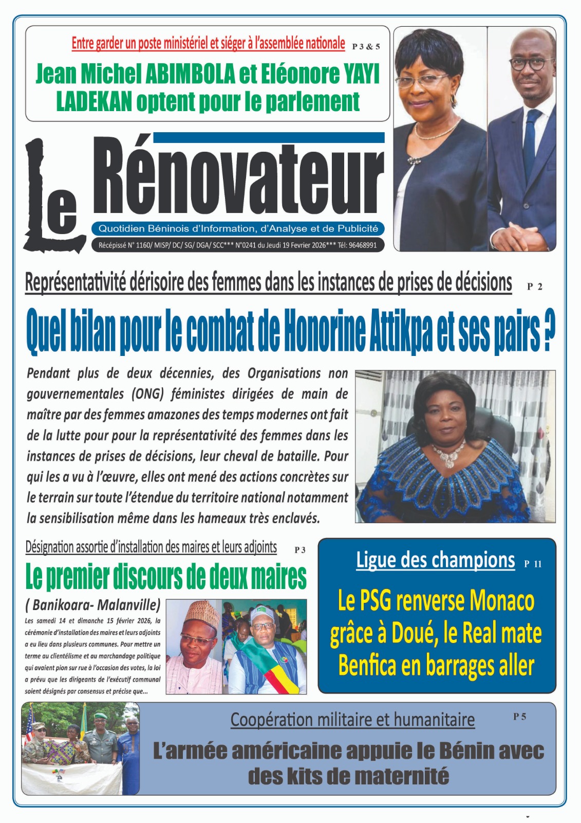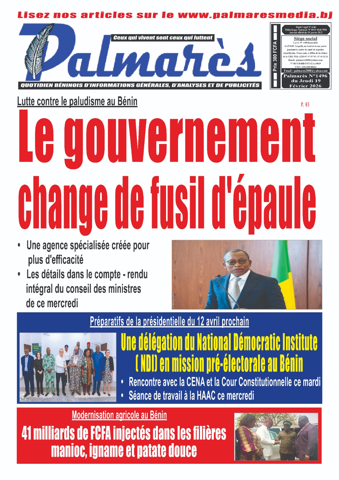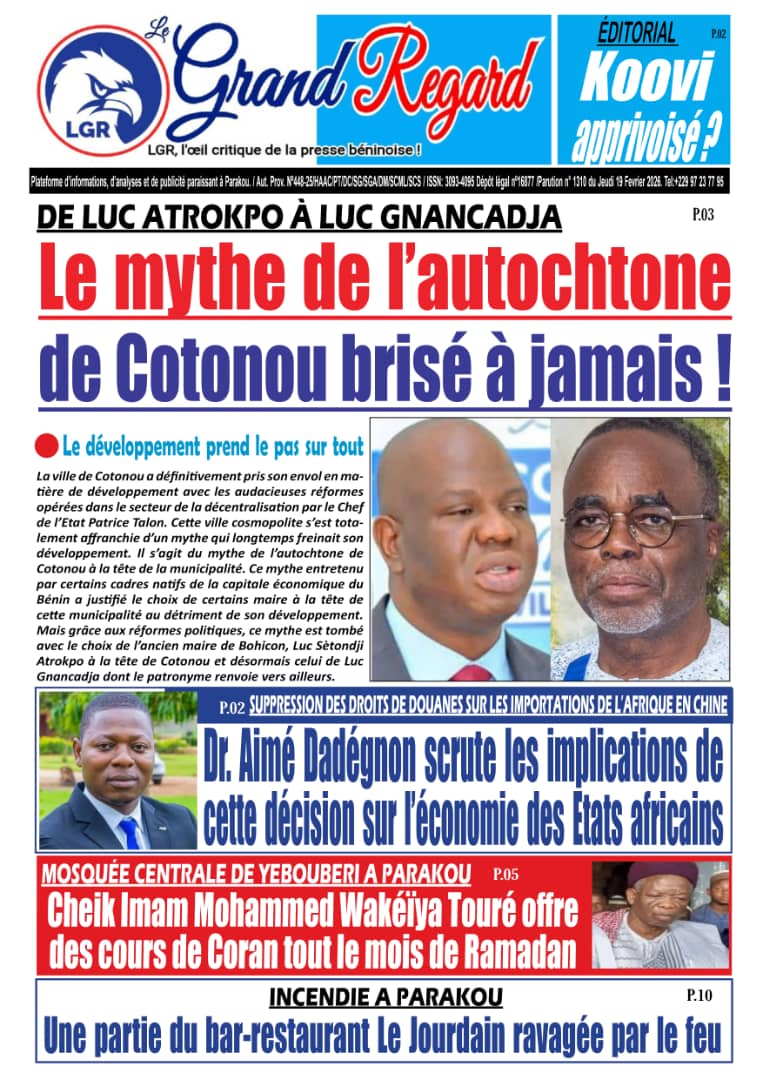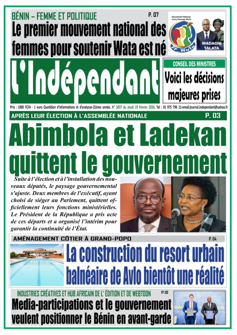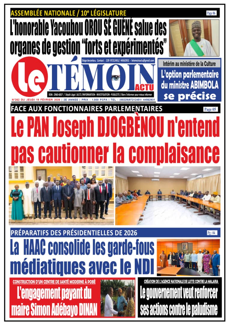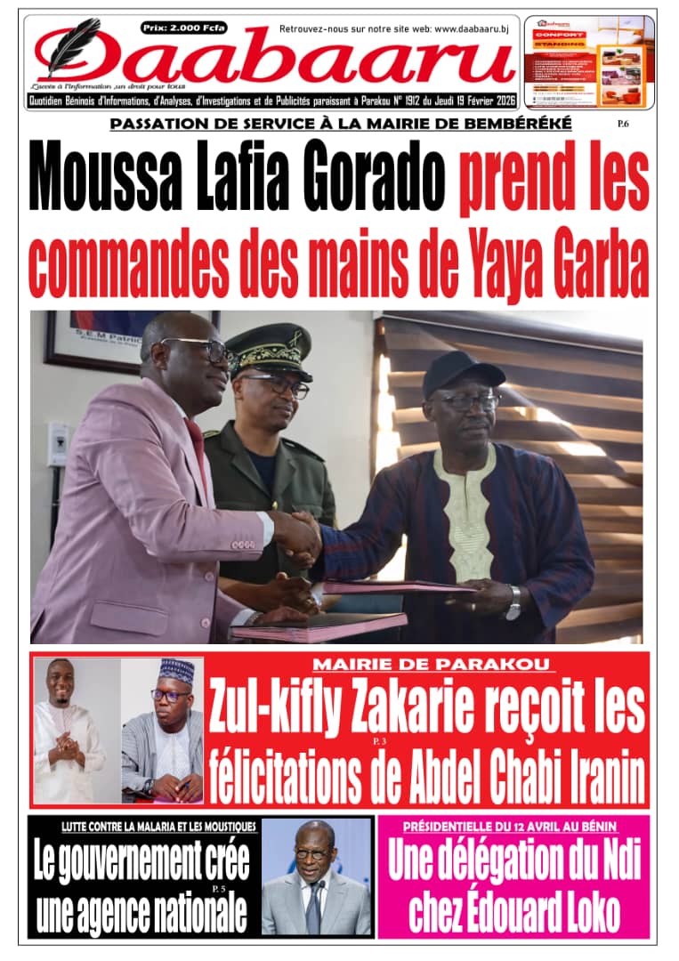 Bénin : les journaux du jeudi 19 février 2026 Lire les UNES du Bénin