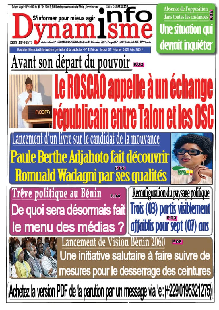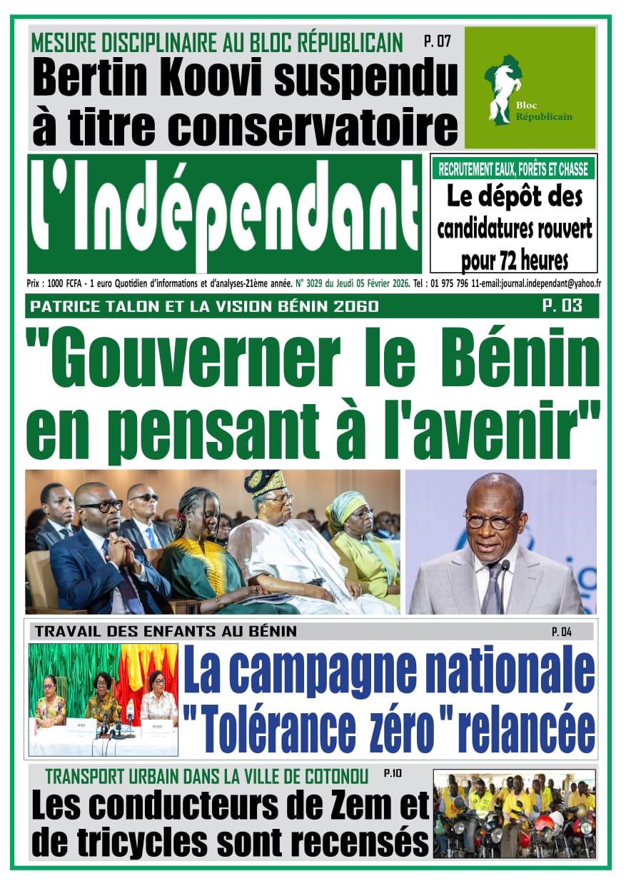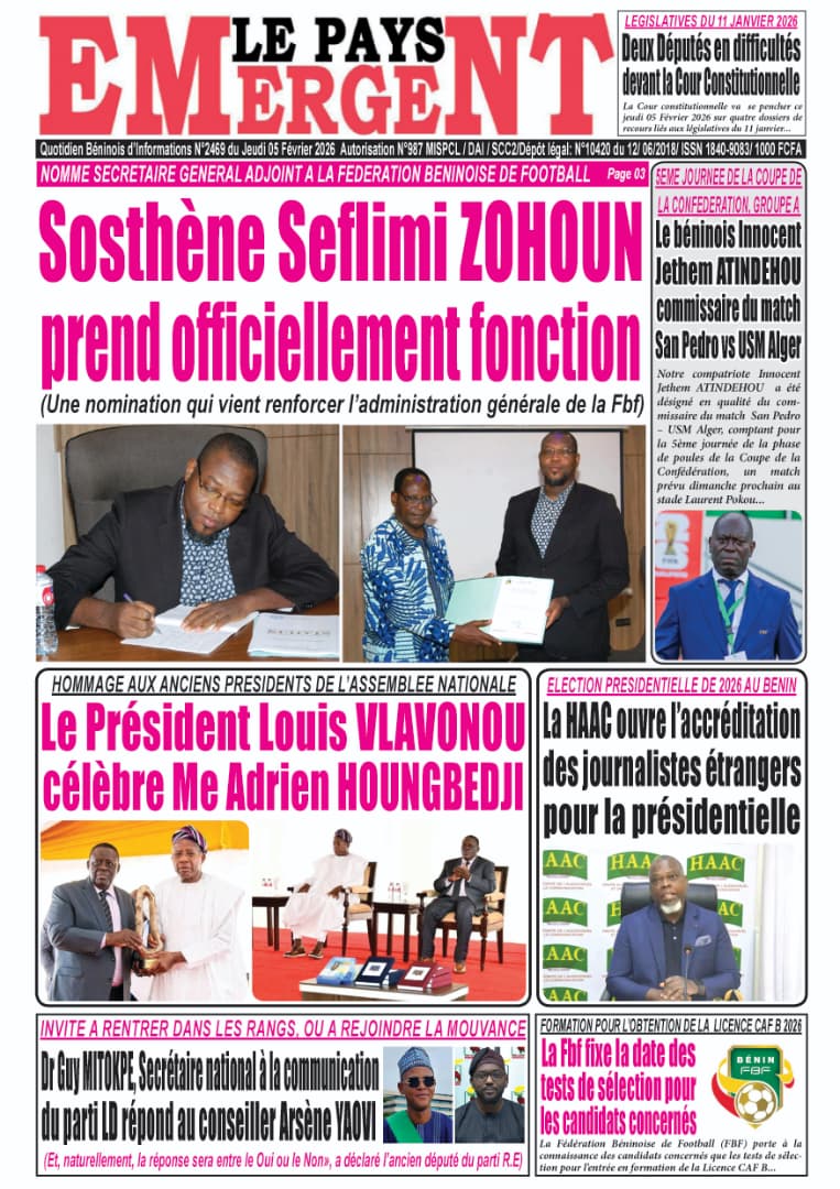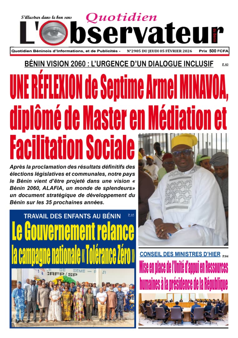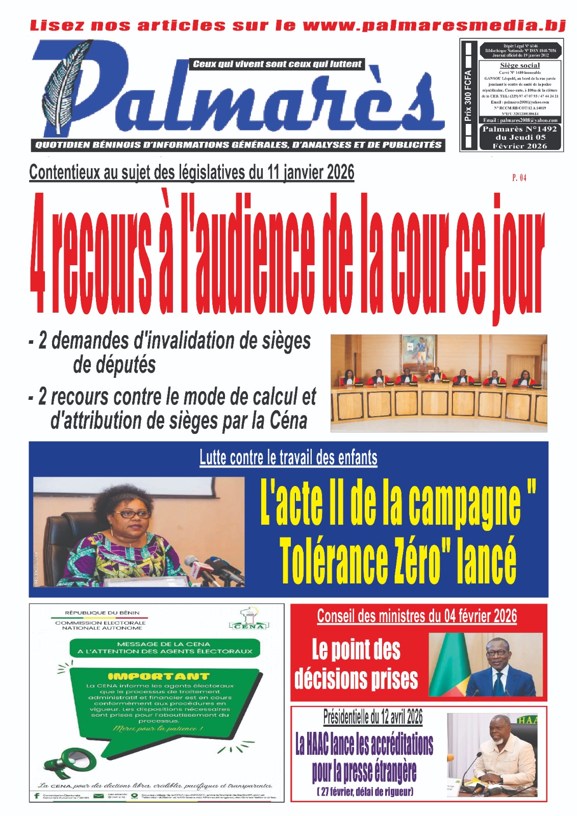 Bénin : les journaux du jeudi 05 février 2026 Lire les journaux du Bénin