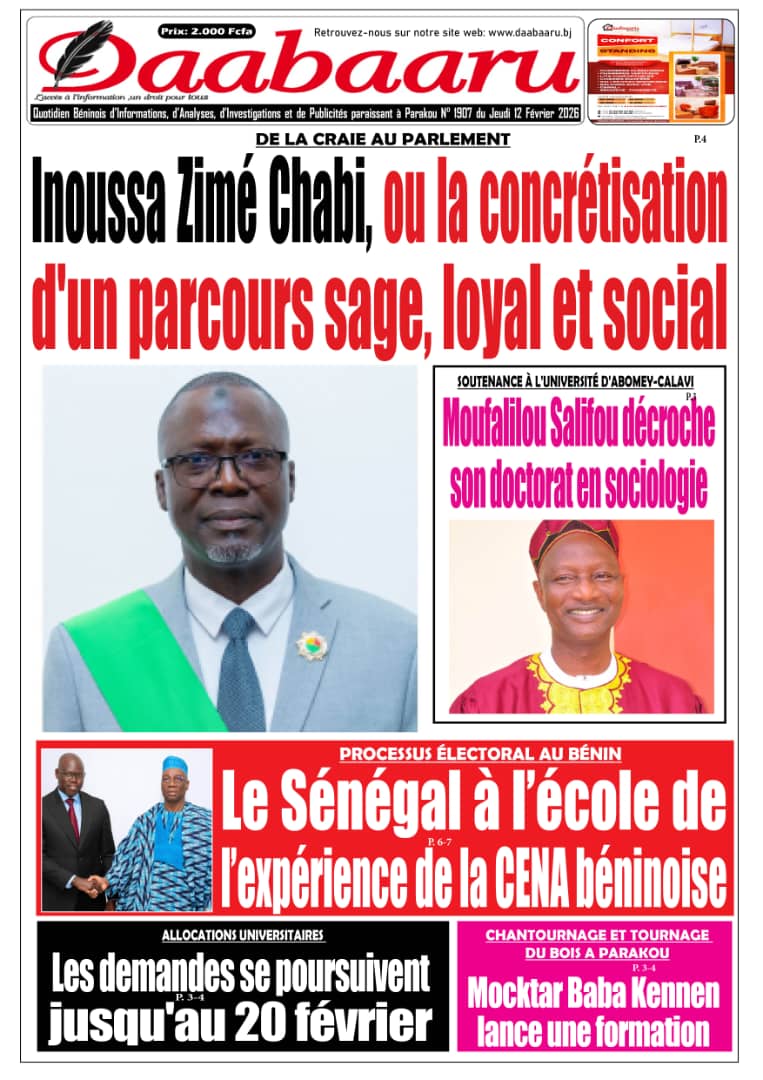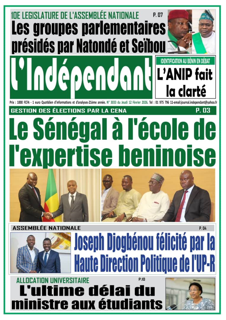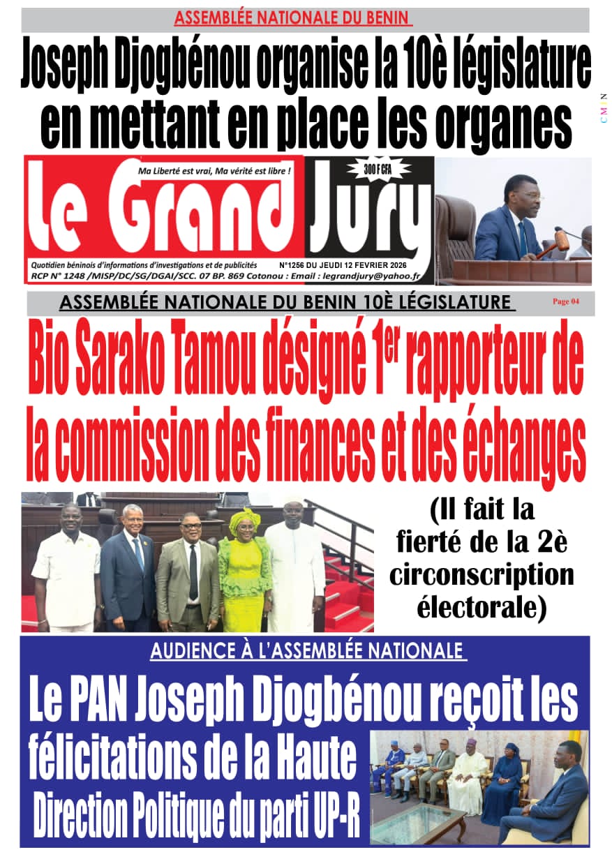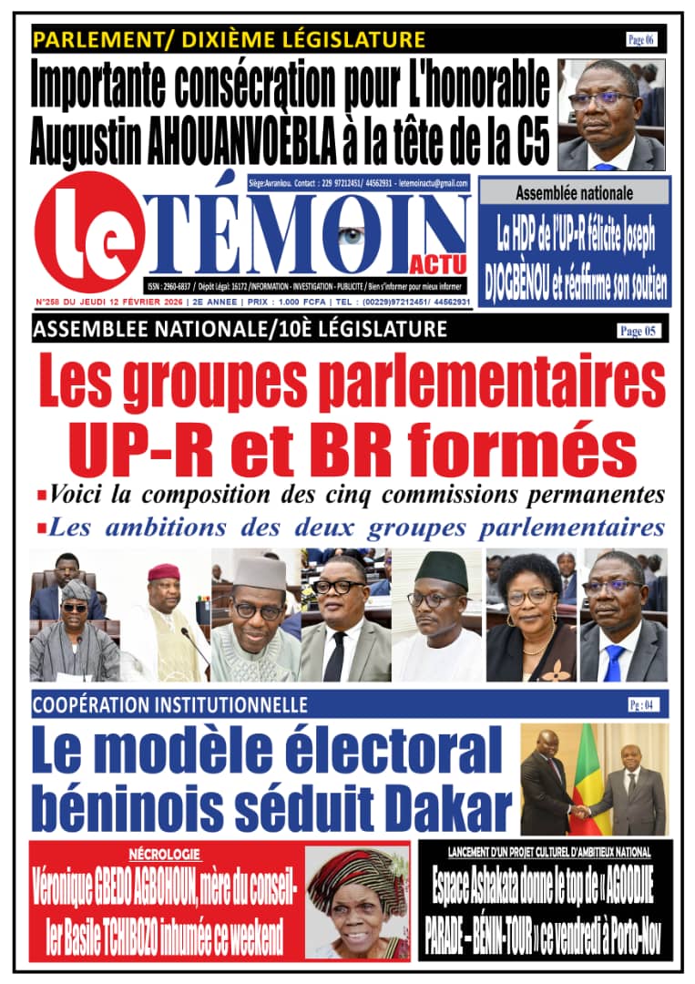 Bénin : les journaux du jeudi 12 février 2026 Lire les UNES du Bénin