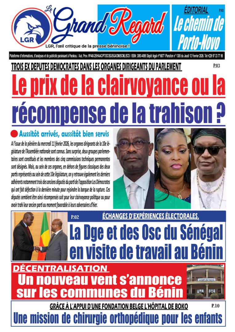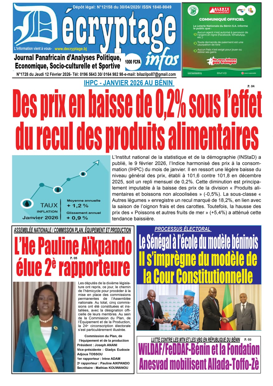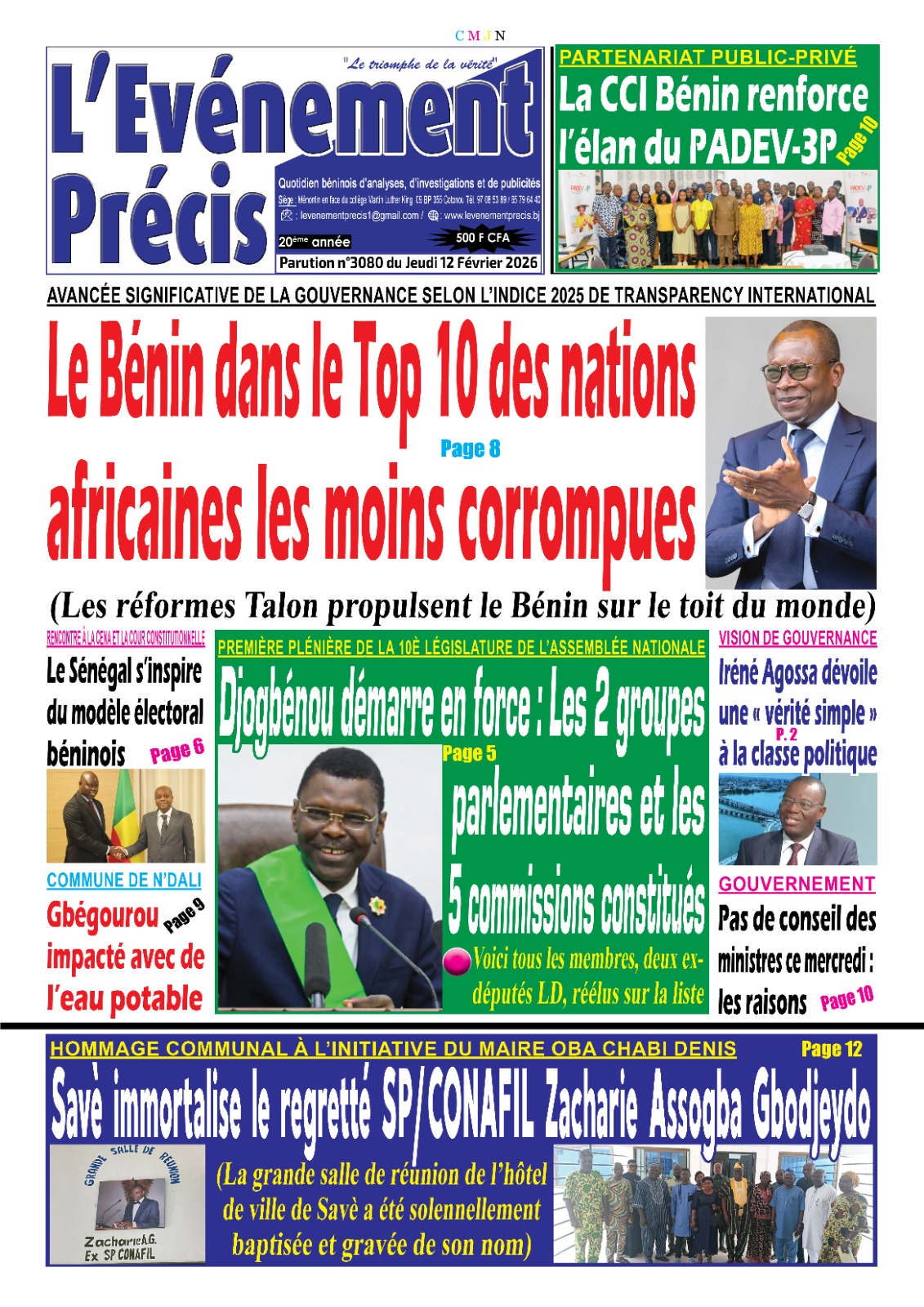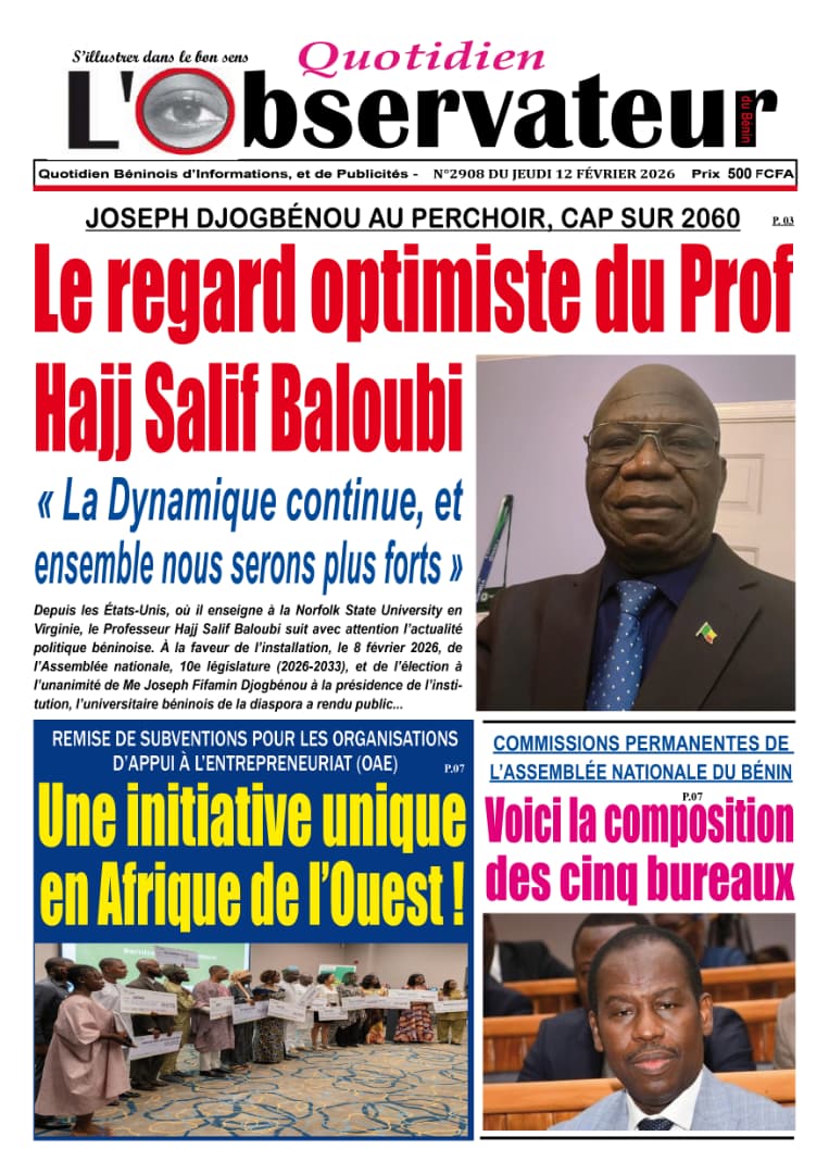 Bénin : les journaux du jeudi 12 février 2026 Lire les UNES du Bénin