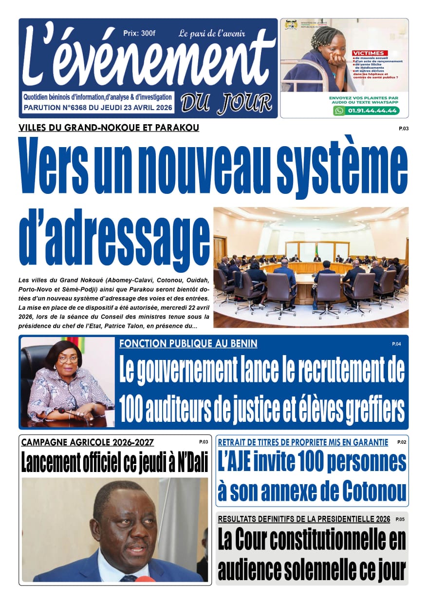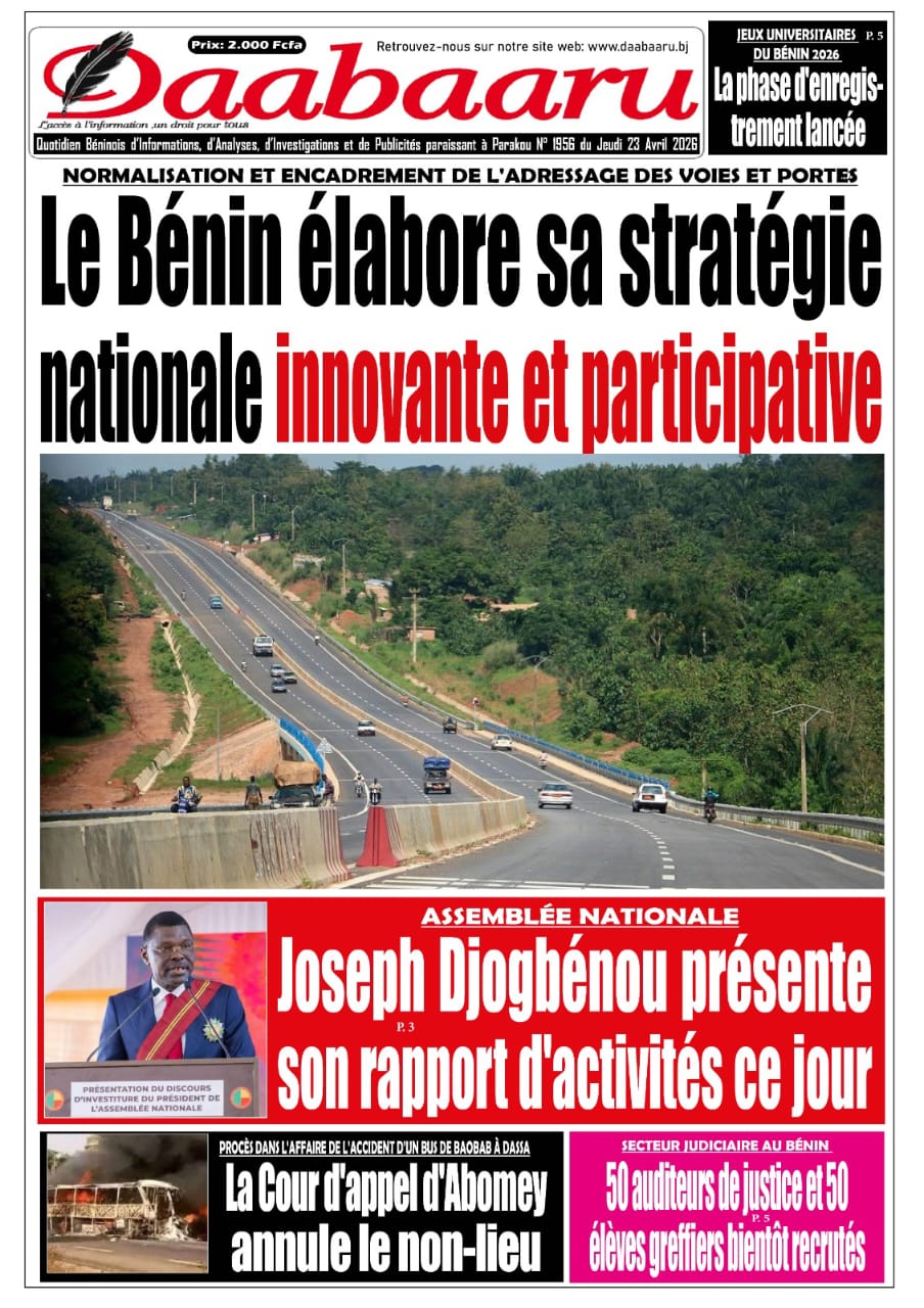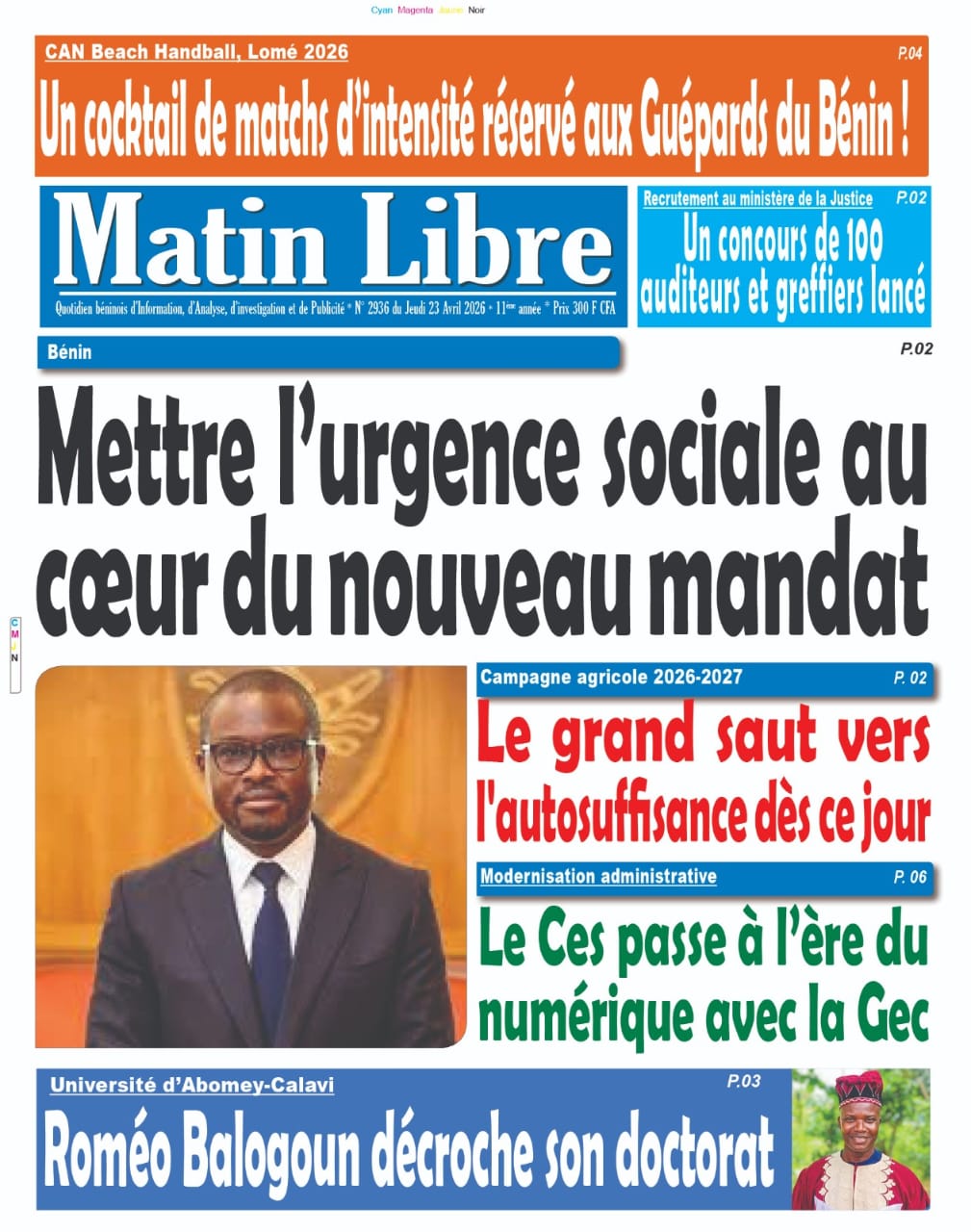 Bénin : les journaux du jeudi 23 avril 2026 Lire les UNES béninoises