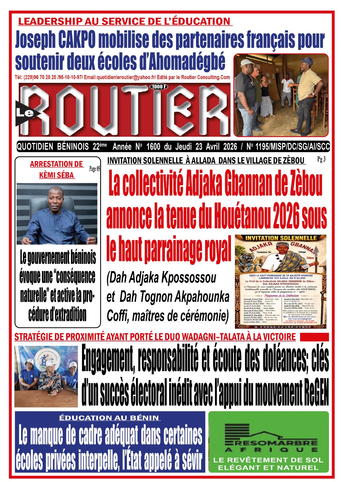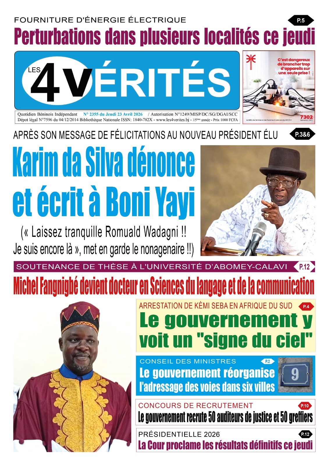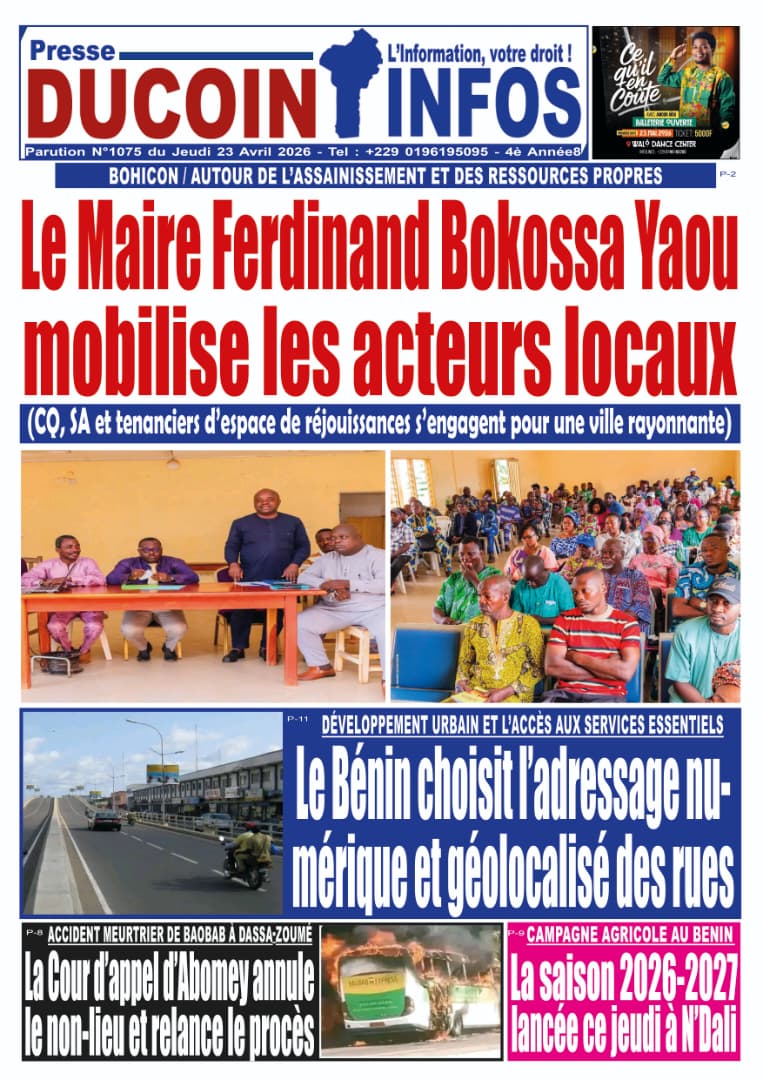Bénin : les journaux du jeudi 23 avril 2026 Lire les UNES béninoises