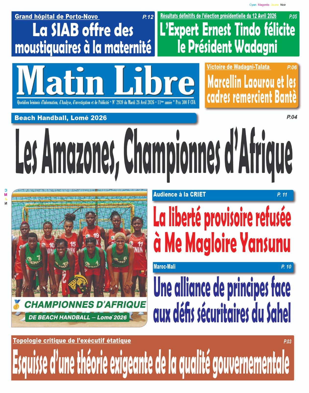 Bénin : les journaux du mardi 28 avril 2026 Lire les UNES béninoises