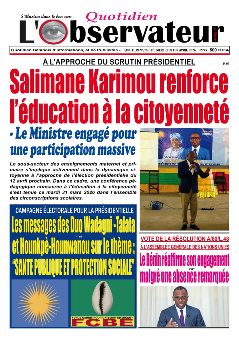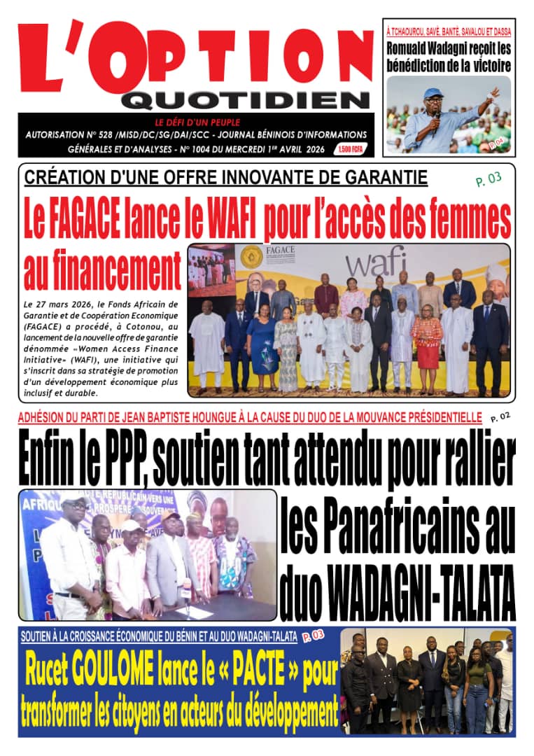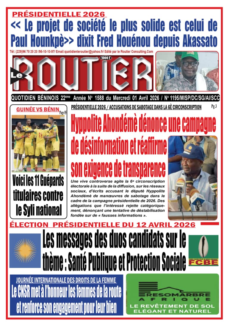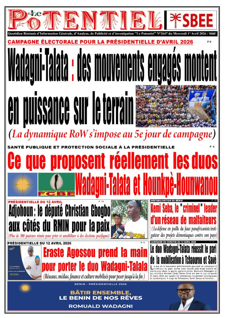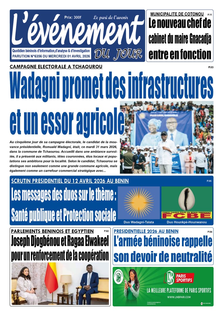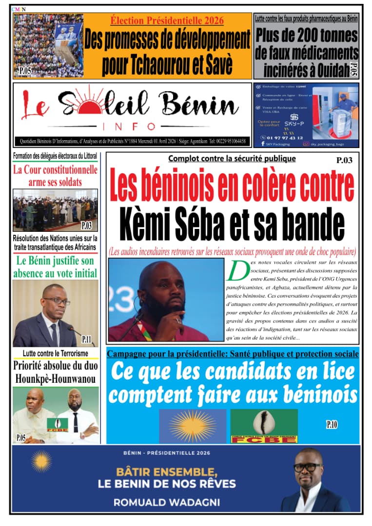 Bénin : les journaux du mercredi 01 avril 2026 Lire les UNES béninoises