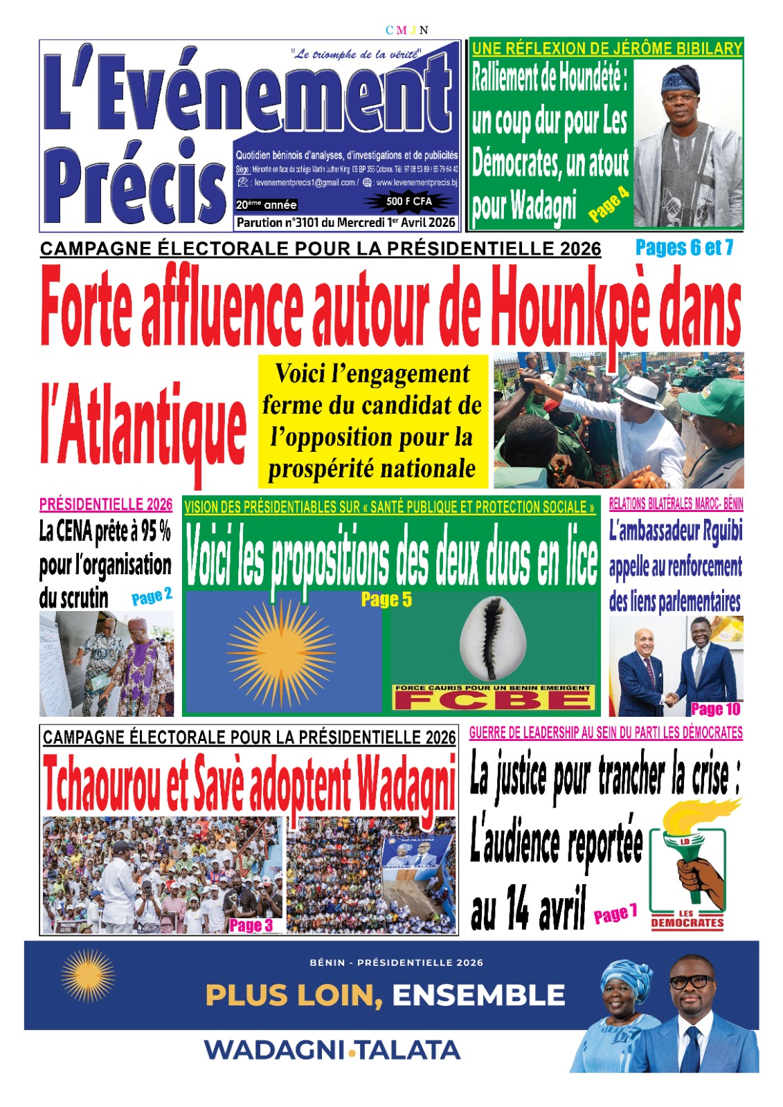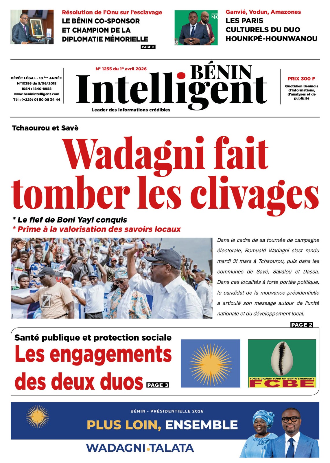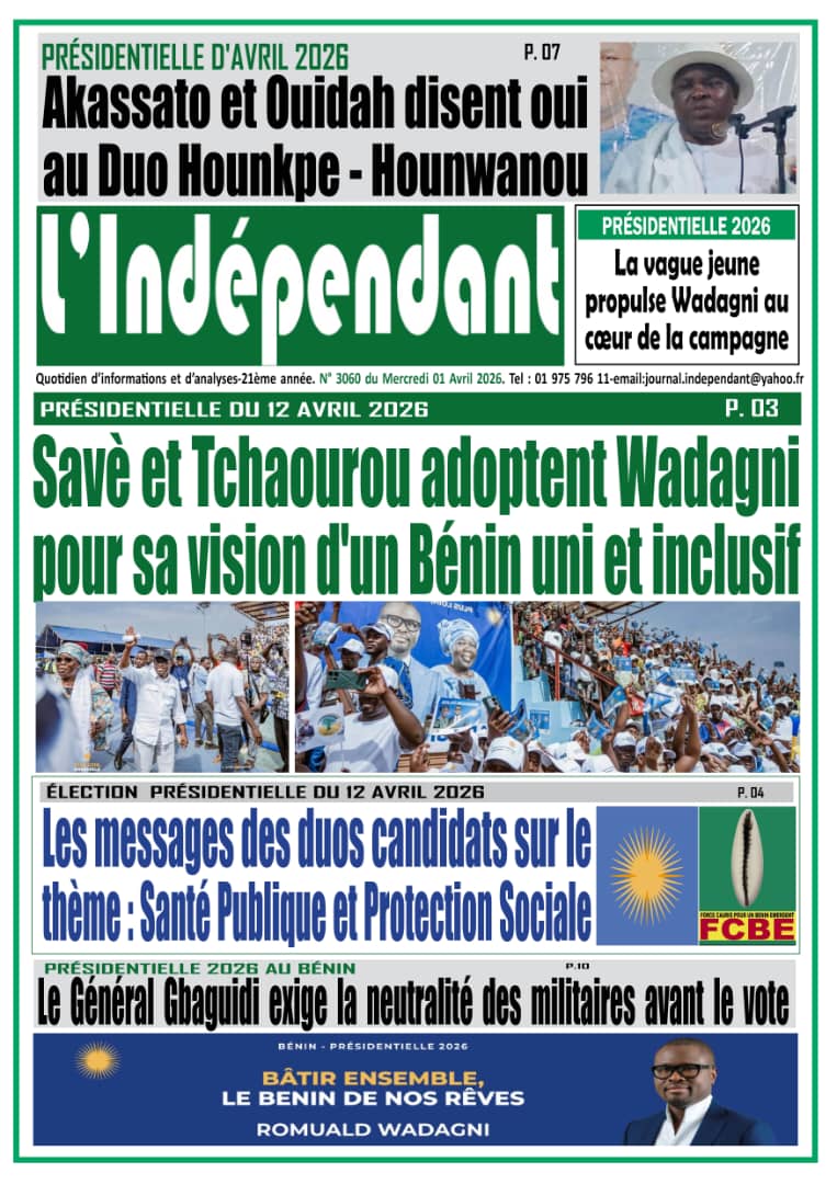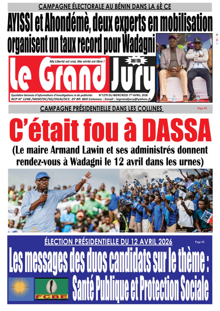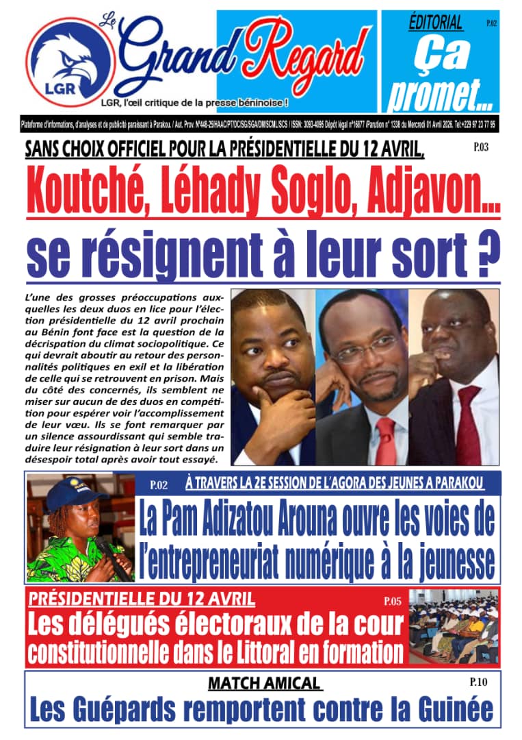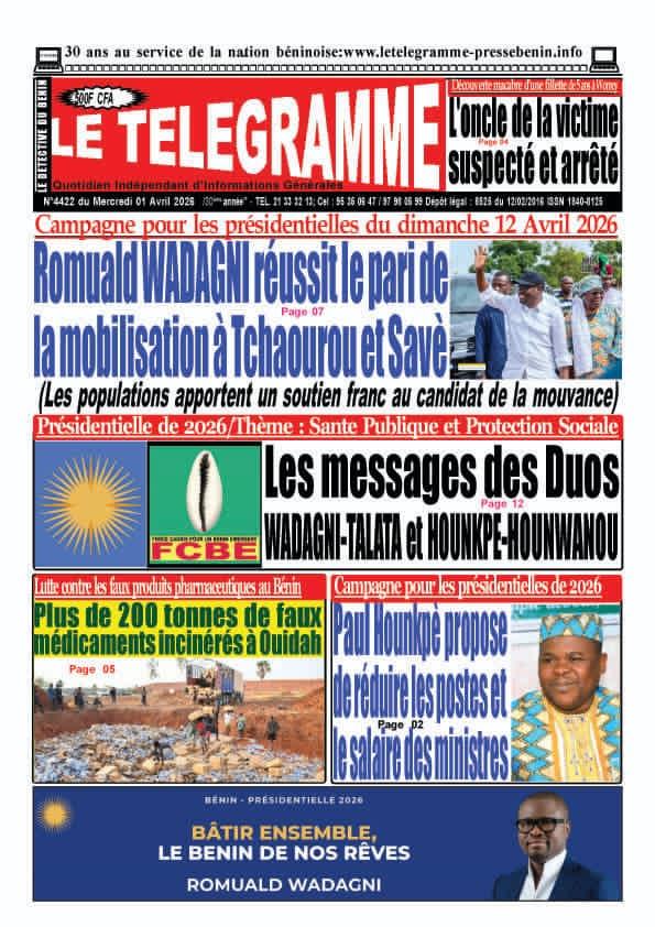 Bénin : les journaux du mercredi 01 avril 2026 Lire les UNES béninoises