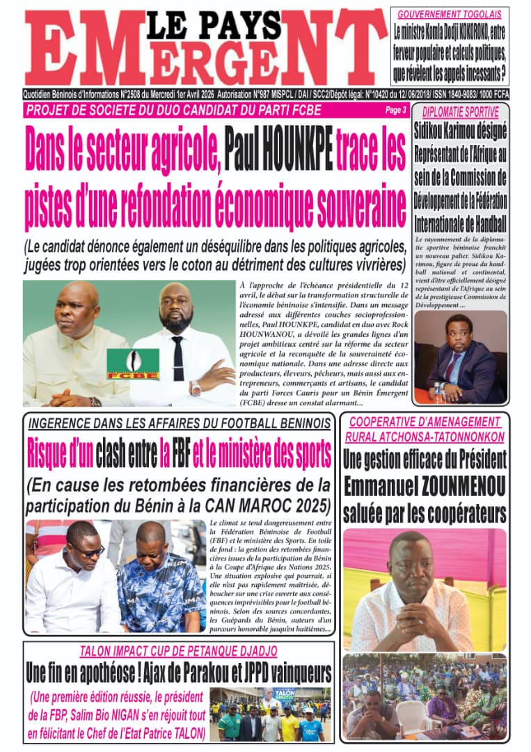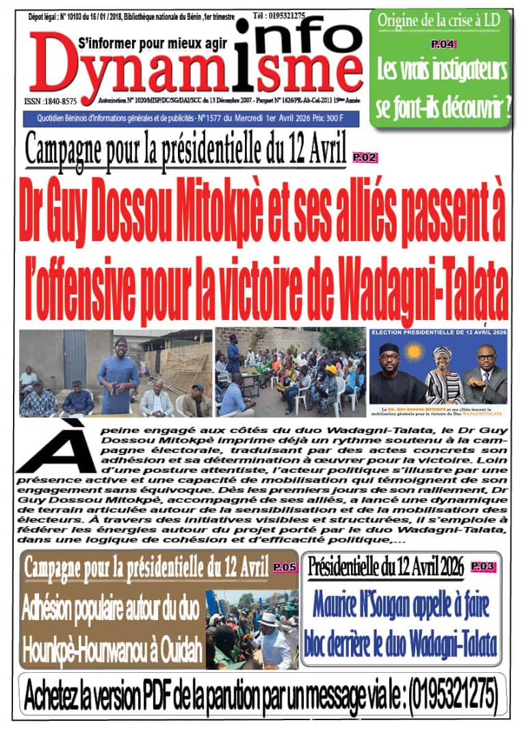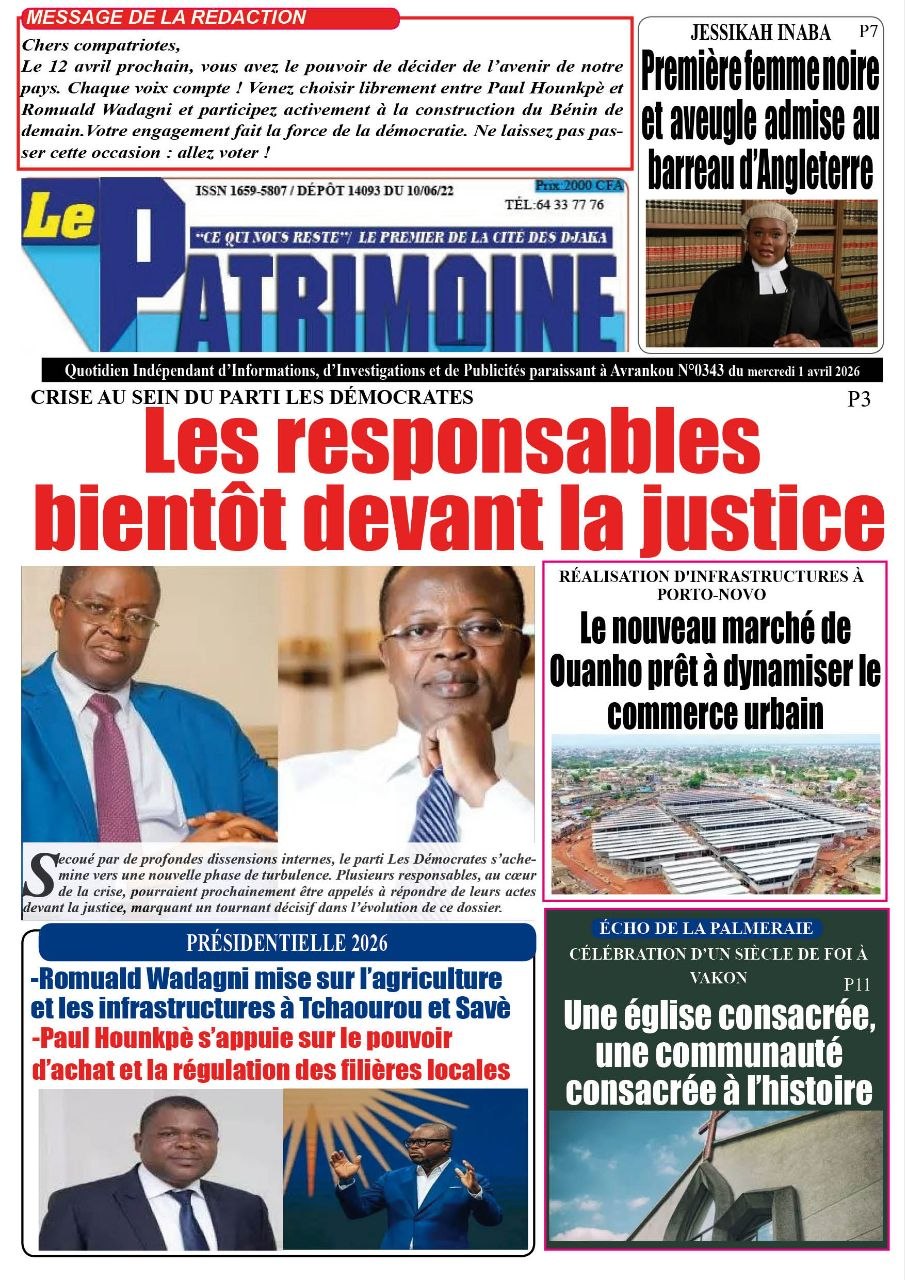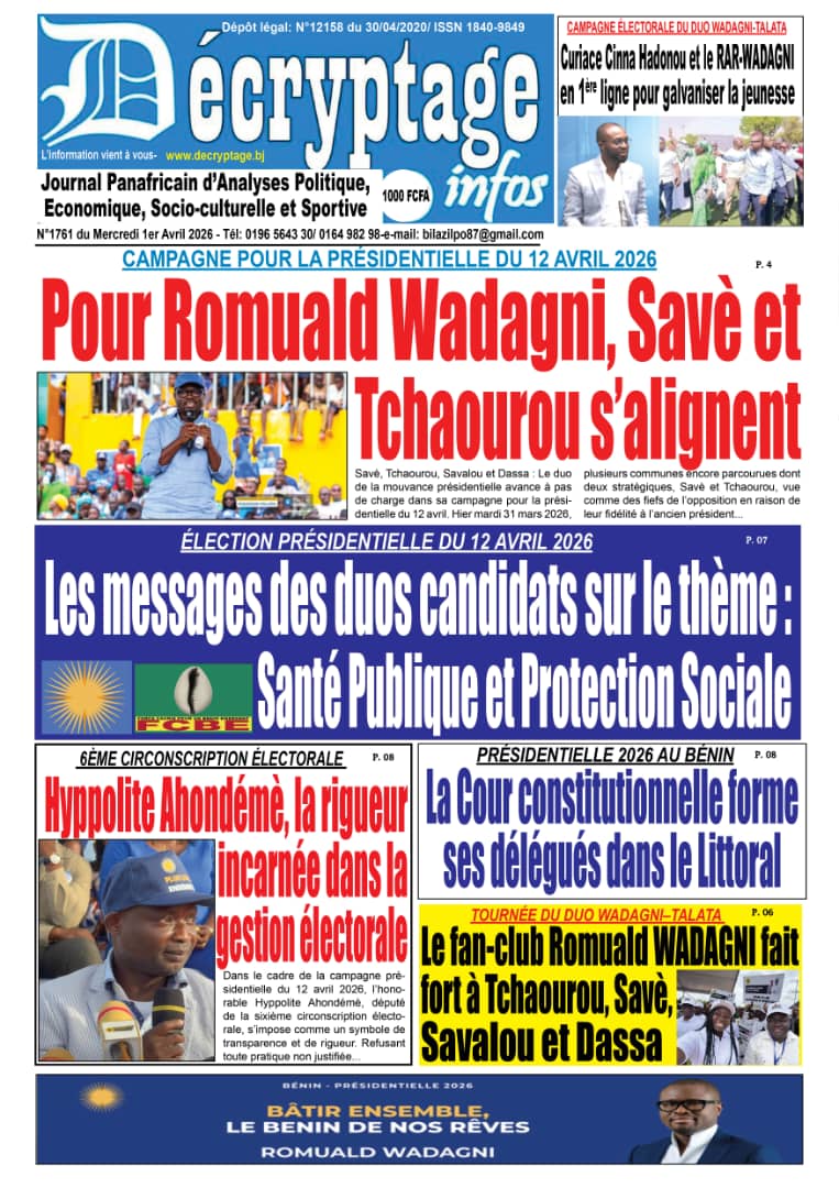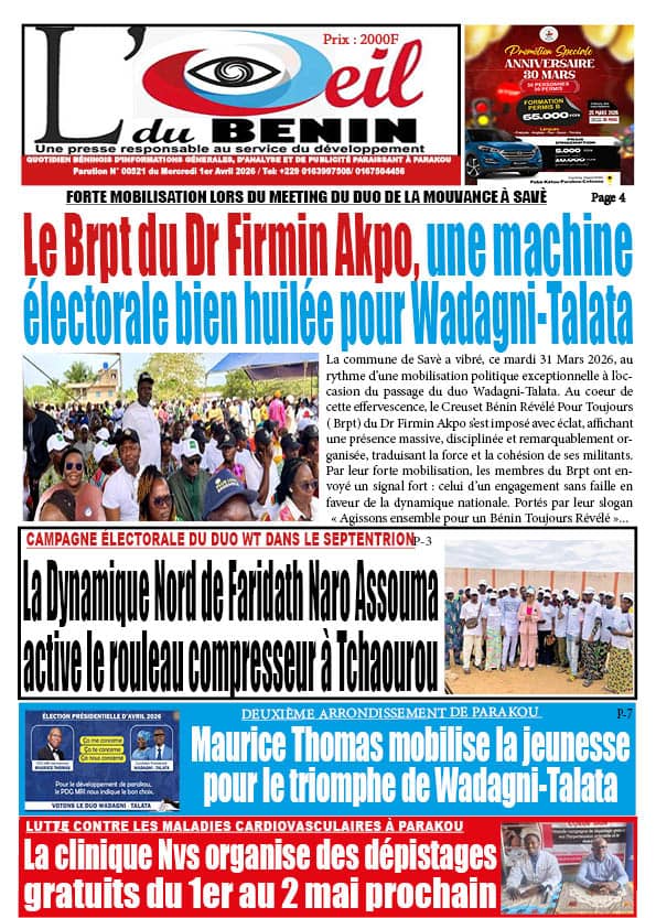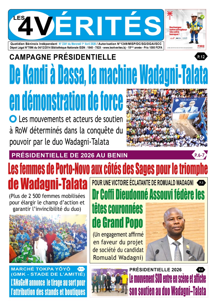Bénin : les journaux du mercredi 01 avril 2026 Lire les UNES béninoises
