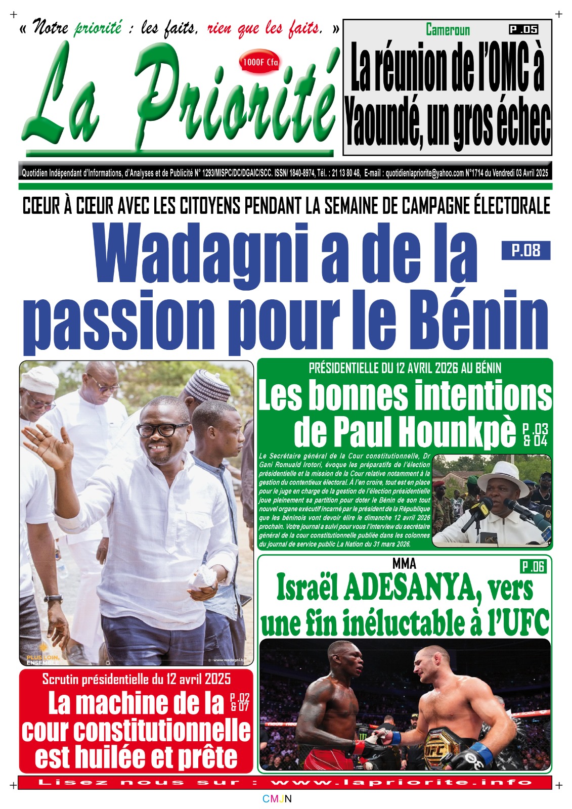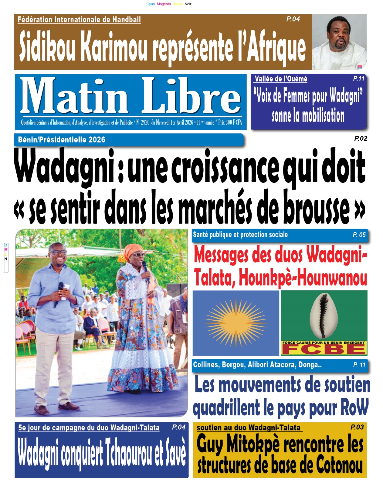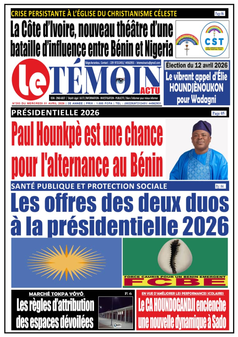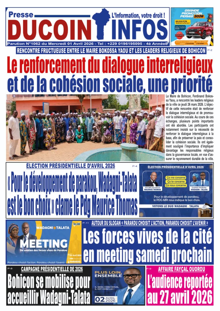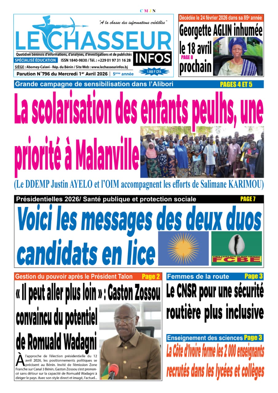 Bénin : les journaux du mercredi 01 avril 2026 Lire les UNES béninoises