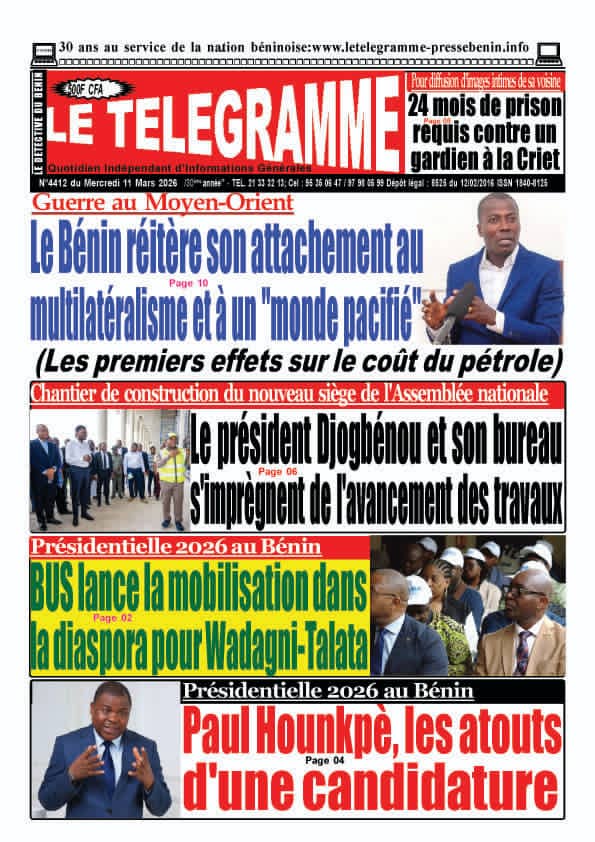 Bénin : les journaux du mercredi 11 mars 2026 Lire les UNES du Bénin
