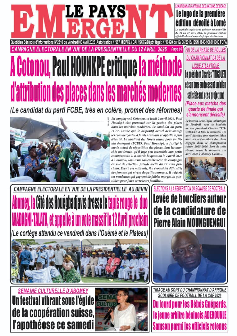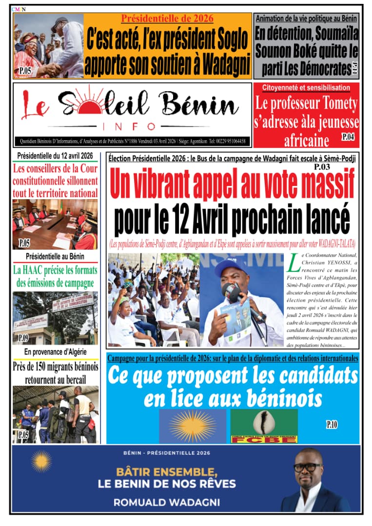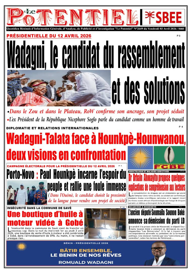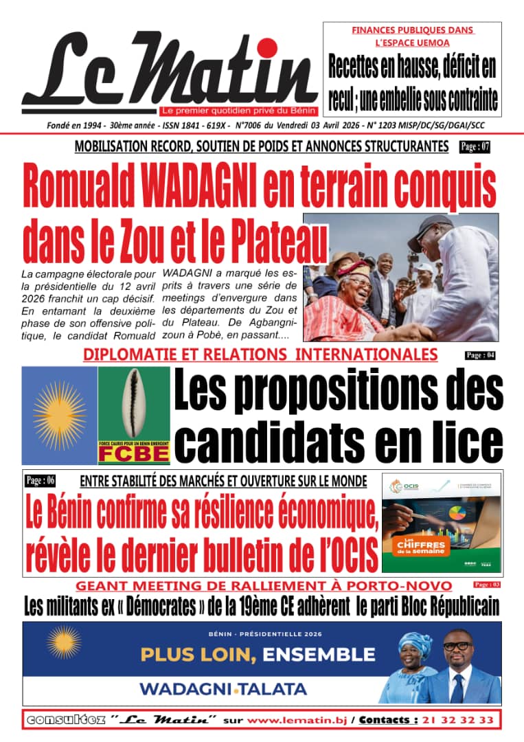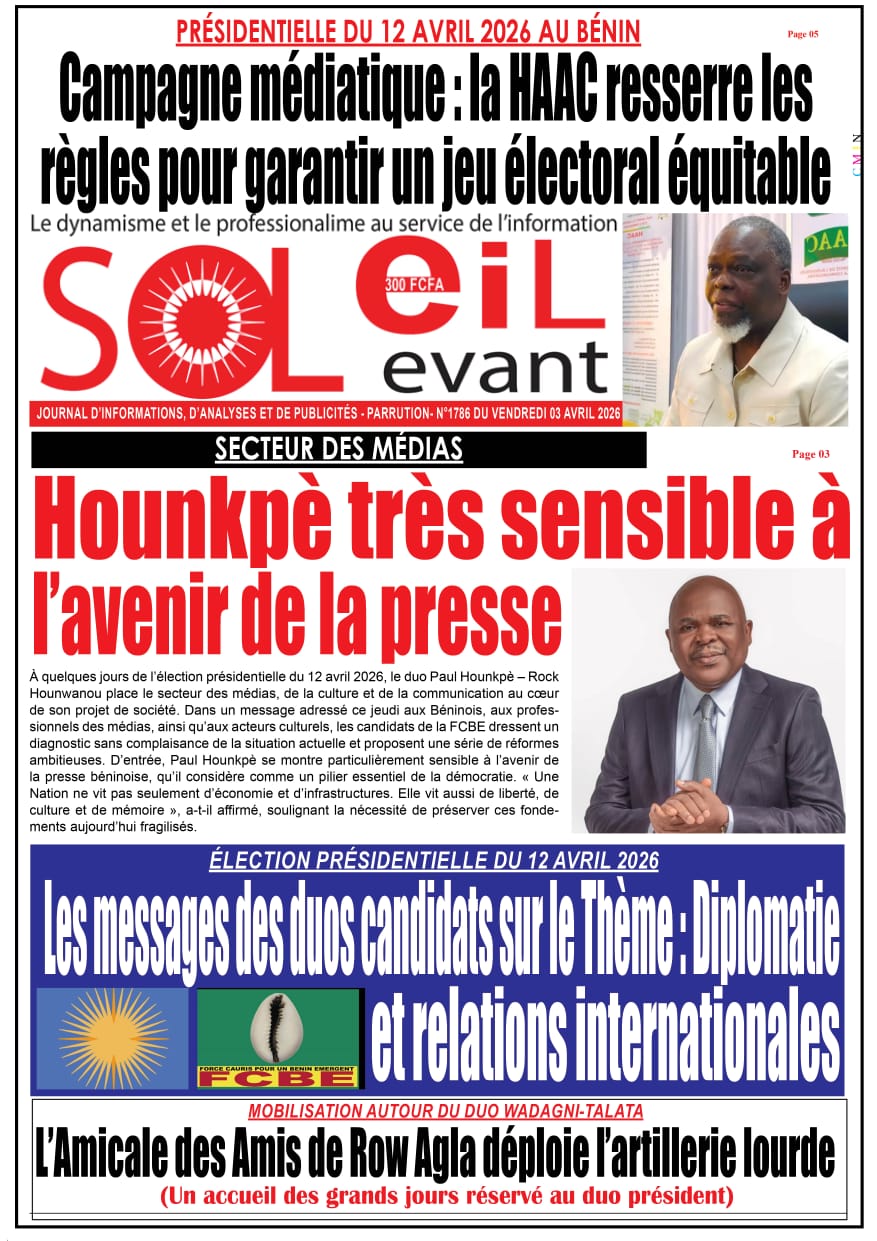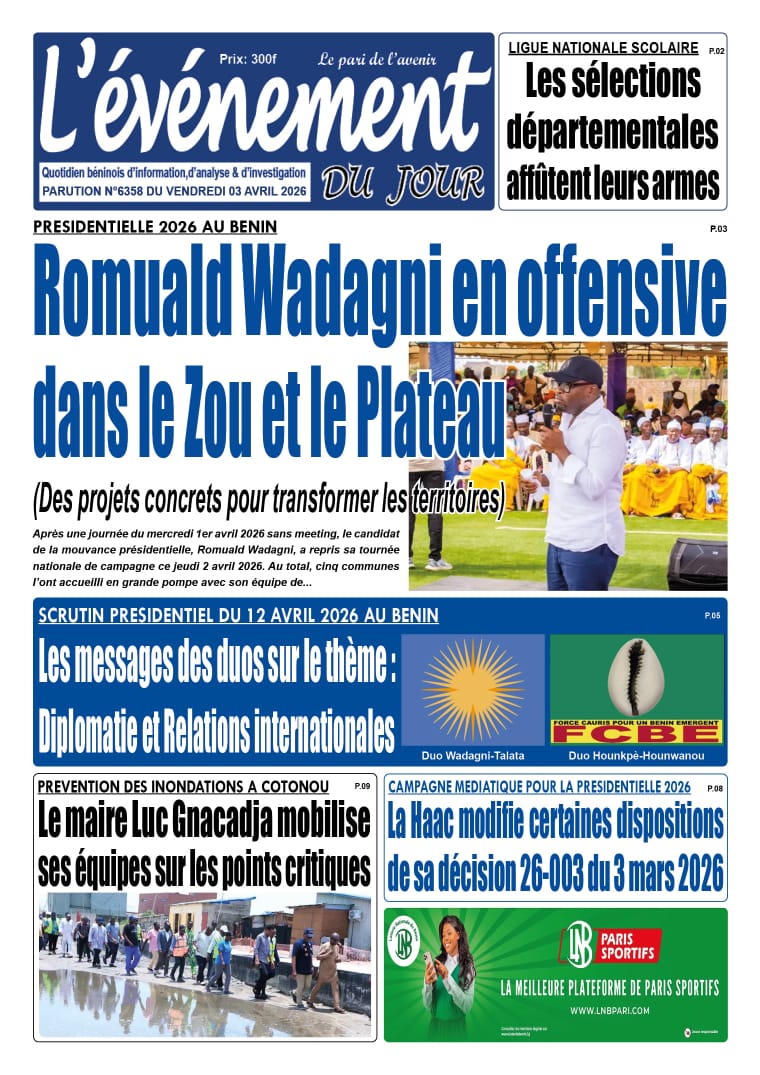 Bénin : les journaux du vendredi 03 avril 2026 Lire les UNES béninoises