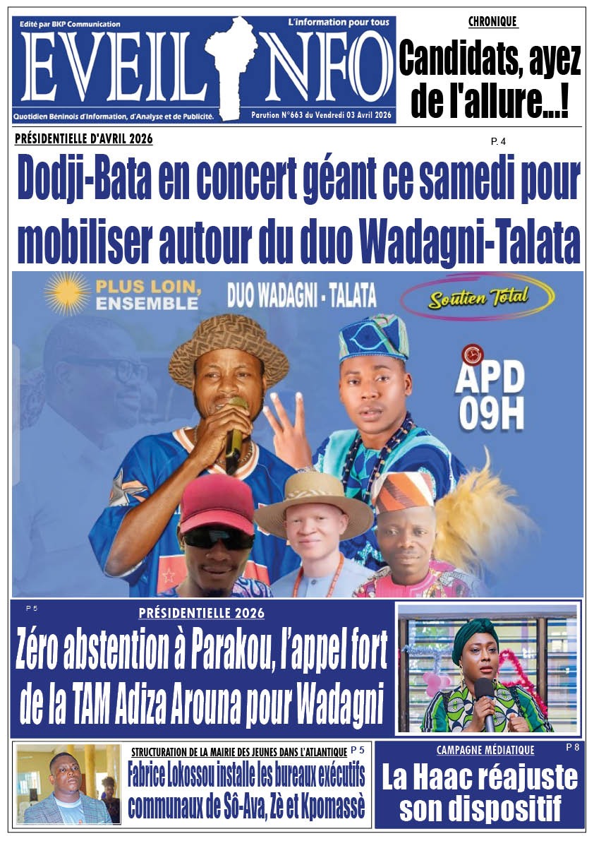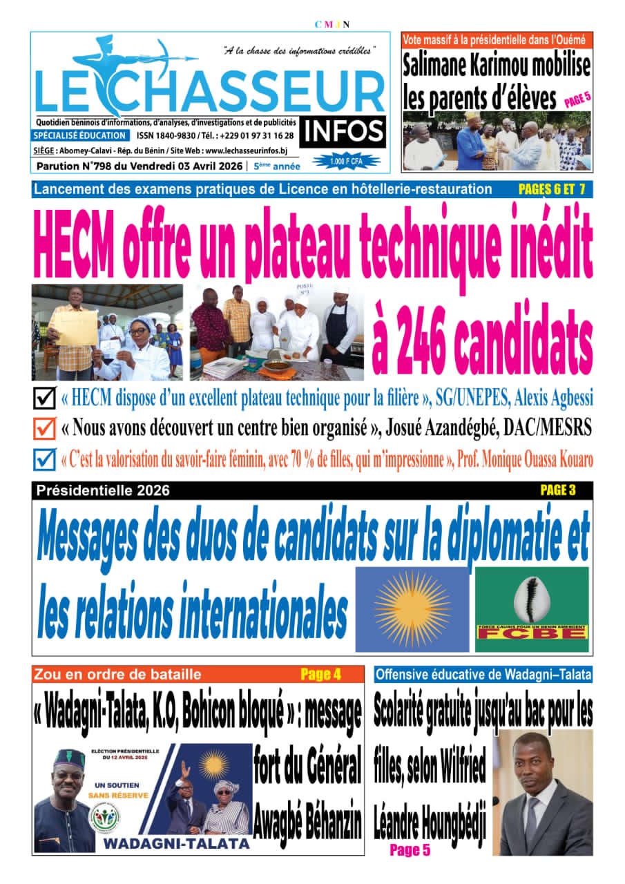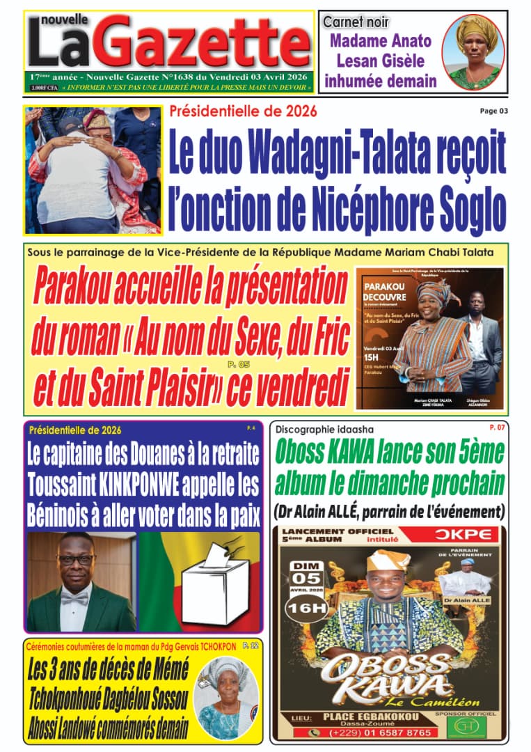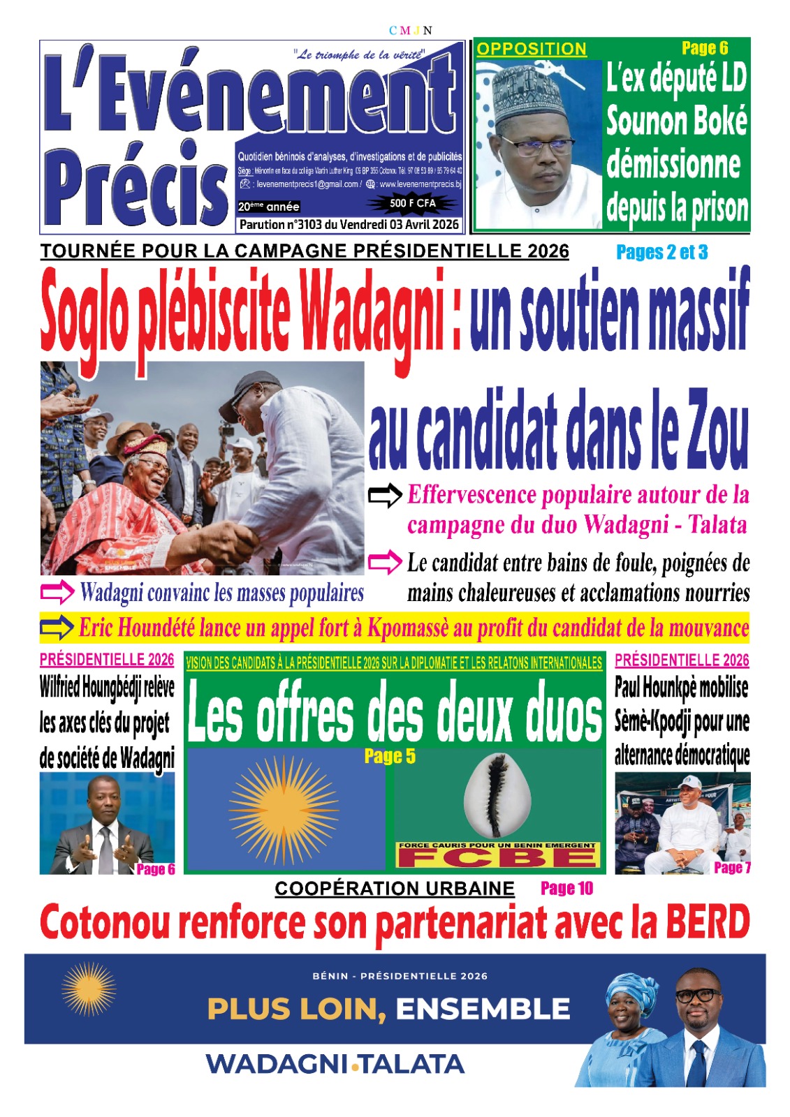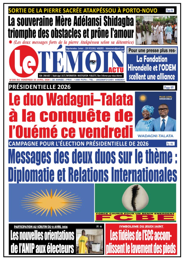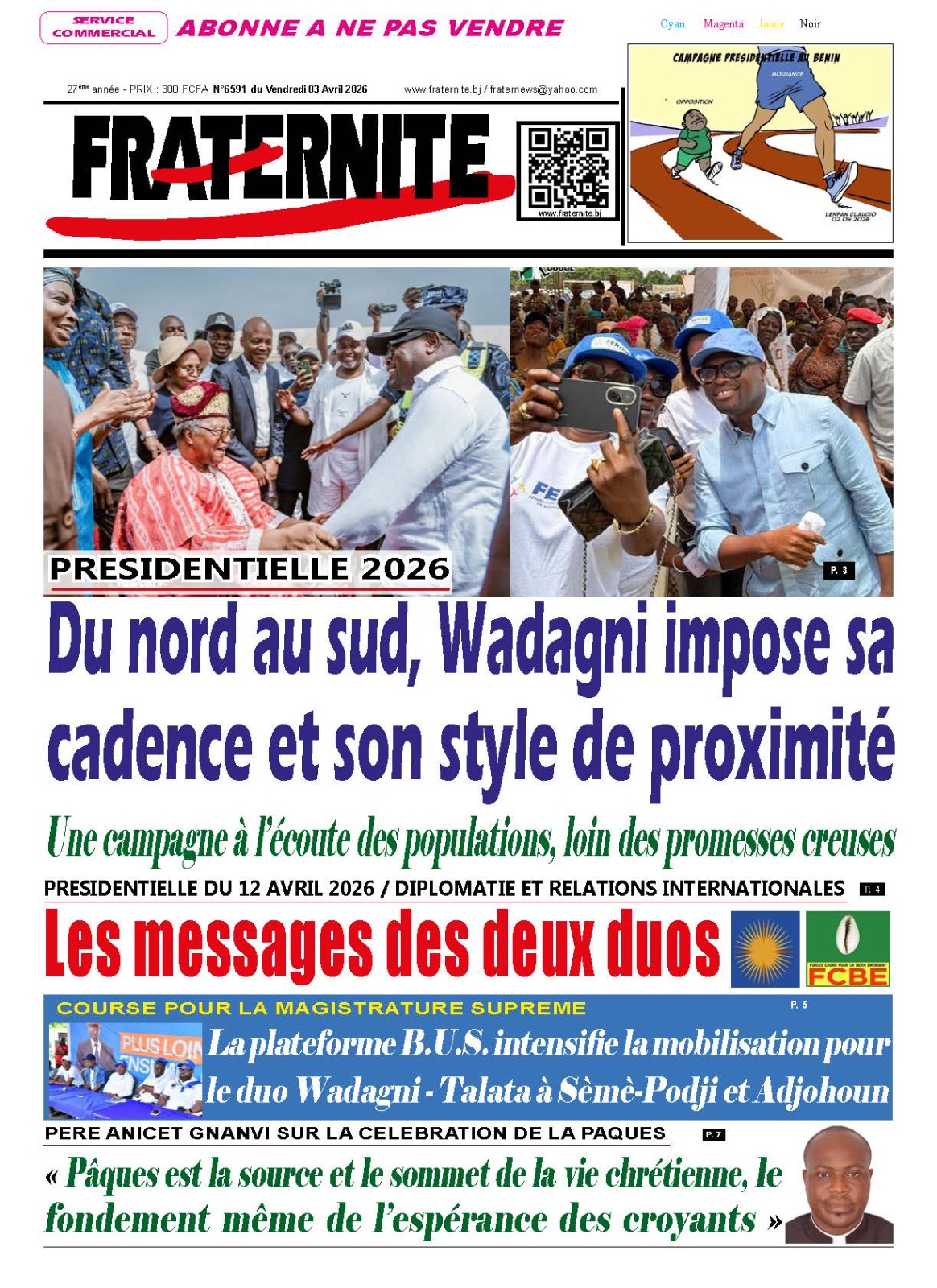 Bénin : les journaux du vendredi 03 avril 2026 Lire les UNES béninoises