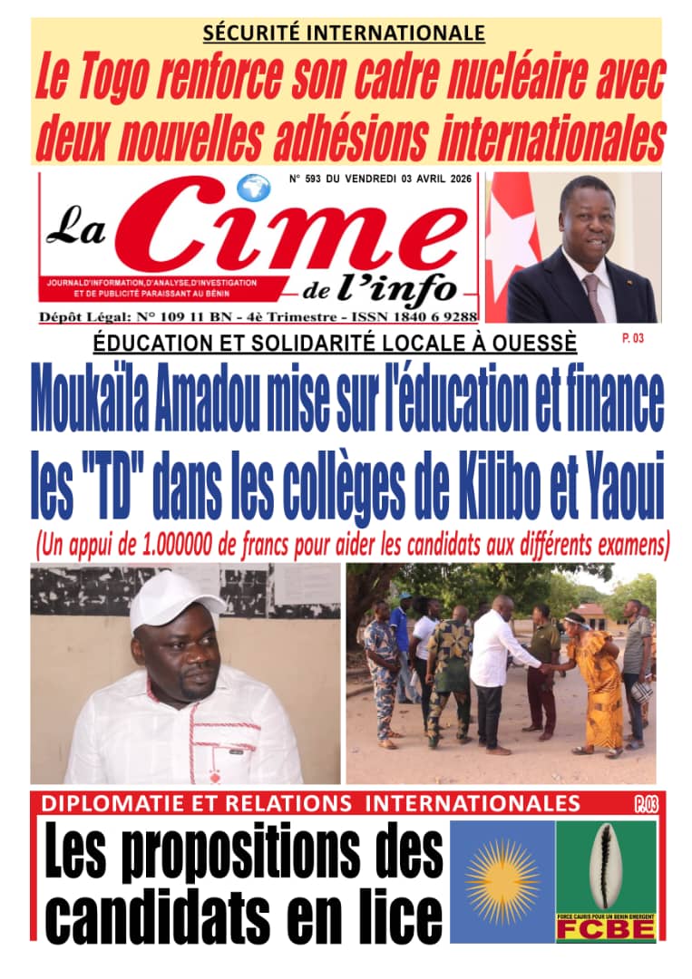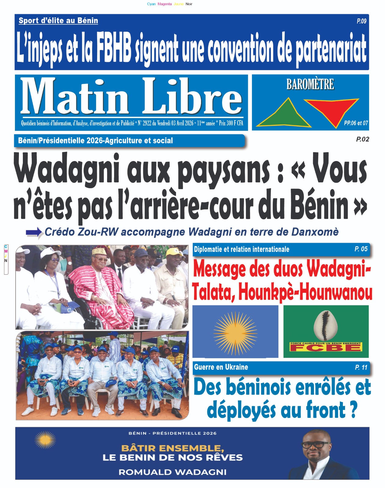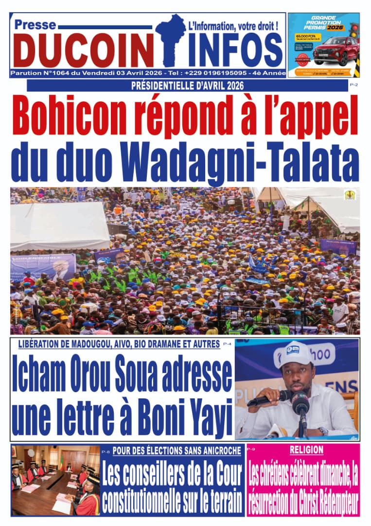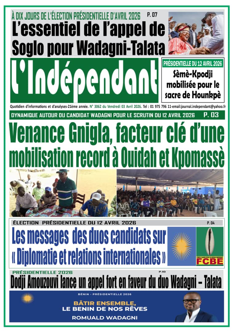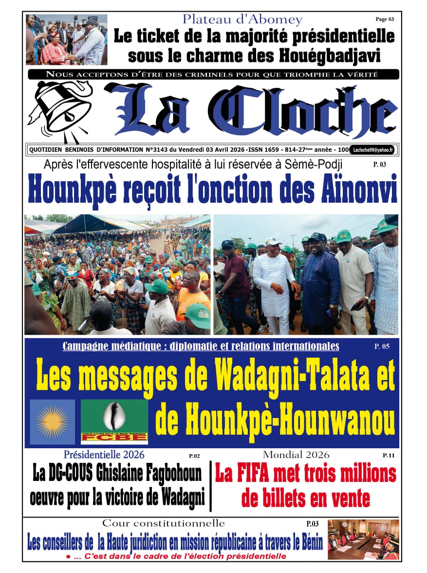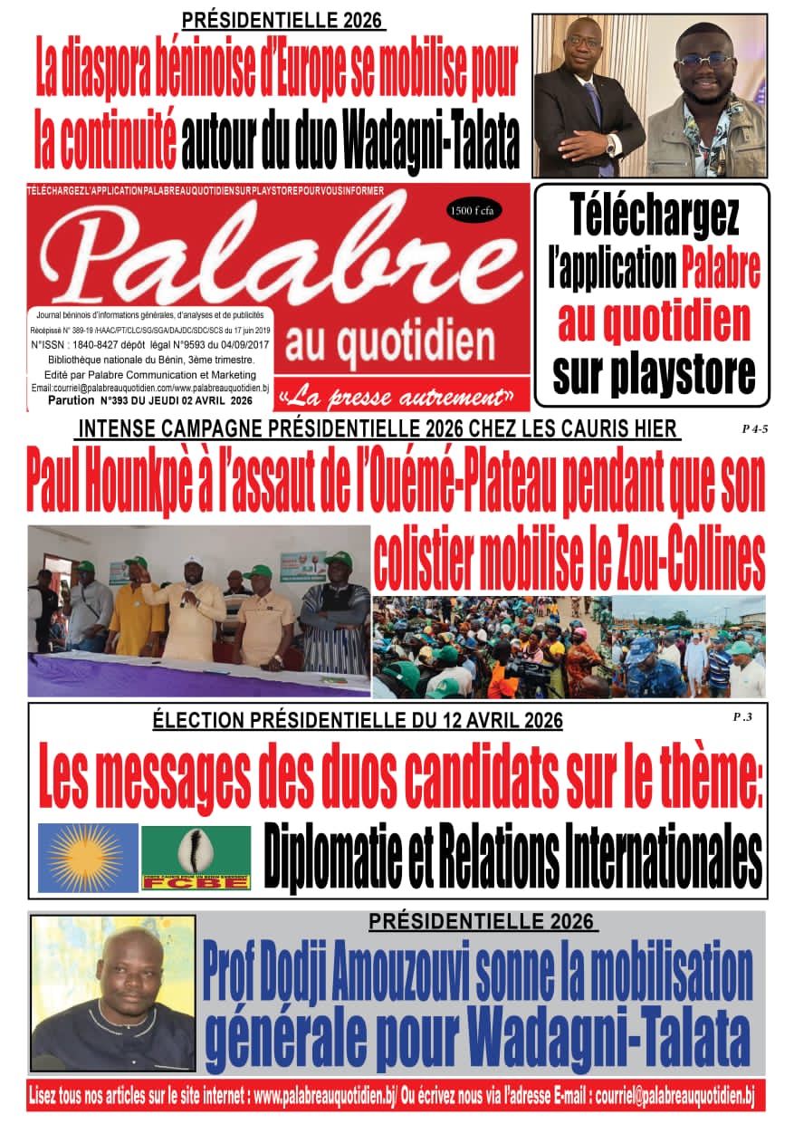 Bénin : les journaux du vendredi 03 avril 2026 Lire les UNES béninoises