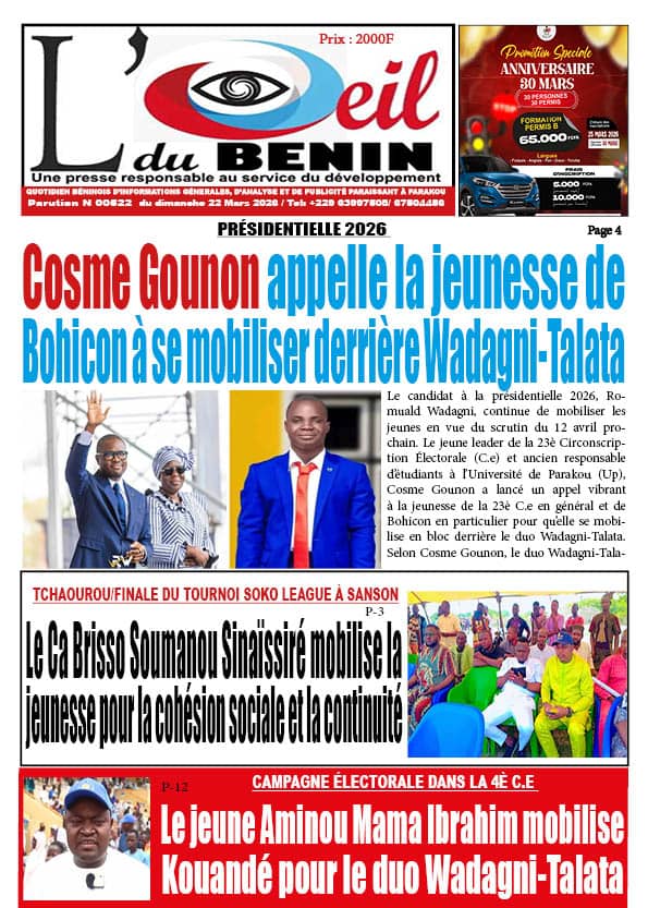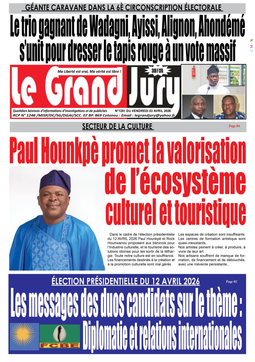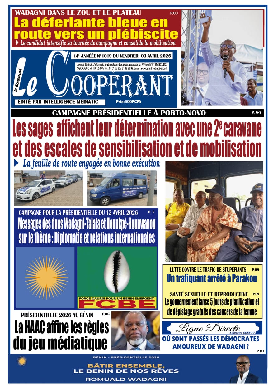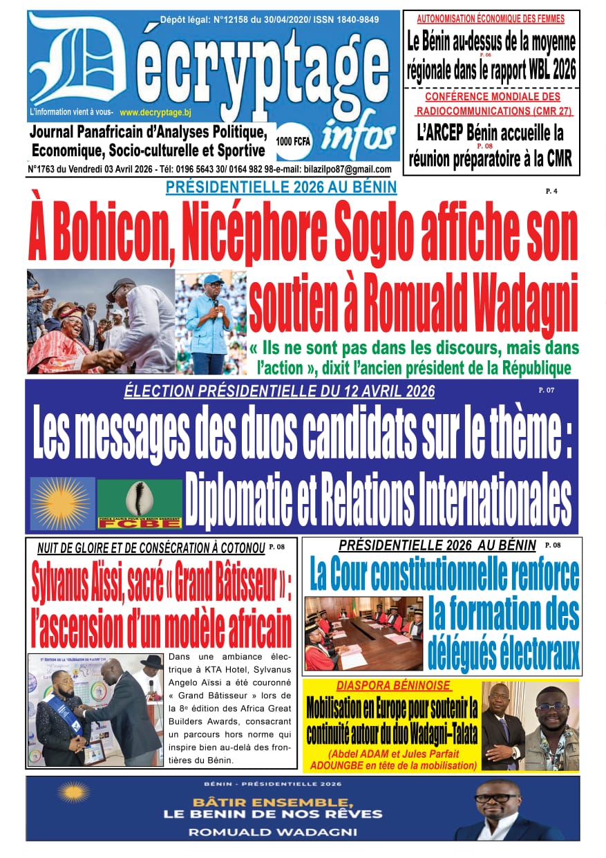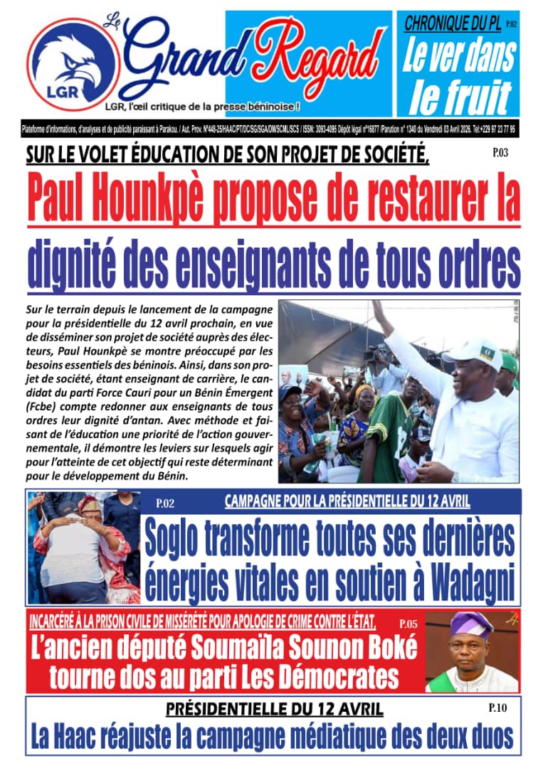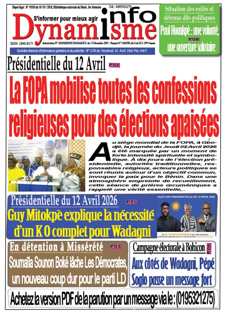 Bénin : les journaux du vendredi 03 avril 2026 Lire les UNES béninoises