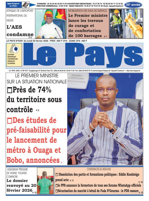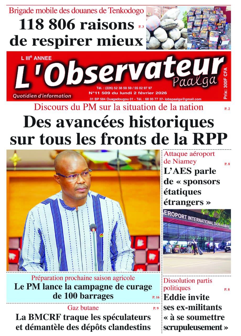 Photos. Les journaux du Burkina Faso du lundi 02 février 2026