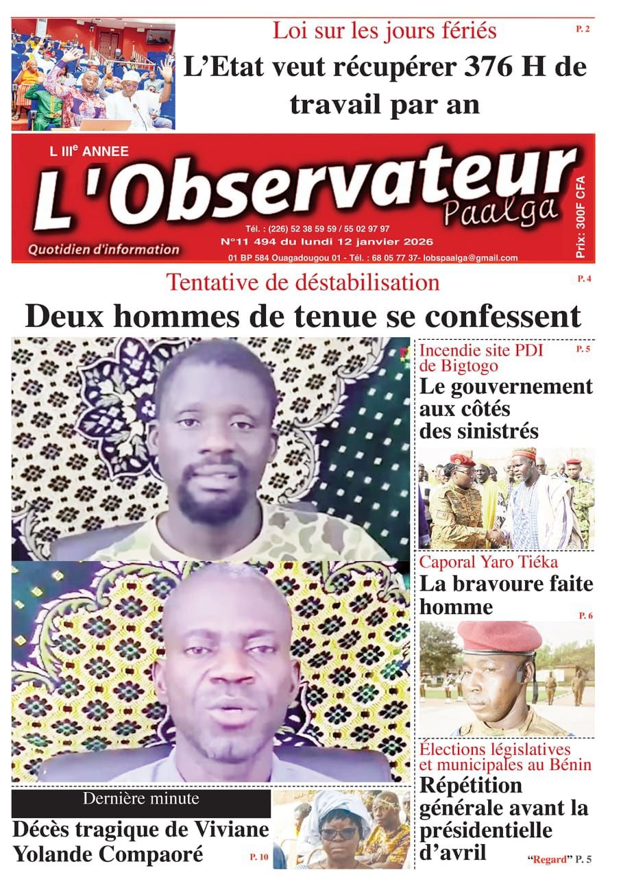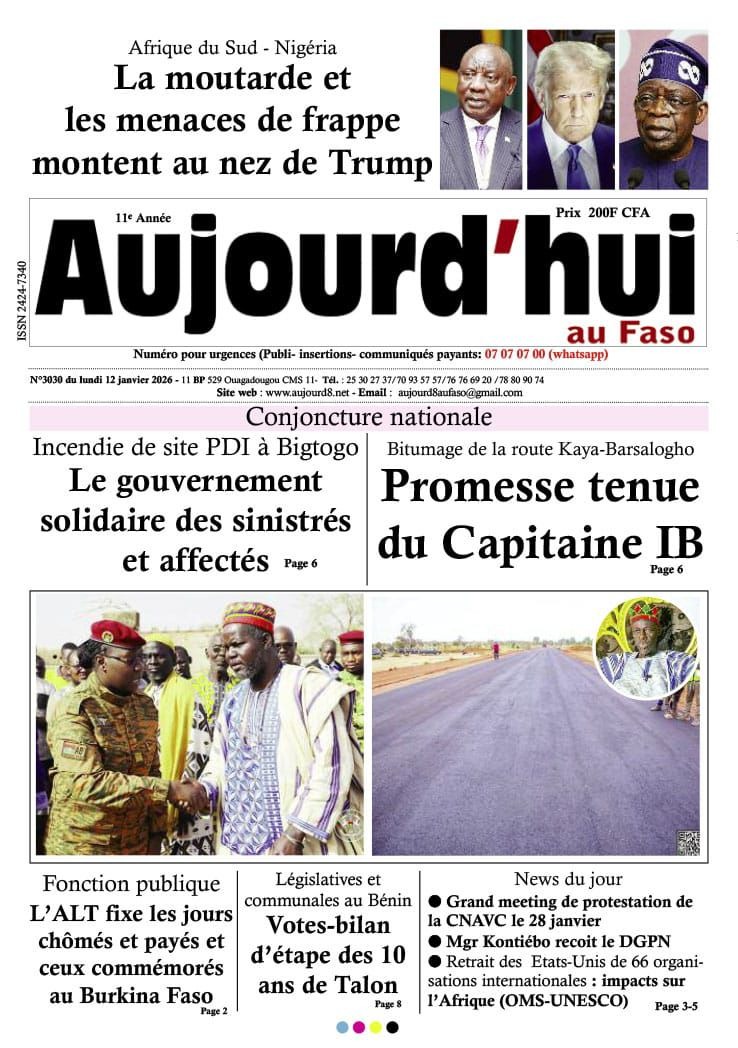 Burkina Faso : les journaux du lundi 12 janvier 2026