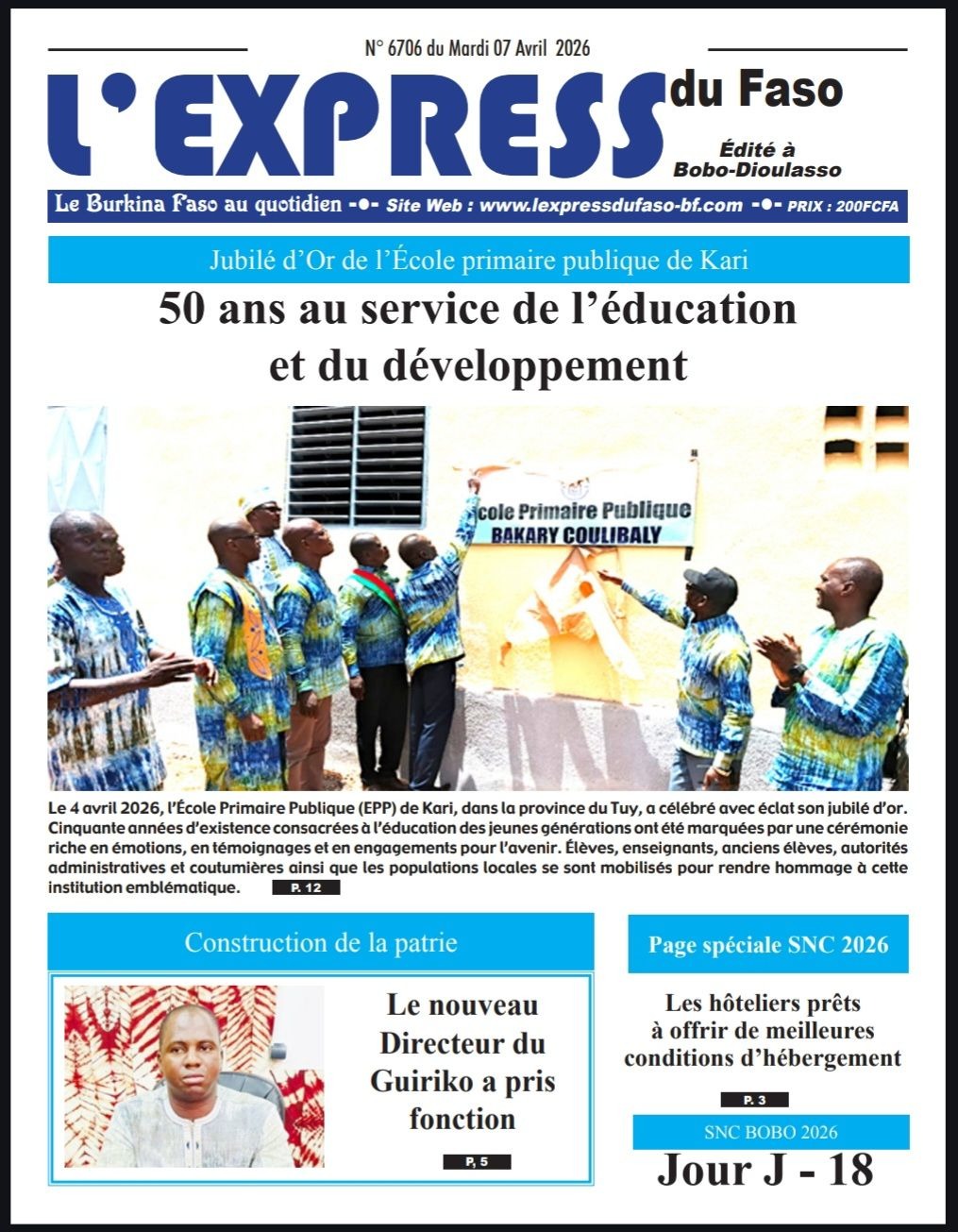 Photos. Les journaux du Burkina Faso du mardi 07 avril 2026