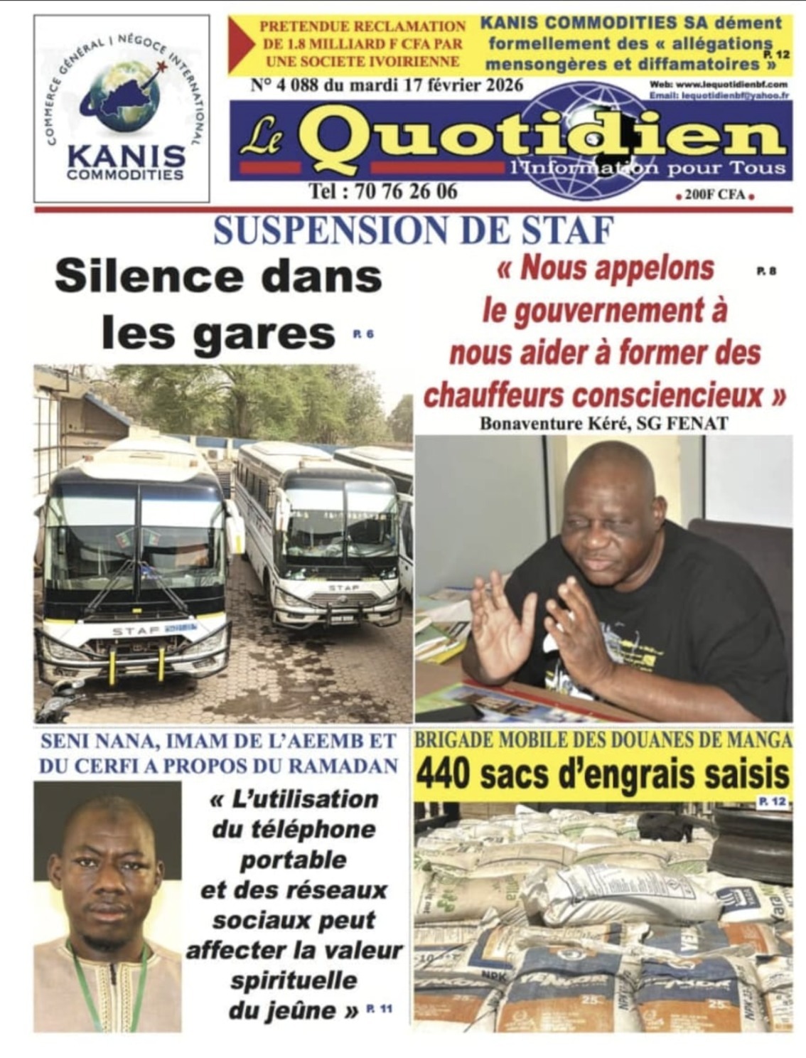 Photos. Les journaux du Burkina Faso du mardi 17 février 2026