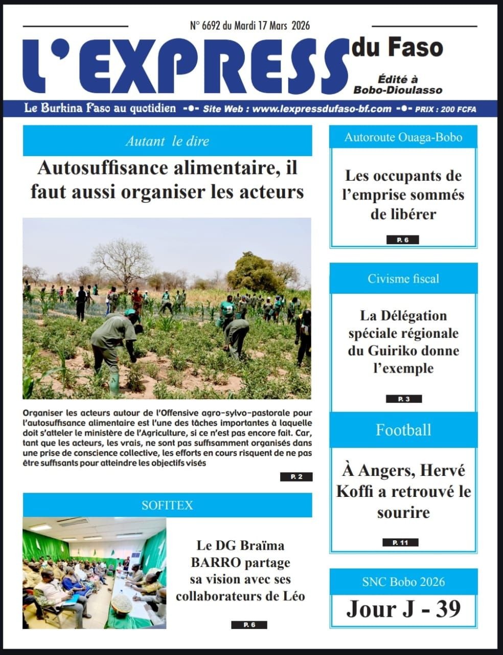 Photos. Les journaux du Burkina Faso du mardi 17 mars 2026
