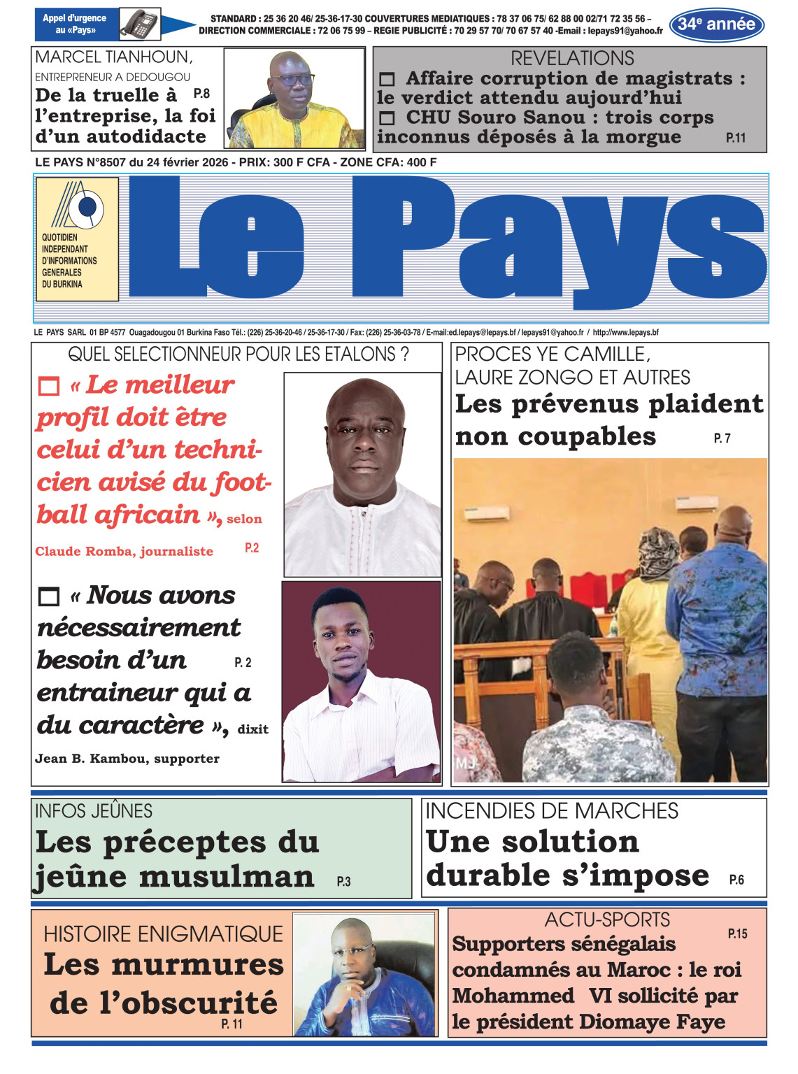 Photos. Les journaux du Burkina Faso du mardi 24 février 2026
