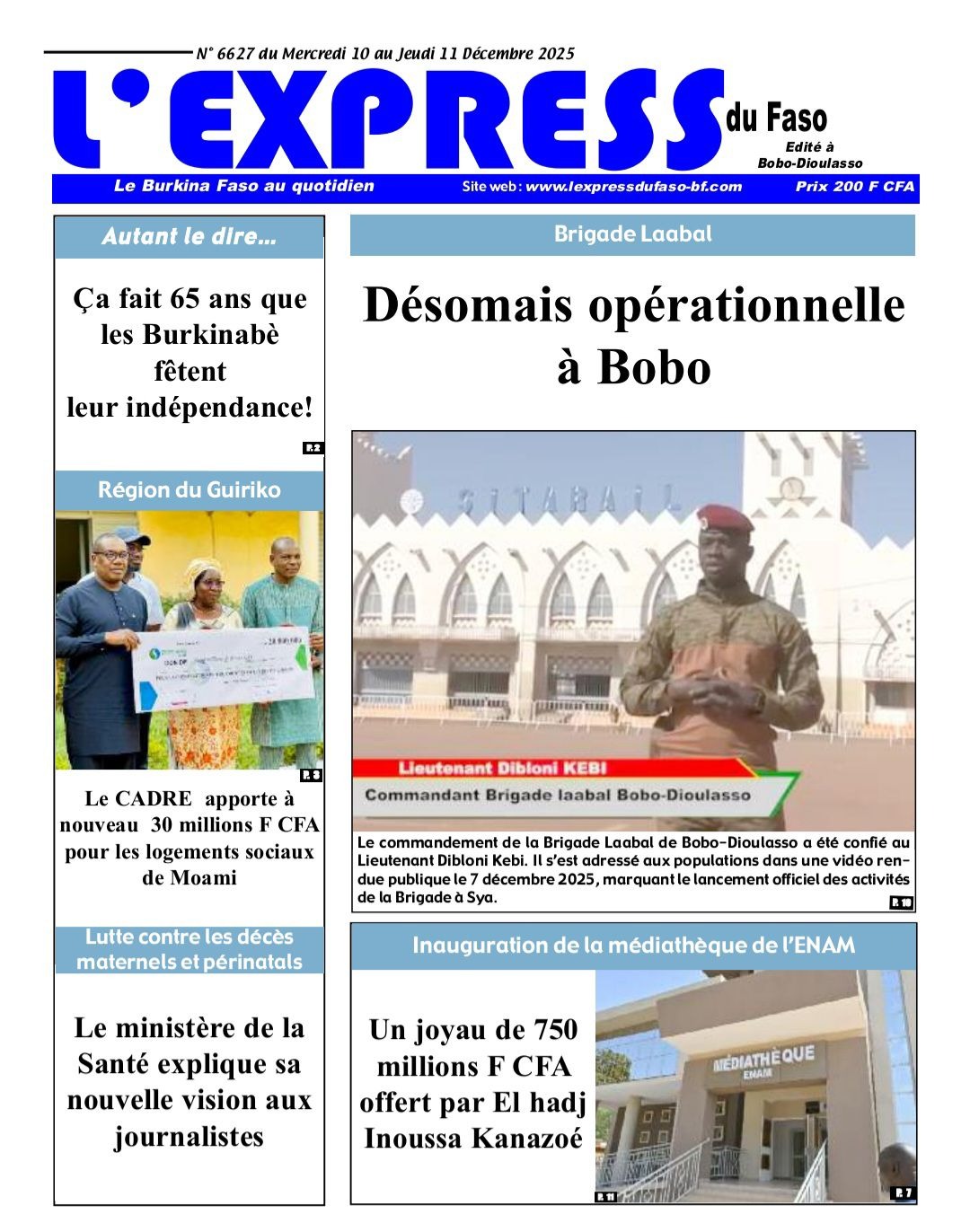 Photos. Les journaux du Burkina Faso du mercredi 10 décembre 2025