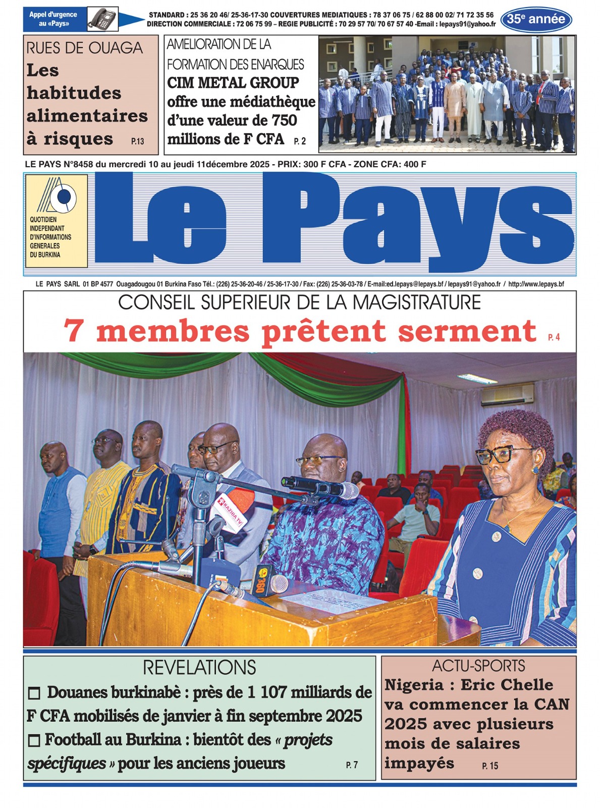 Burkina Faso : les journaux du mercredi 10 décembre 2025
