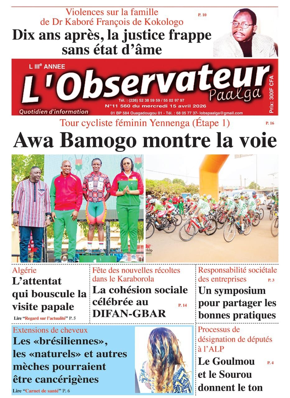 Photos. Les journaux du Burkina Faso du mercredi 15 avril 2026