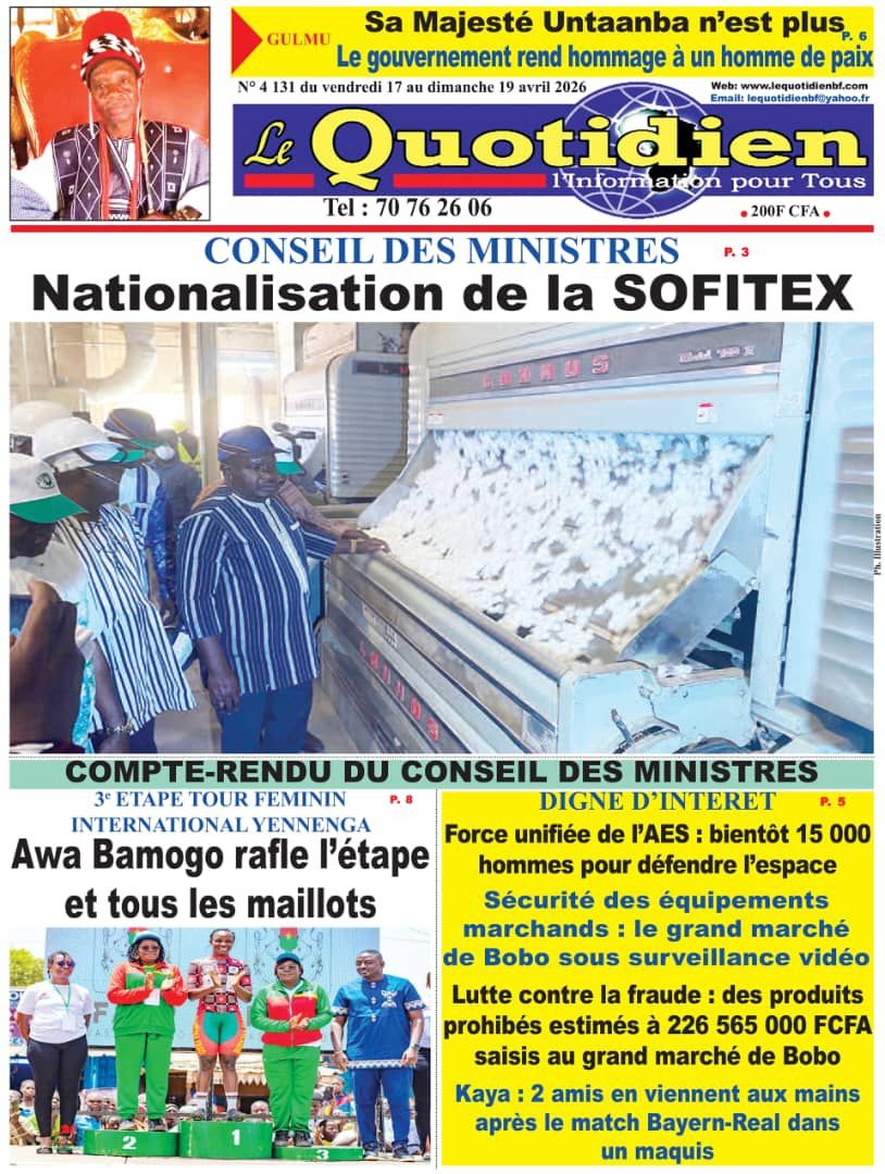 Burkina Faso : les journaux du vendredi 17 avril 2026