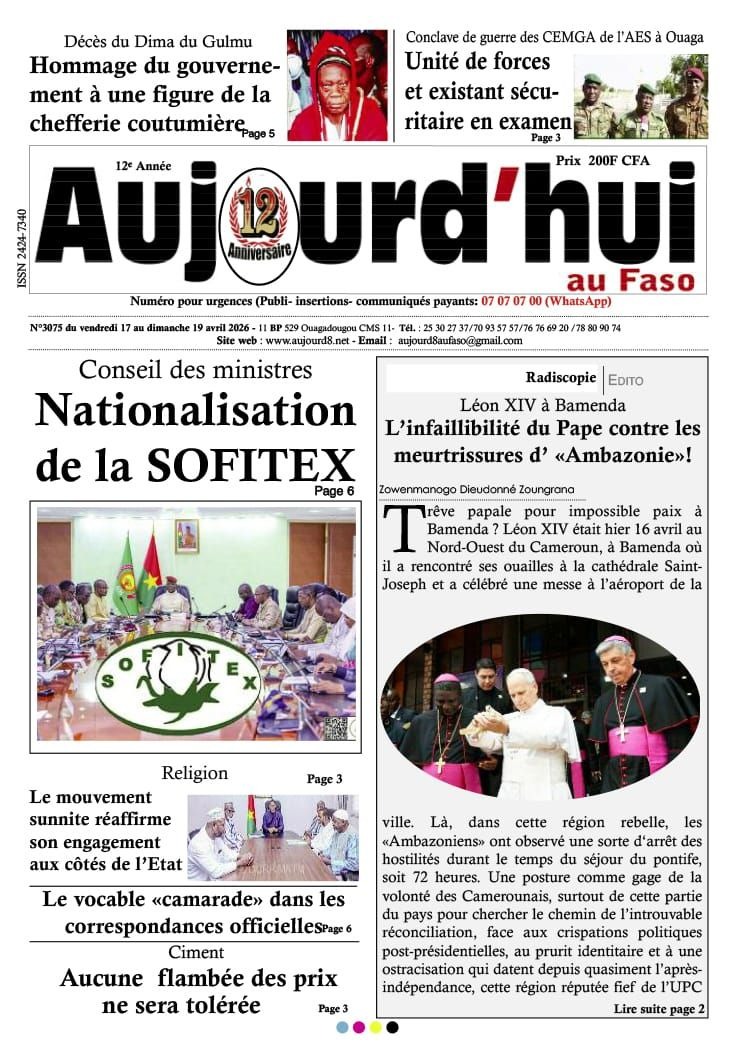 Photos. Les journaux du Burkina Faso du vendredi 17 avril 2026