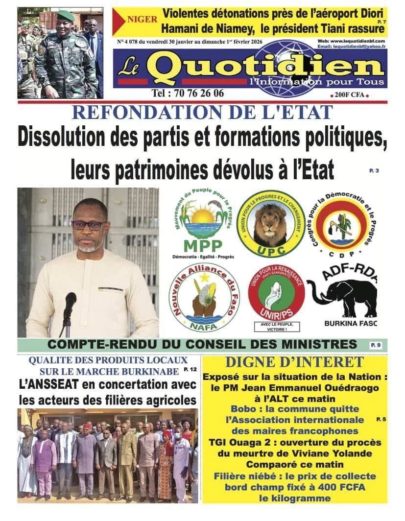 Burkina Faso : les journaux du vendredi 30 janvier 2026