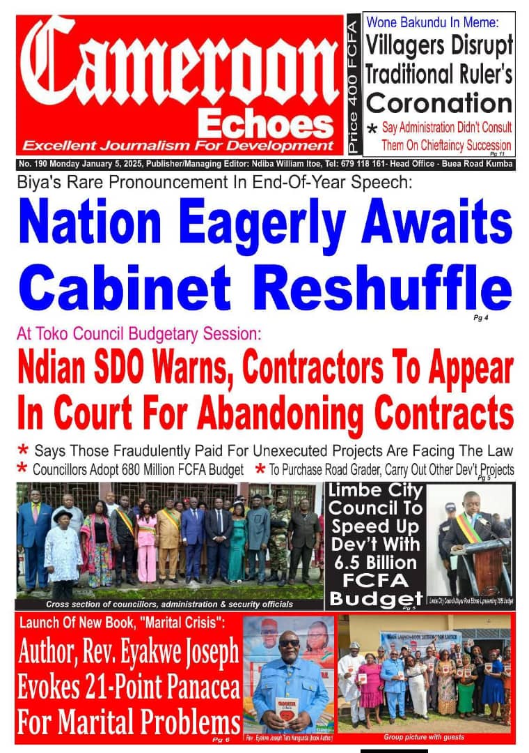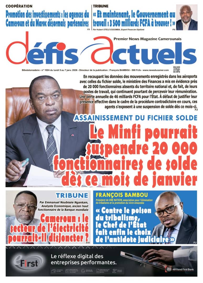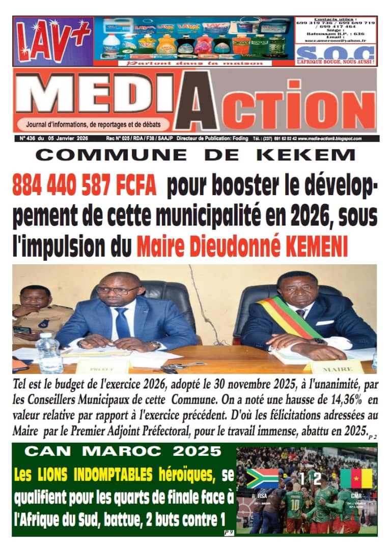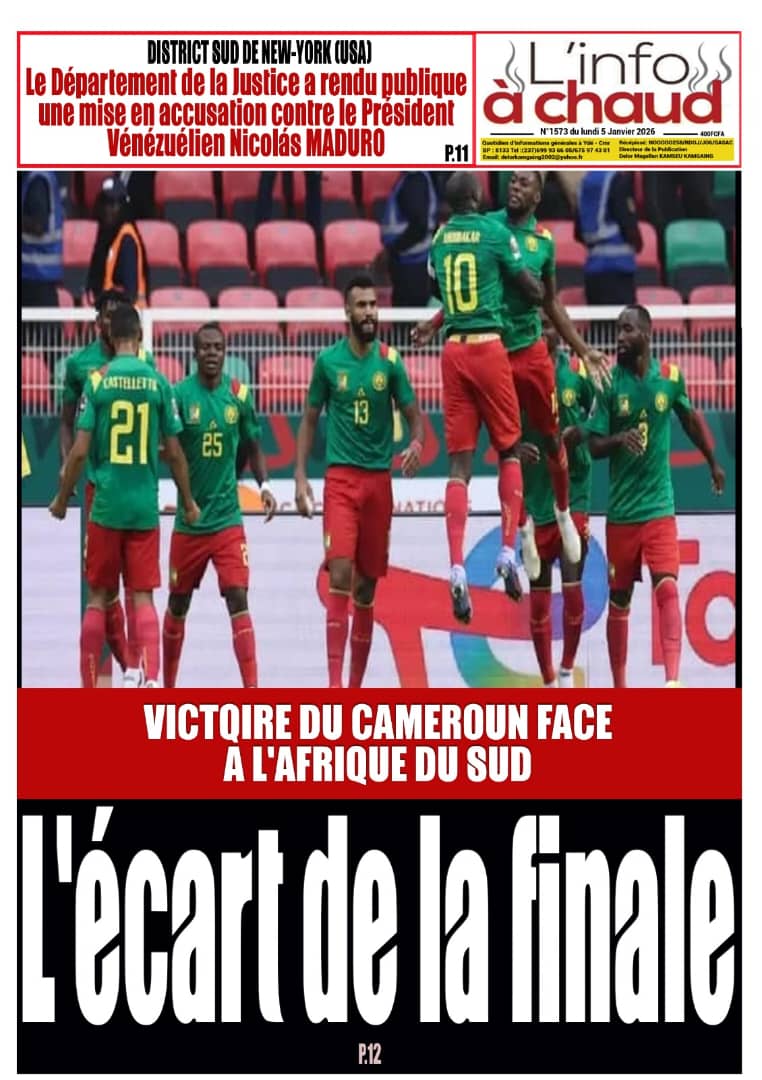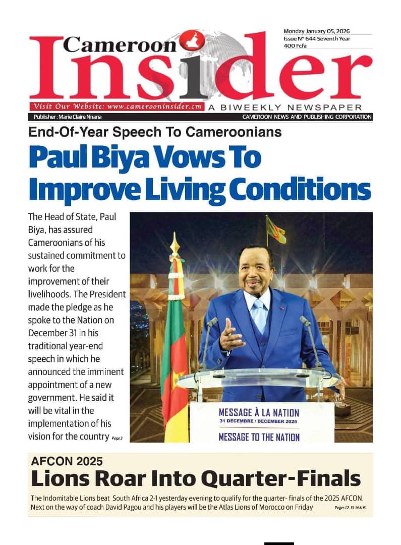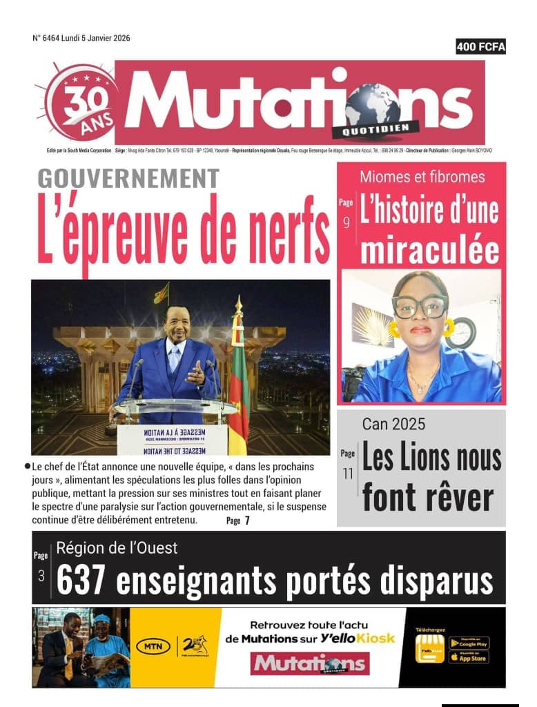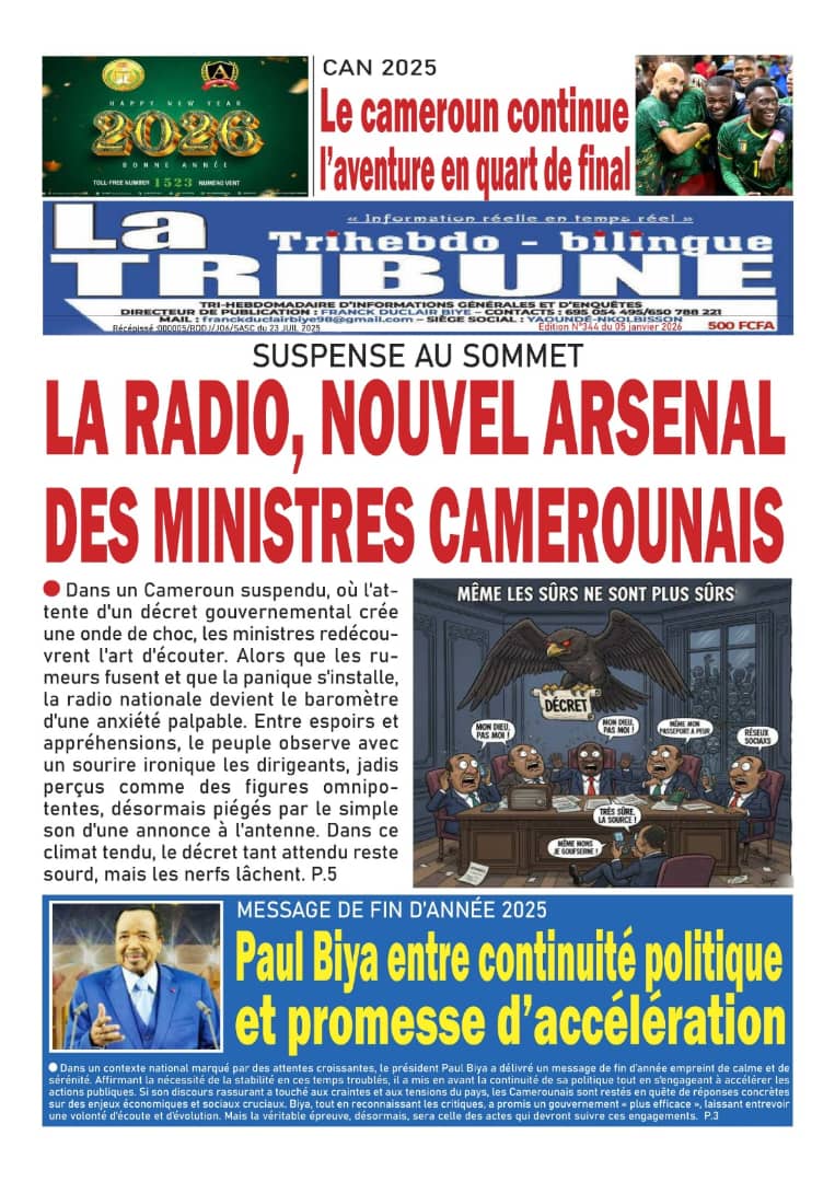 Cameroun : les journaux du lundi 05 janvier 2026 sont marqués par les attentes liées au nouveau gouvernement du Président Paul Biya après sa réélection et la qualification des Lions Indomptables en 1/4 de finales de la CAN 2025 au Maroc, après leur victoire contre l’Afrique du Sud.
