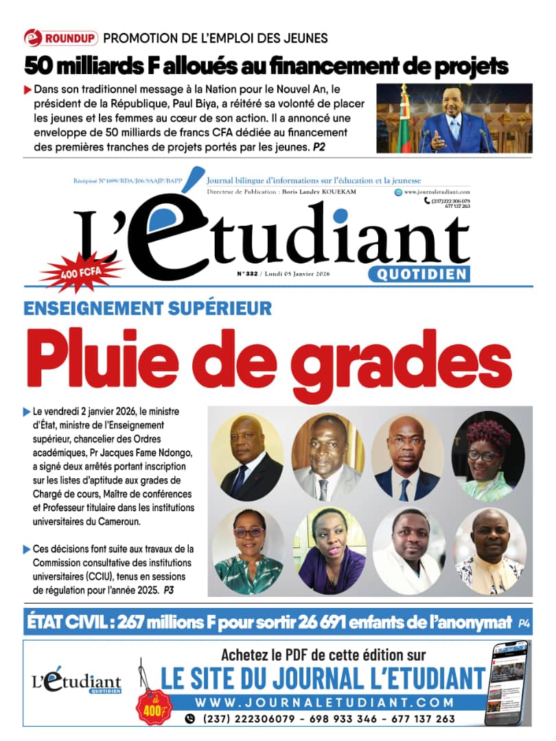 Photos. Les journaux du Cameroun du lundi 05 janvier 2026
