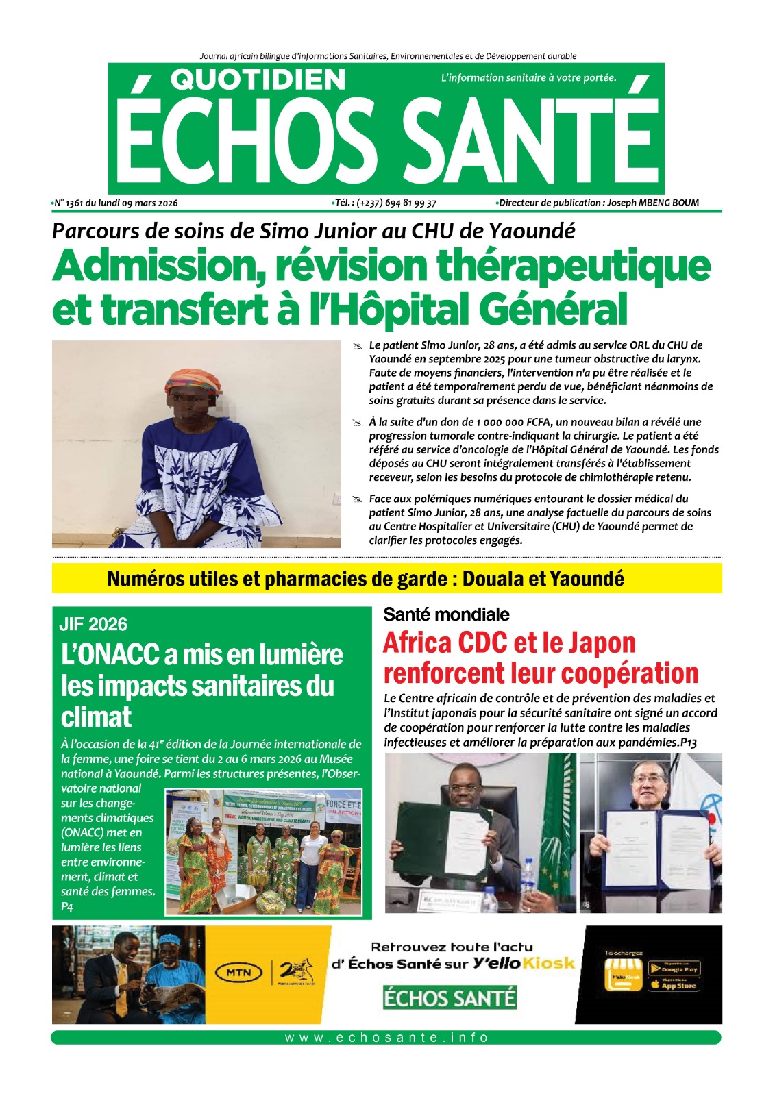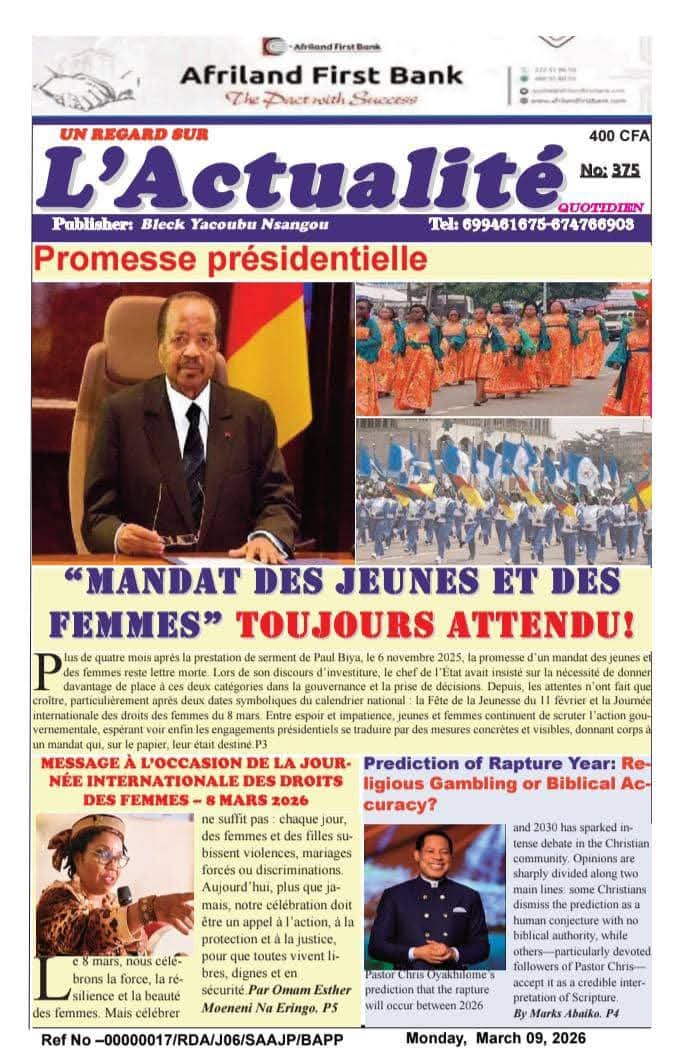 Cameroun : les journaux du lundi 09 mars 2026 Lire les UNES du Cameroun