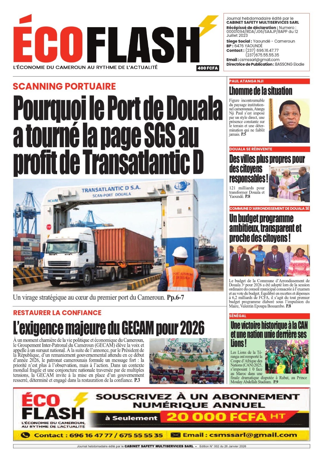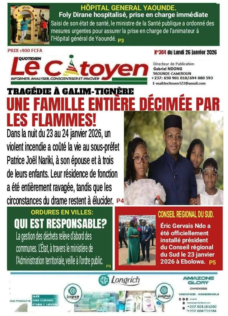 Photos. Les journaux du Cameroun du lundi 26 janvier 2026