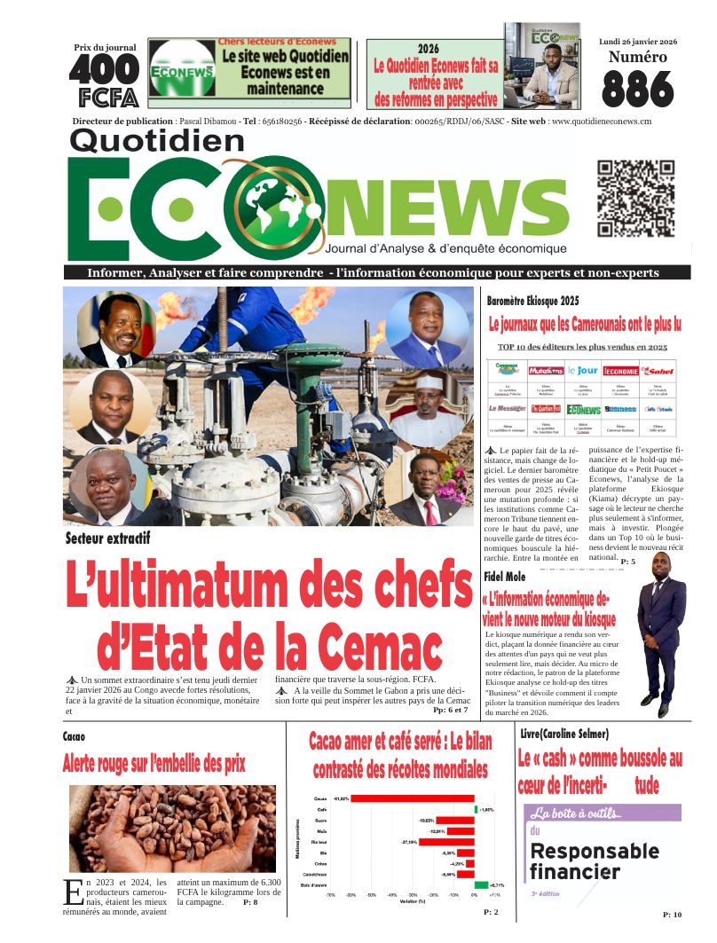 Cameroun : les journaux du lundi 26 janvier 2026 reviennent notamment sur le sommet de la CEMAC, la Communauté économique des Etats d’Afrique Centrale, organisé à Brazzaville au Congo.