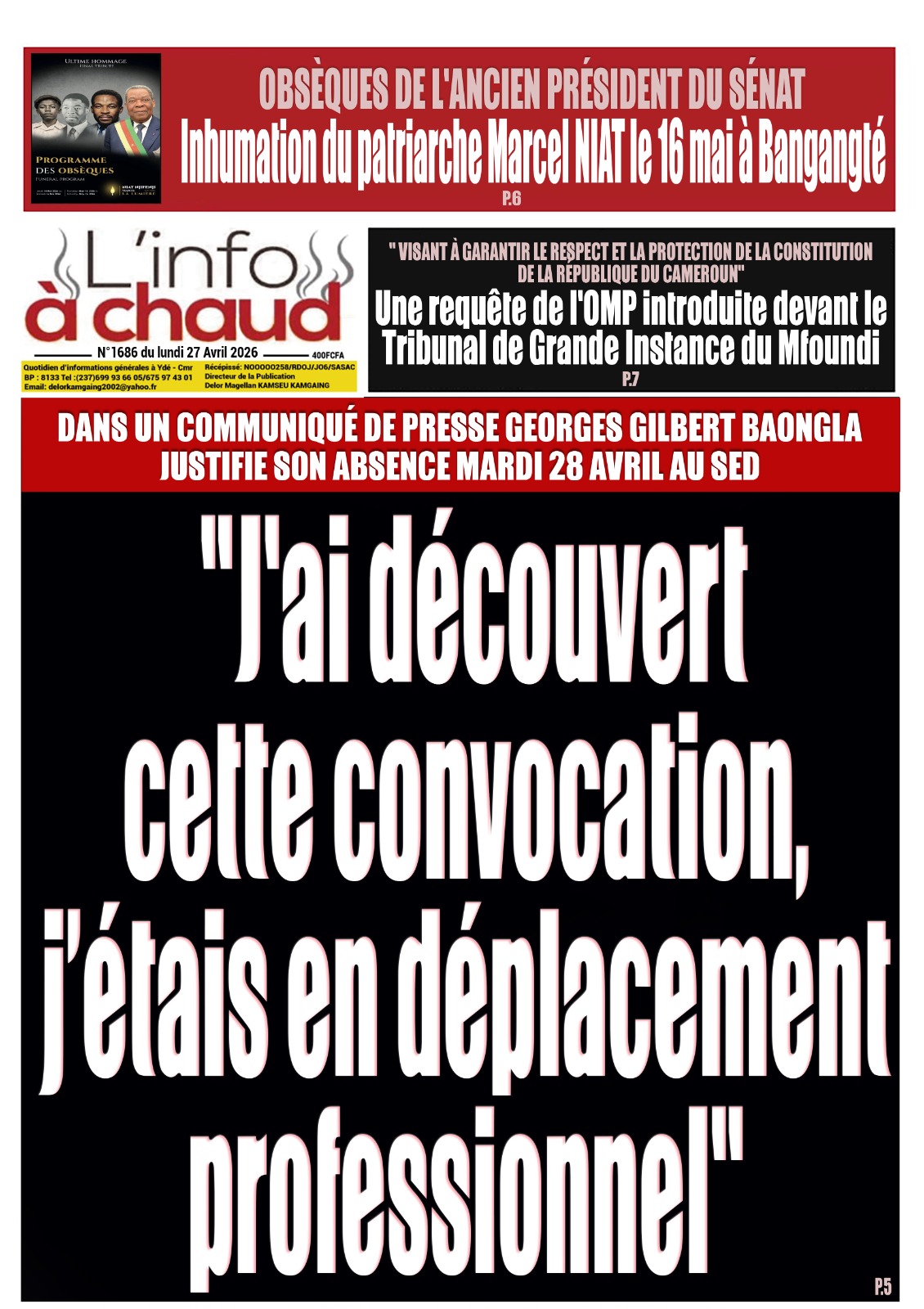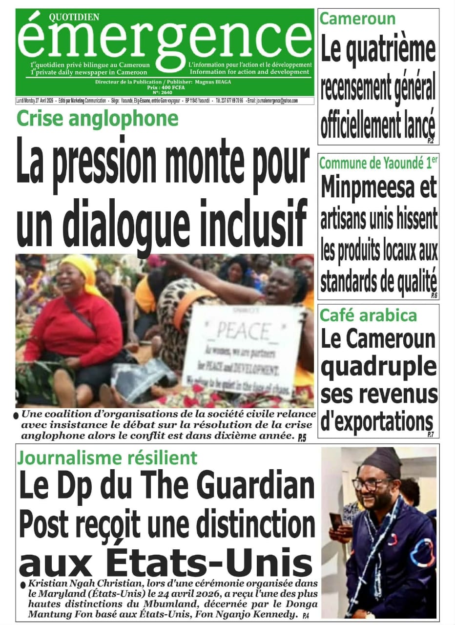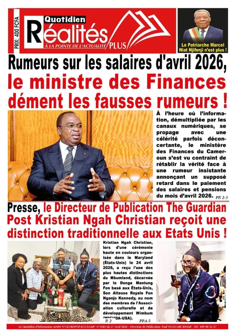 Cameroun : les journaux du lundi 27 avril 2026 Lire les UNES camerounaises